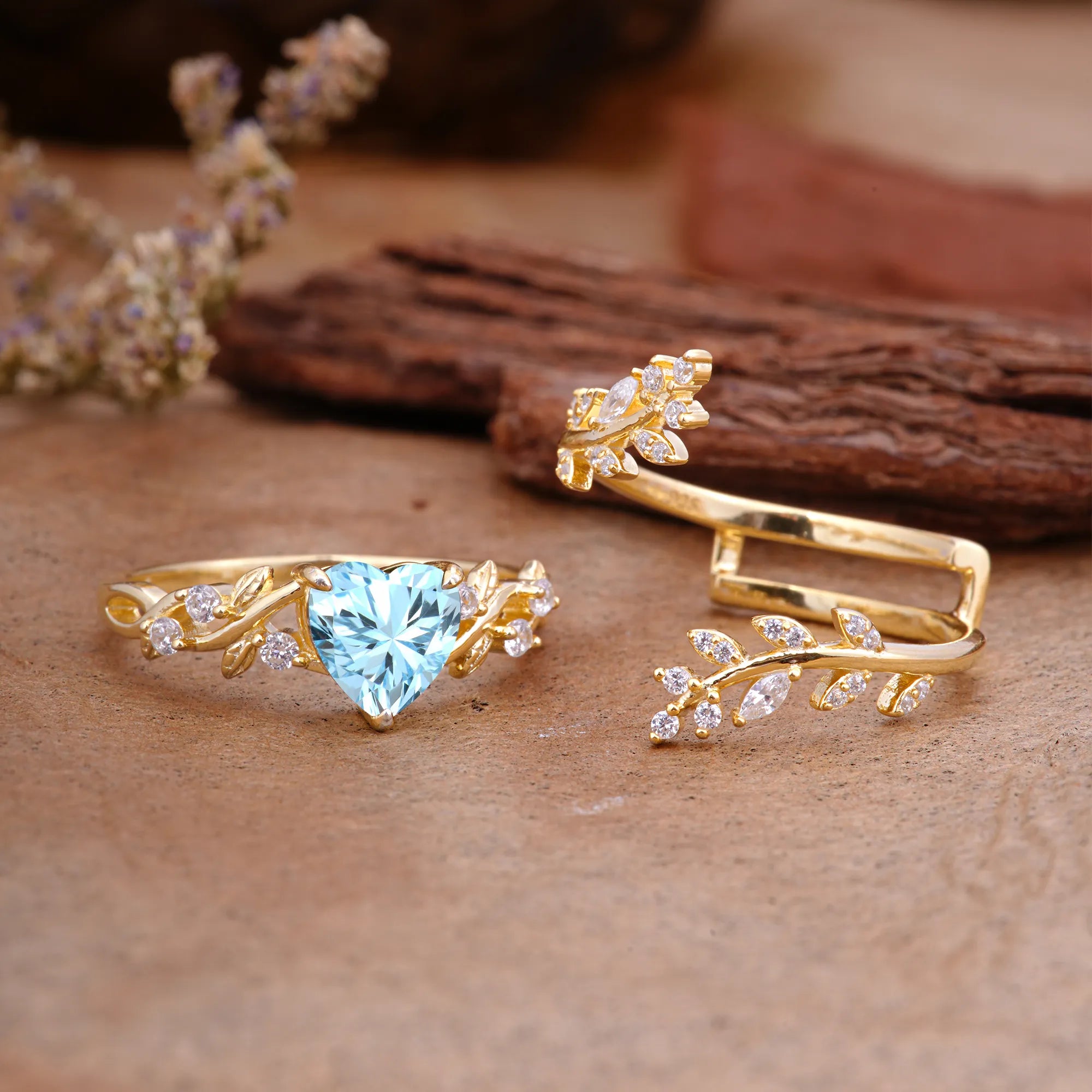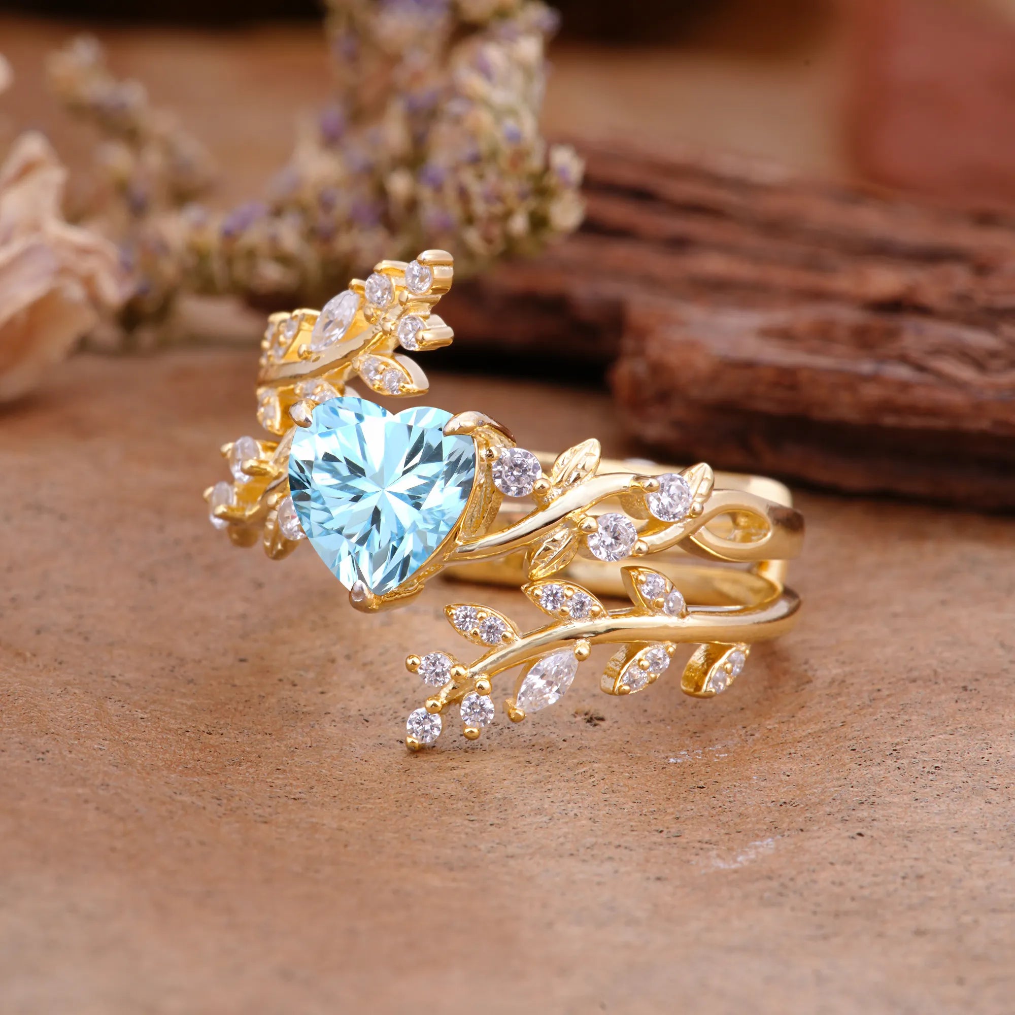 Elegant Heart-Shaped Nature Inspired Aquamarine Ring – Perfect for Engagement or Wedding