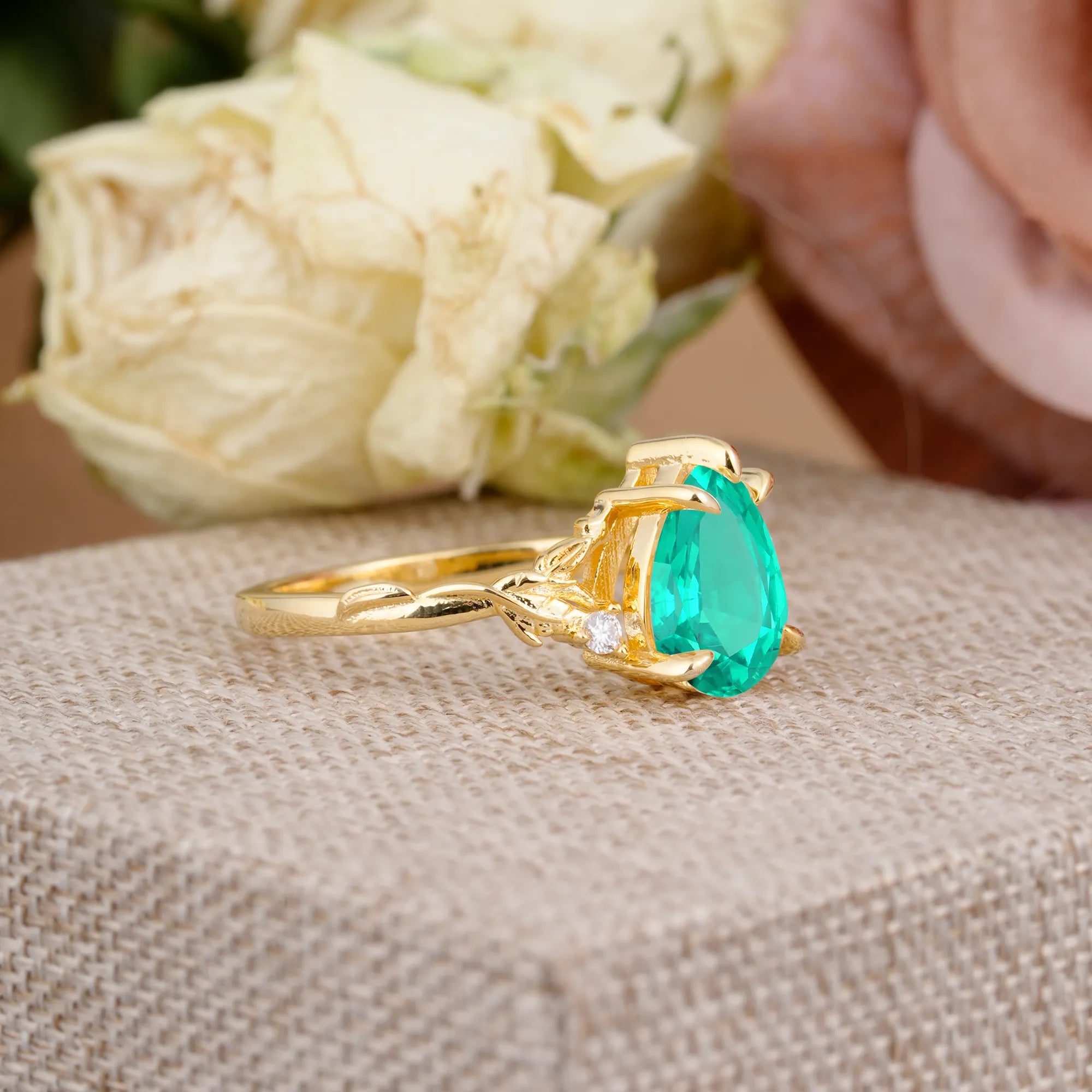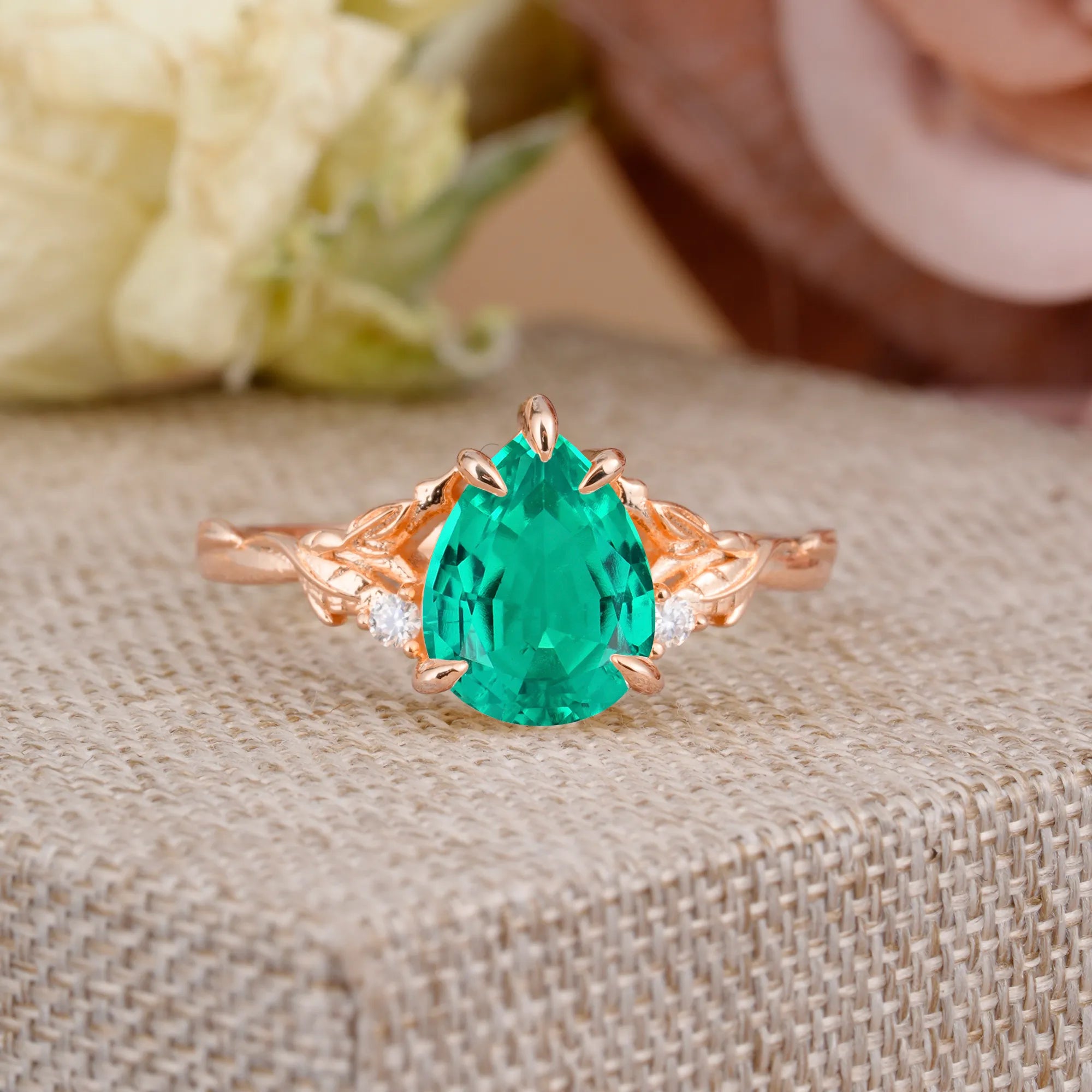 Elegant & Luxurious 5 prong Pear-Cut Emerald Wedding Band
