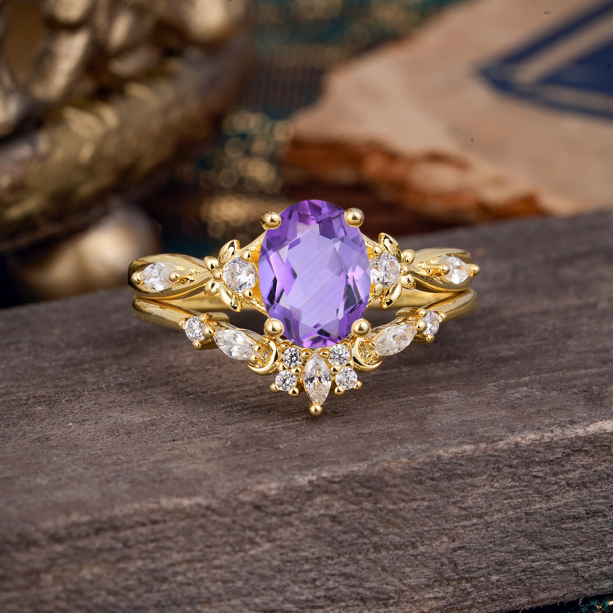 Elegant Oval Cut Amethyst Engagement Ring Set – 2PC