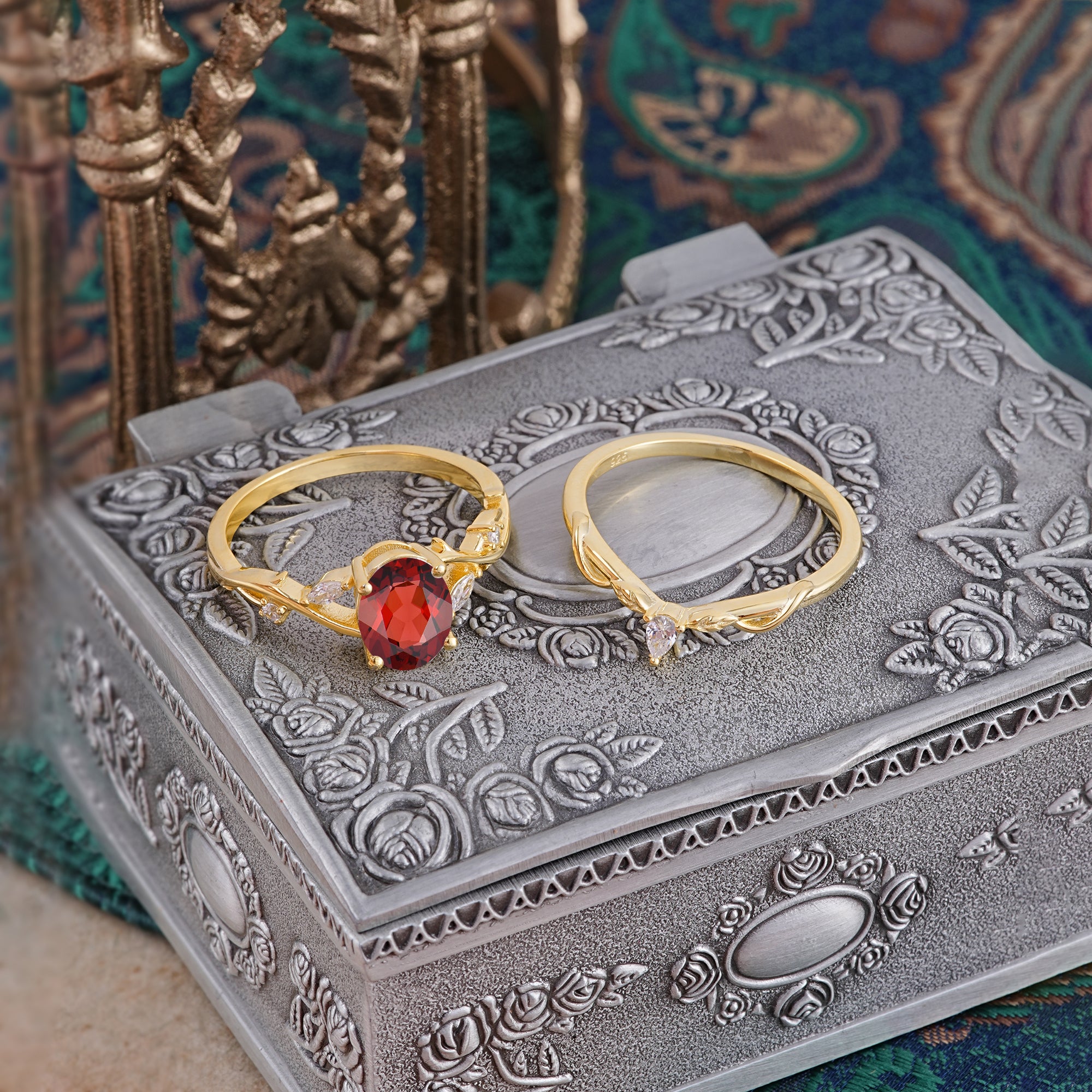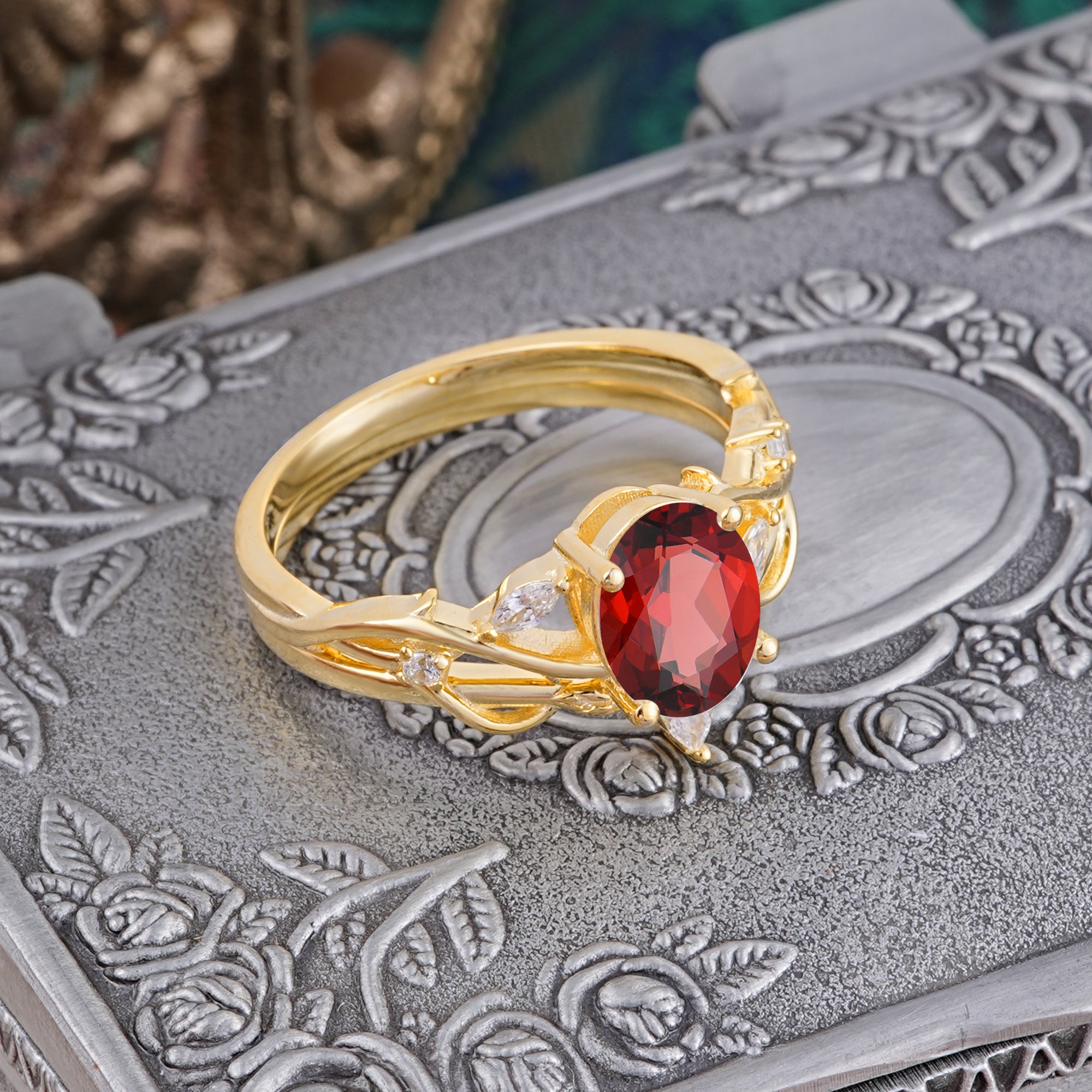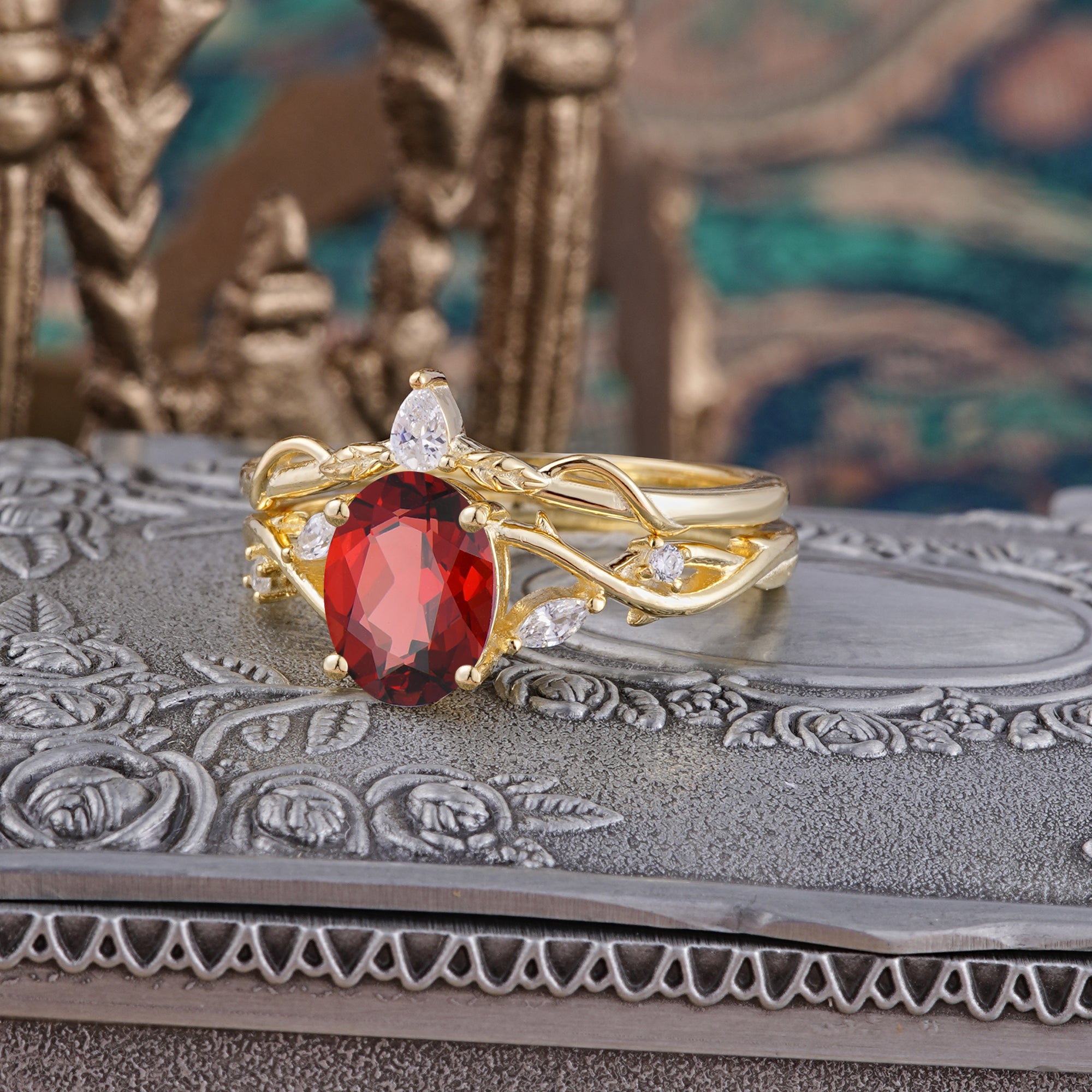 | Stone Material: Garnet | Stone Material: Moissanite | |