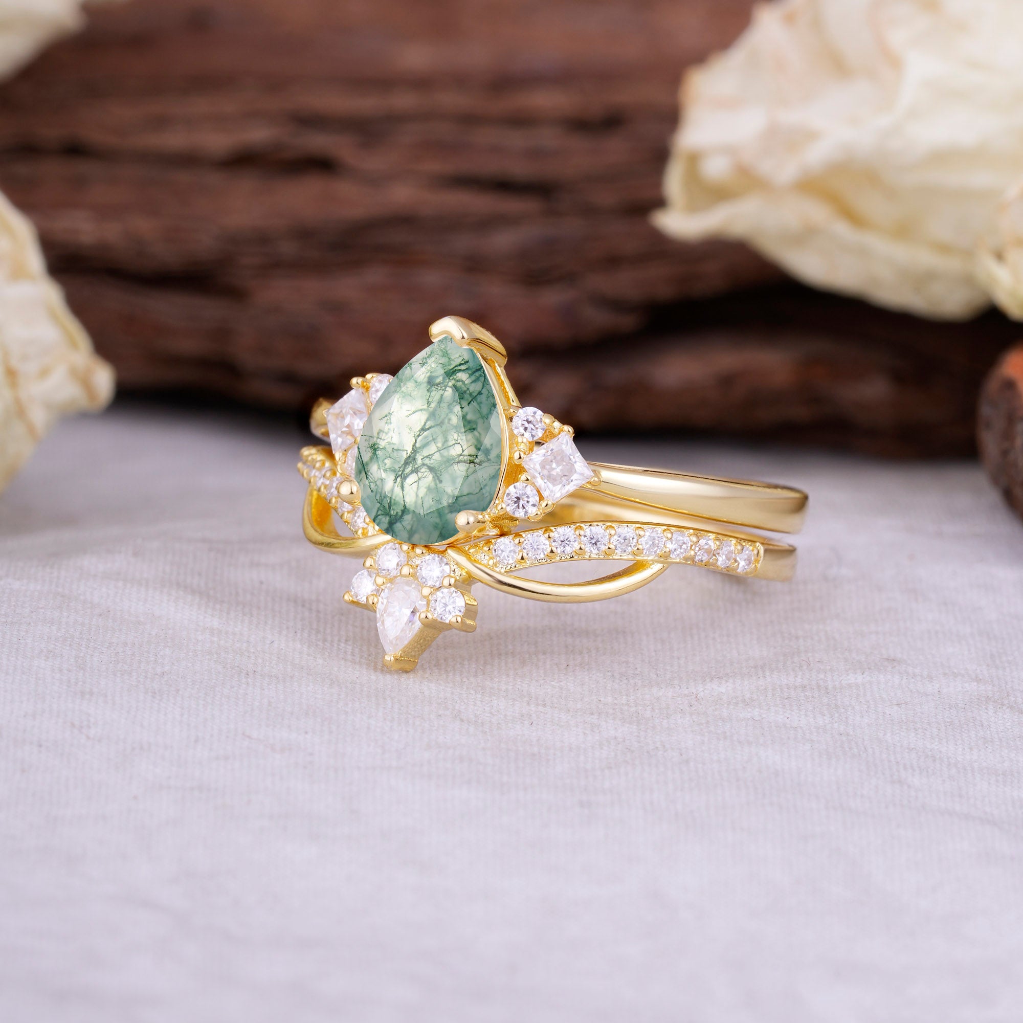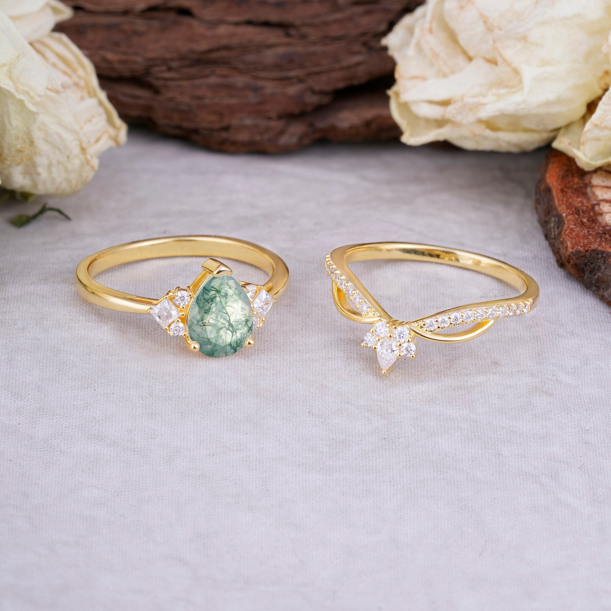 | Stone Material: Moss Agate | Stone Material: Moissanite |