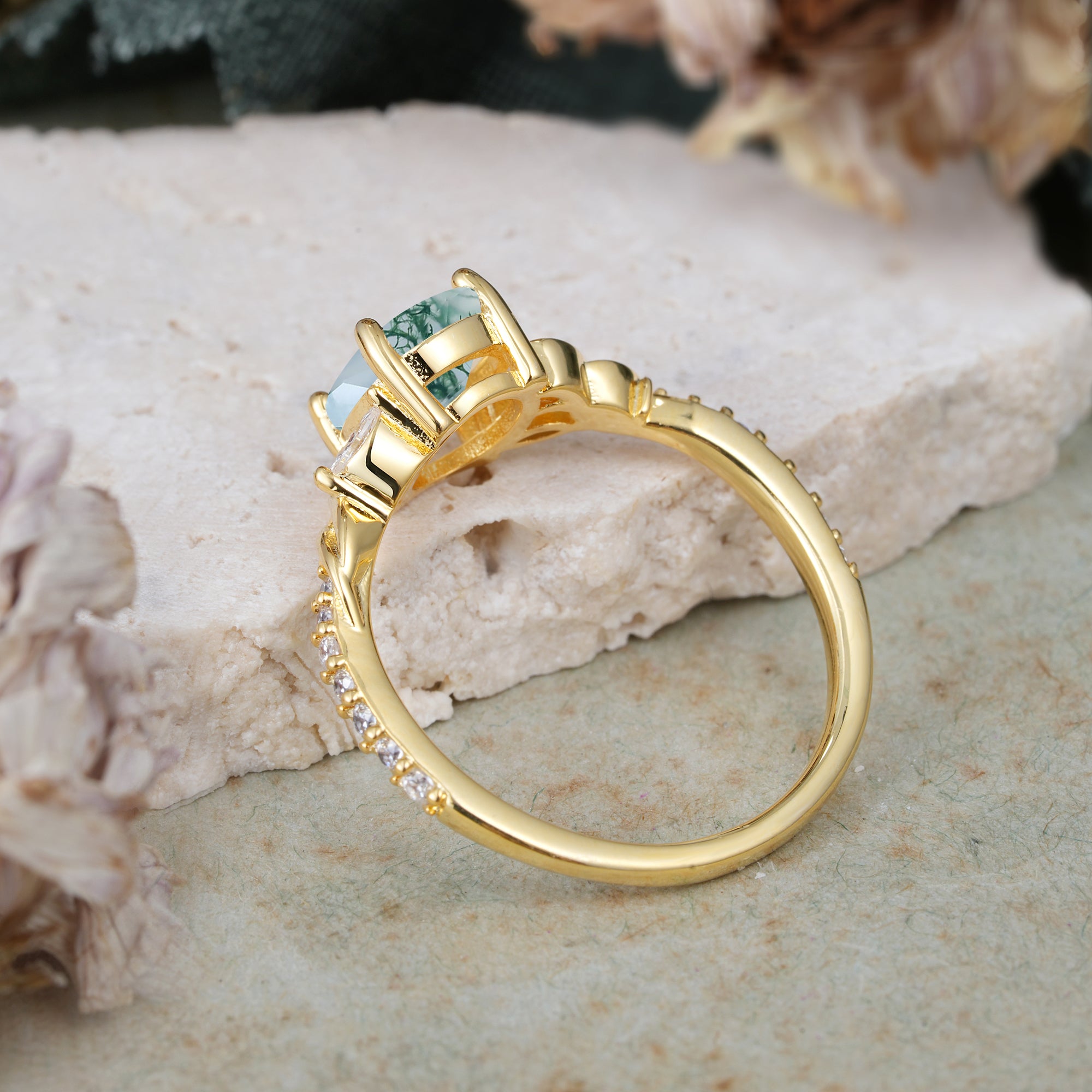Fashion-Forward Oval Lab Diamond Alternative - Luxury 4-Prong Natural Moss Agate Engagement Ring