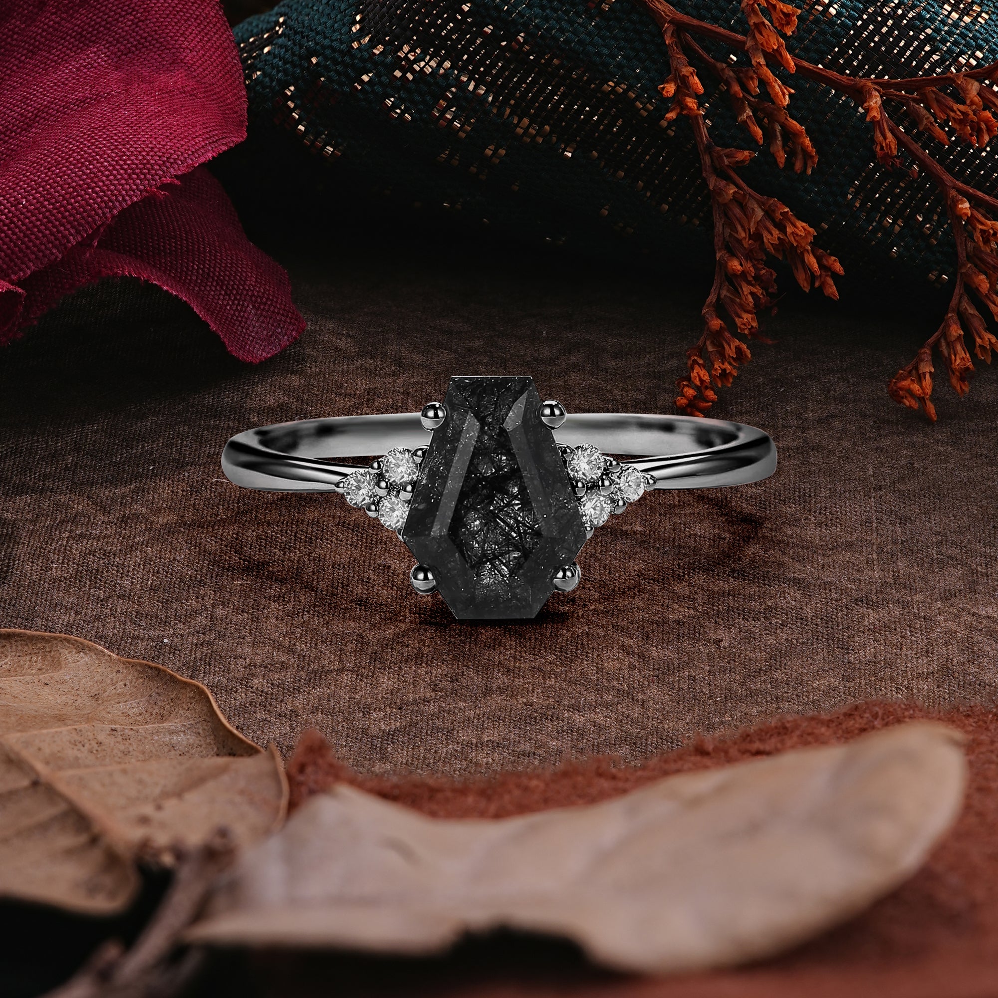 Halloween Limited | Coffin Cut Cluster Black Rutilated Quartz Ring Set