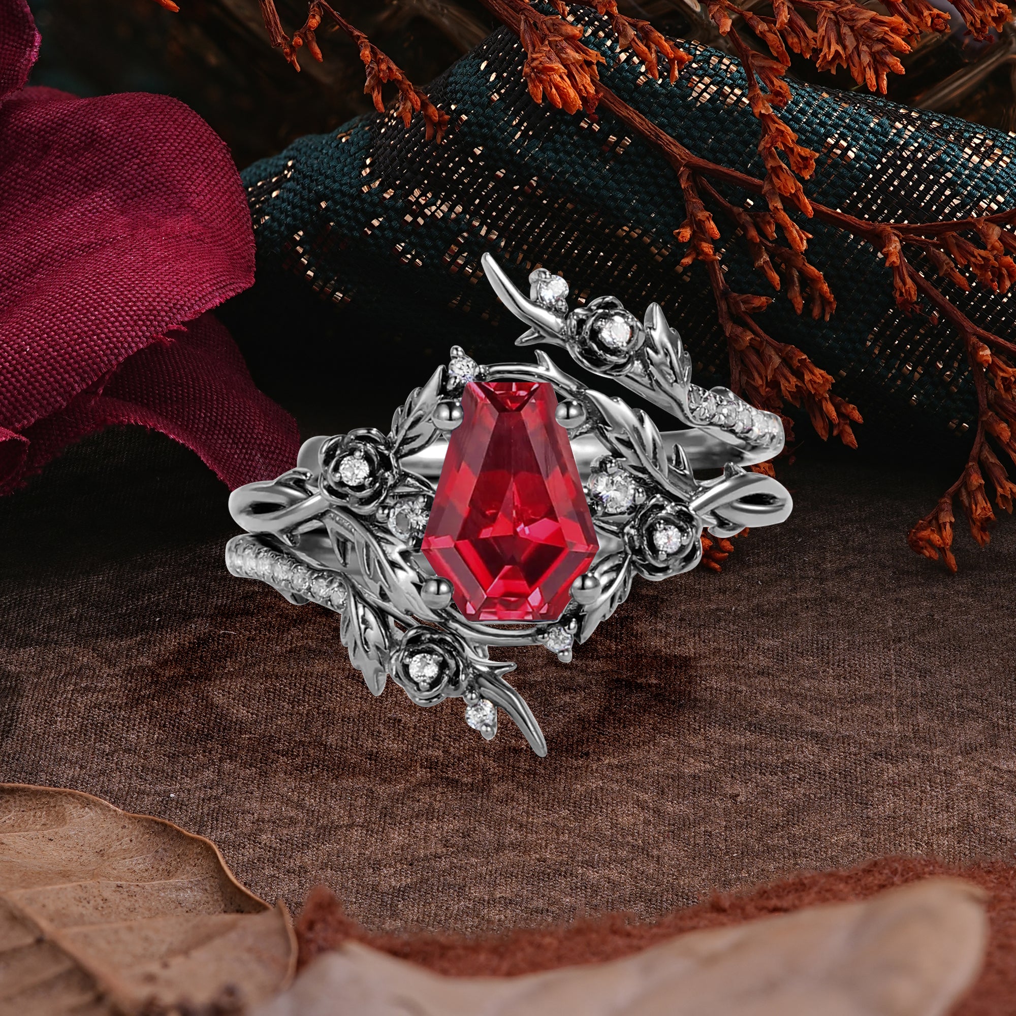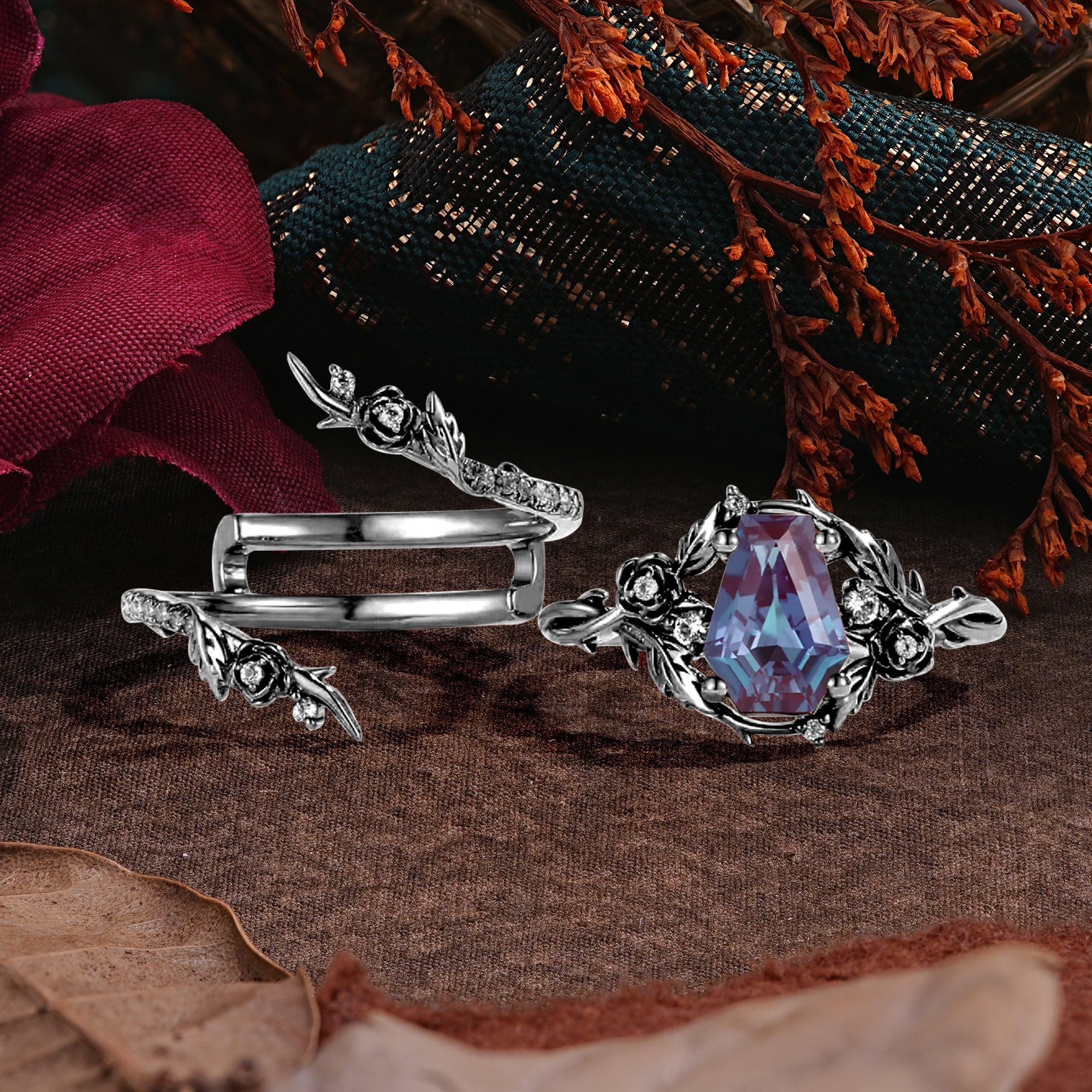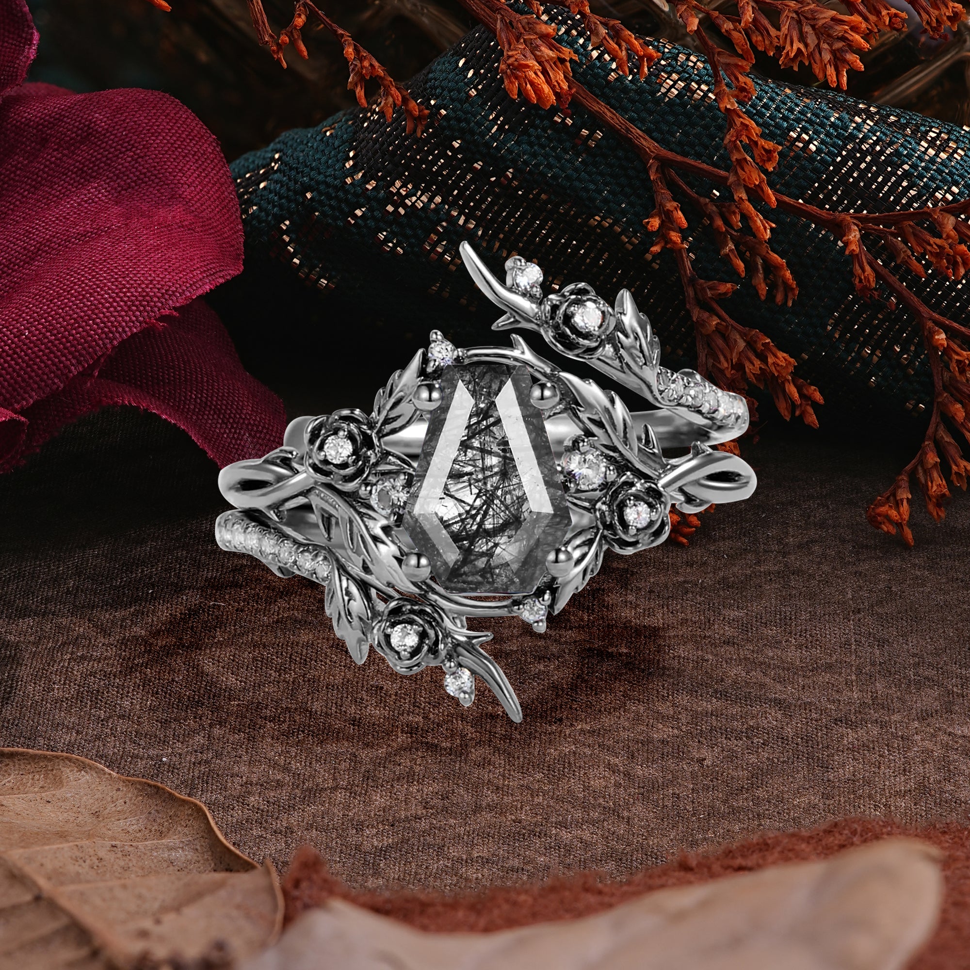 Halloween Limited | Coffin Cut Nature Inspired Twist Black Rutilated Quartz Ring Set
