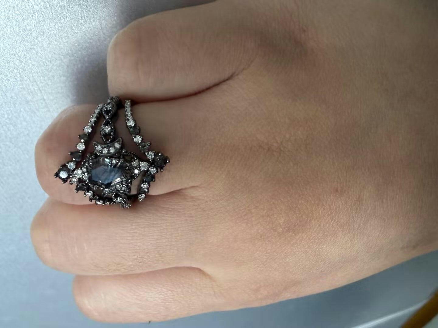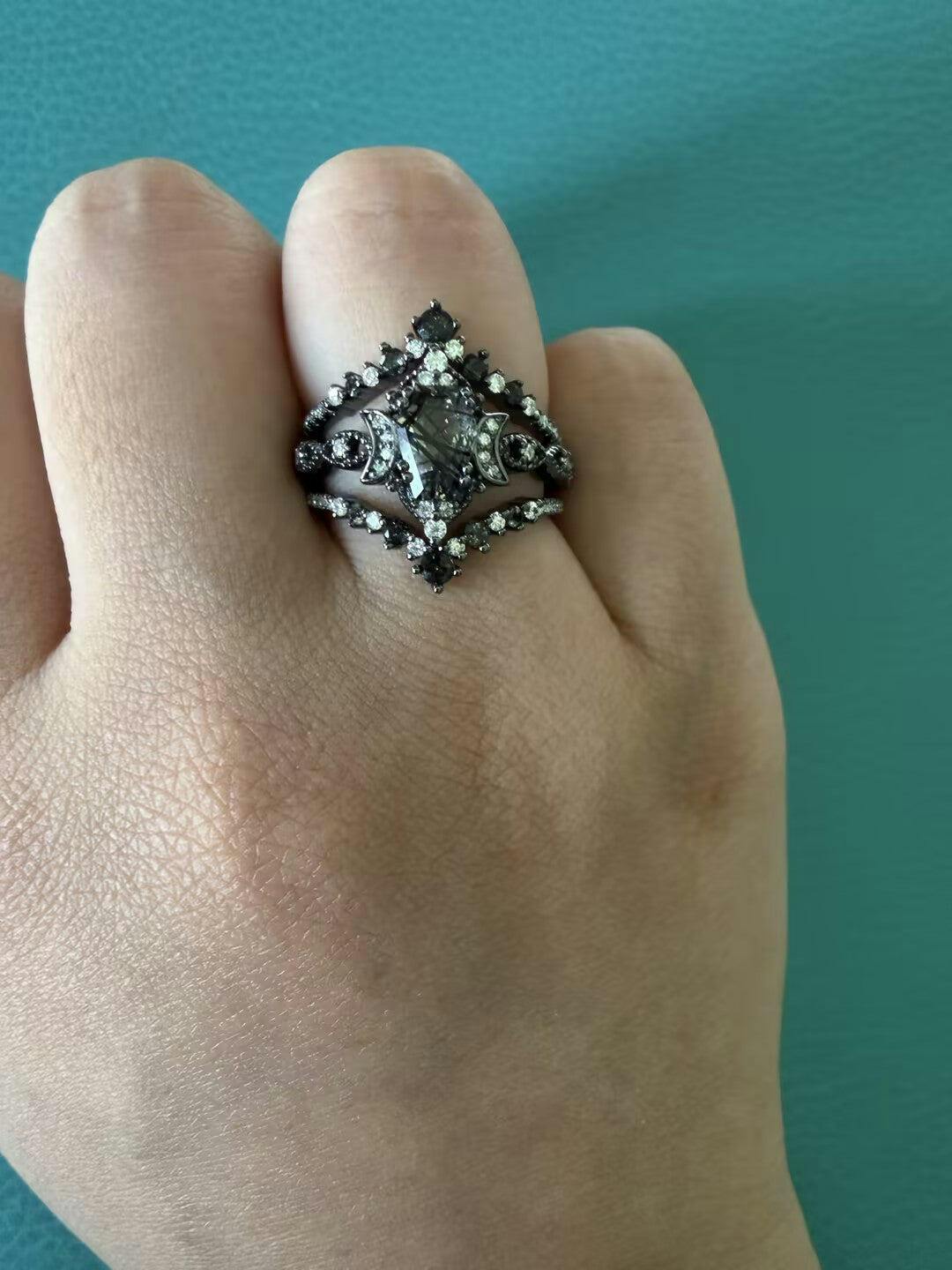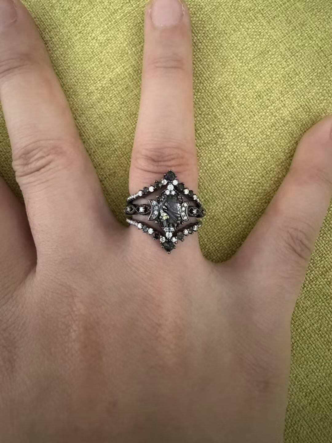 OH MY GOSH—THIS RING IS INSANE! The black plating + sparkly stones? Chef’s kiss for that gothic-glam vibe. Wore it 2 hours, got 7 compliments. Obsessed doesn’t cover it.
