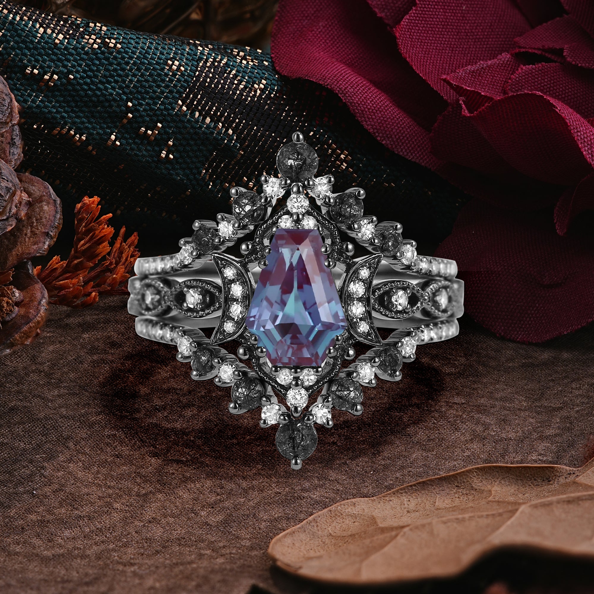 | Stone Material: Black Rutilated Quartz | Stone Material: Moissanite |