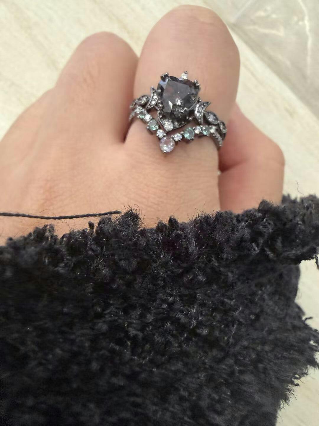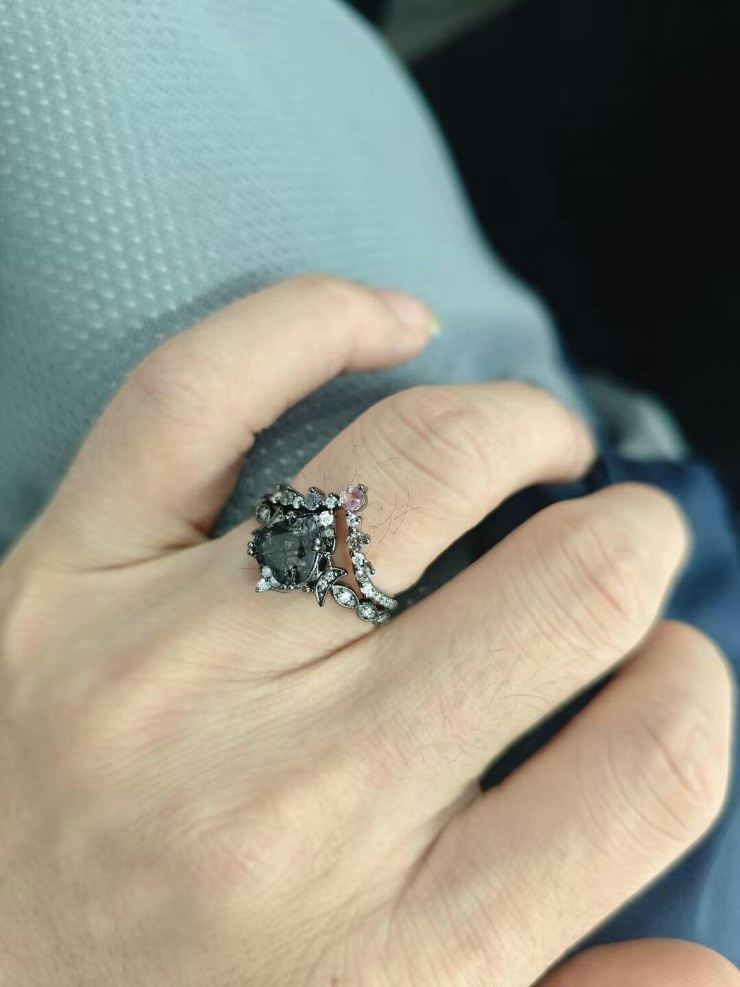 | Stone Material: Black Rutilated Quartz | Stone Material: Moissanite,Alexandrite |