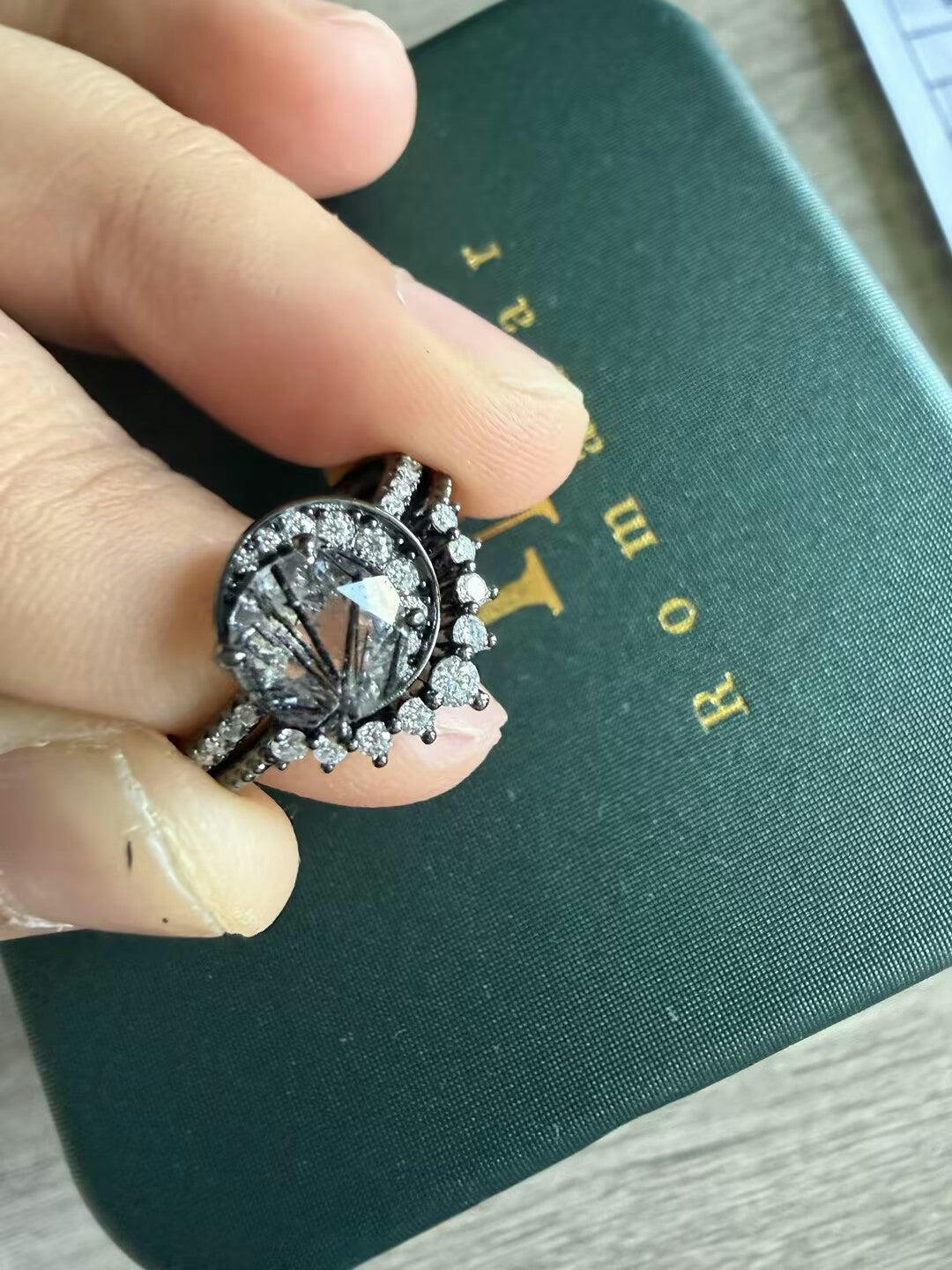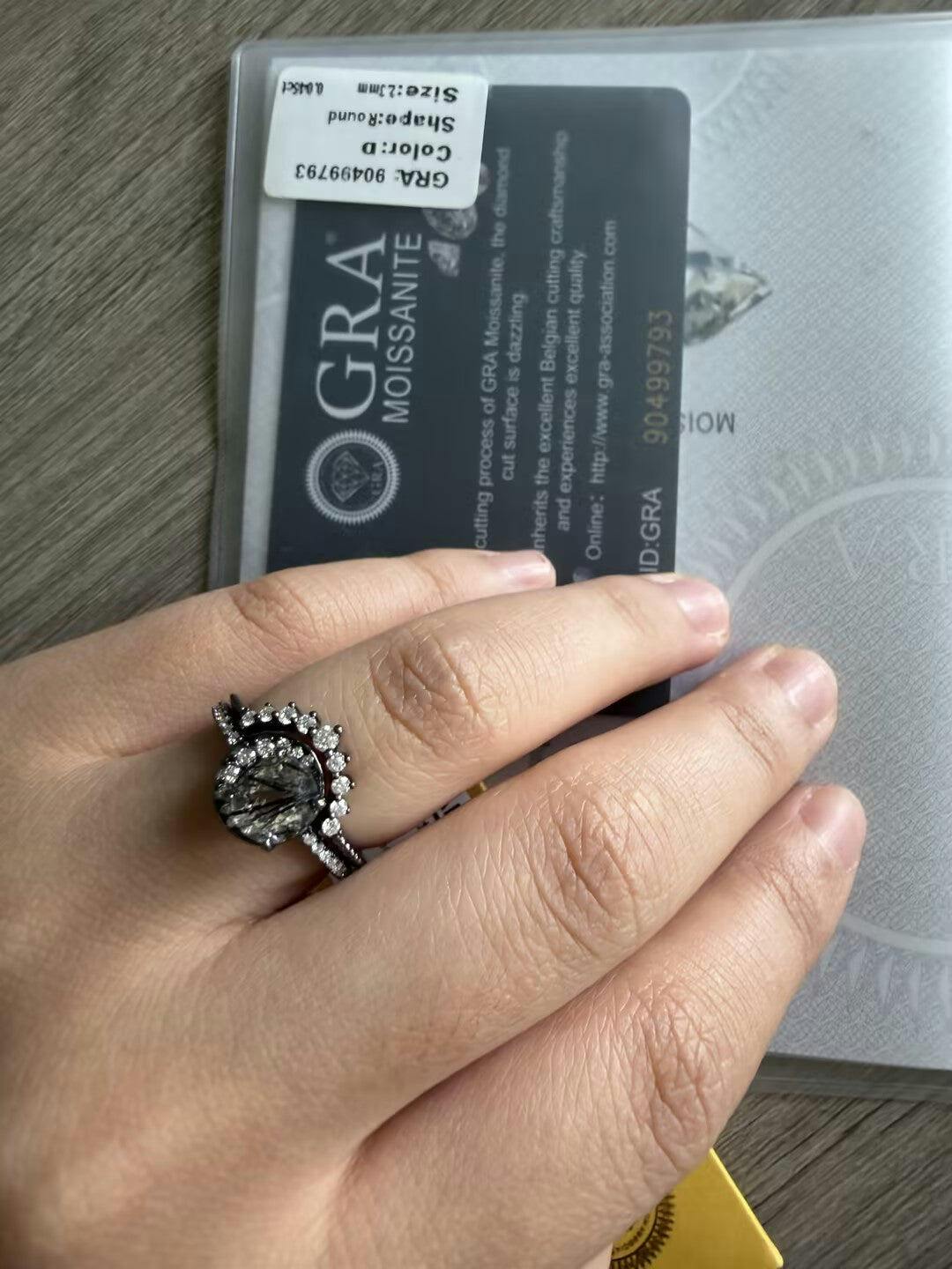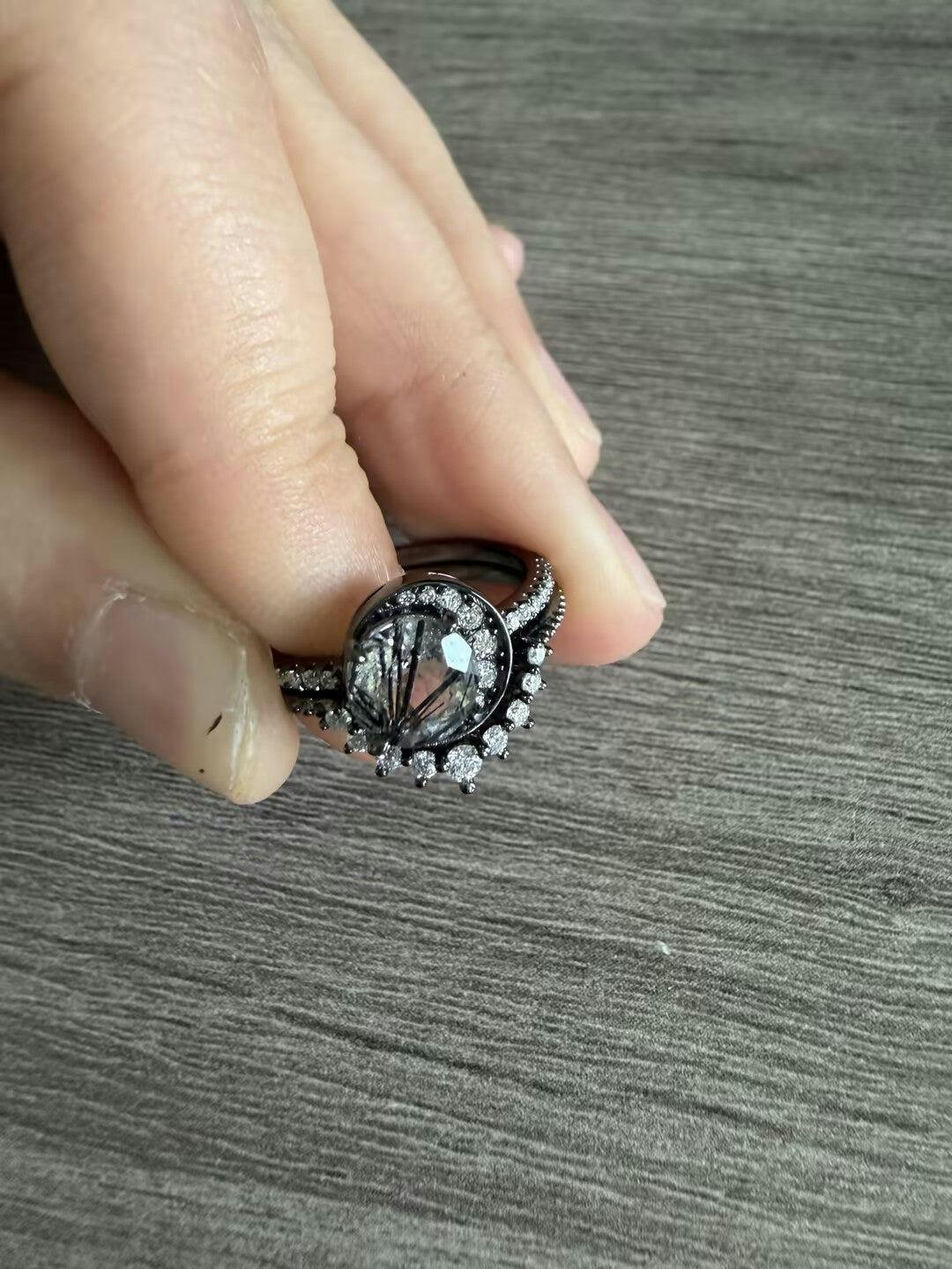 | Stone Material: Black Rutilated Quartz | Stone Material: Moissanite |