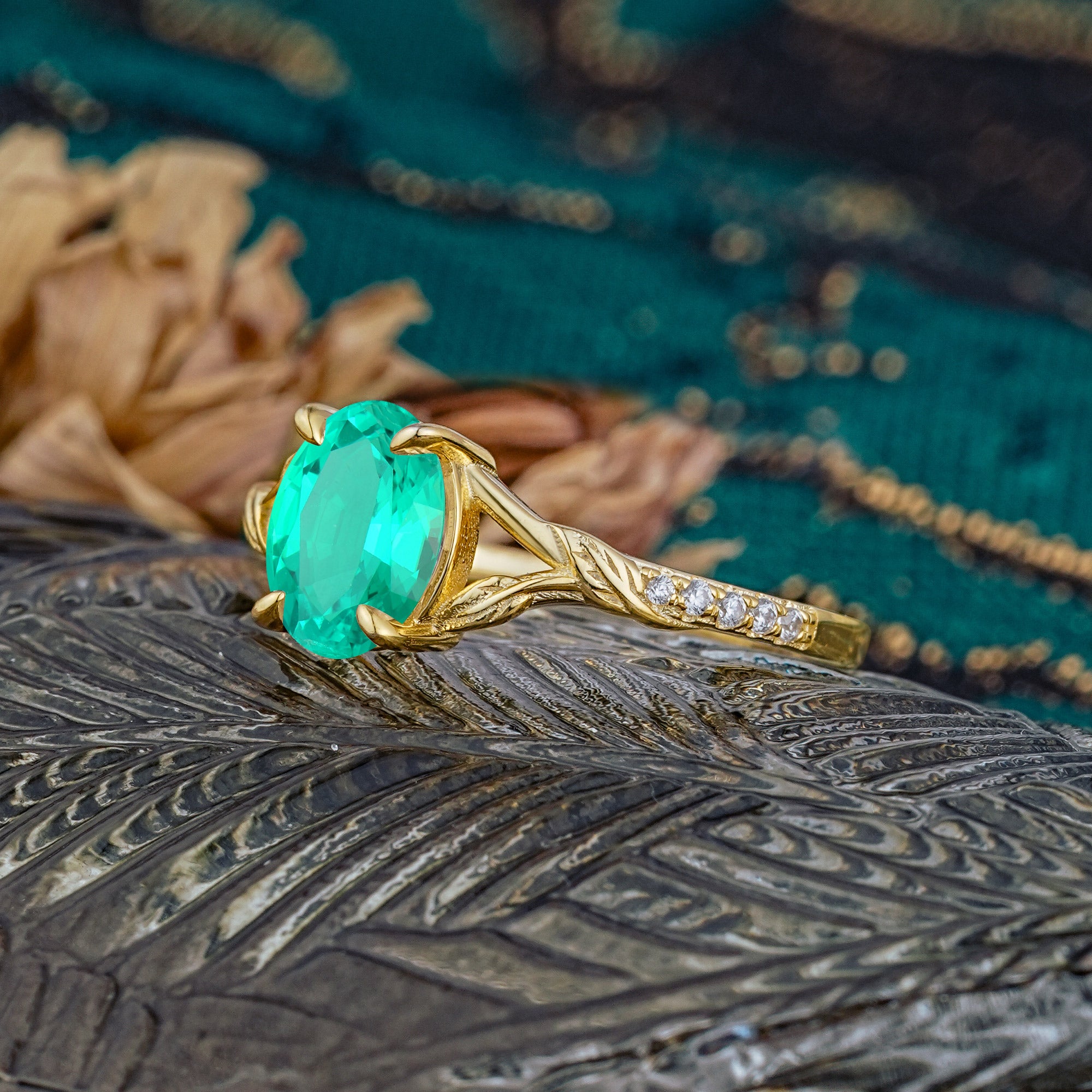 Heirloom 4-Prong Oval Cut Emerald Engagement Ring
