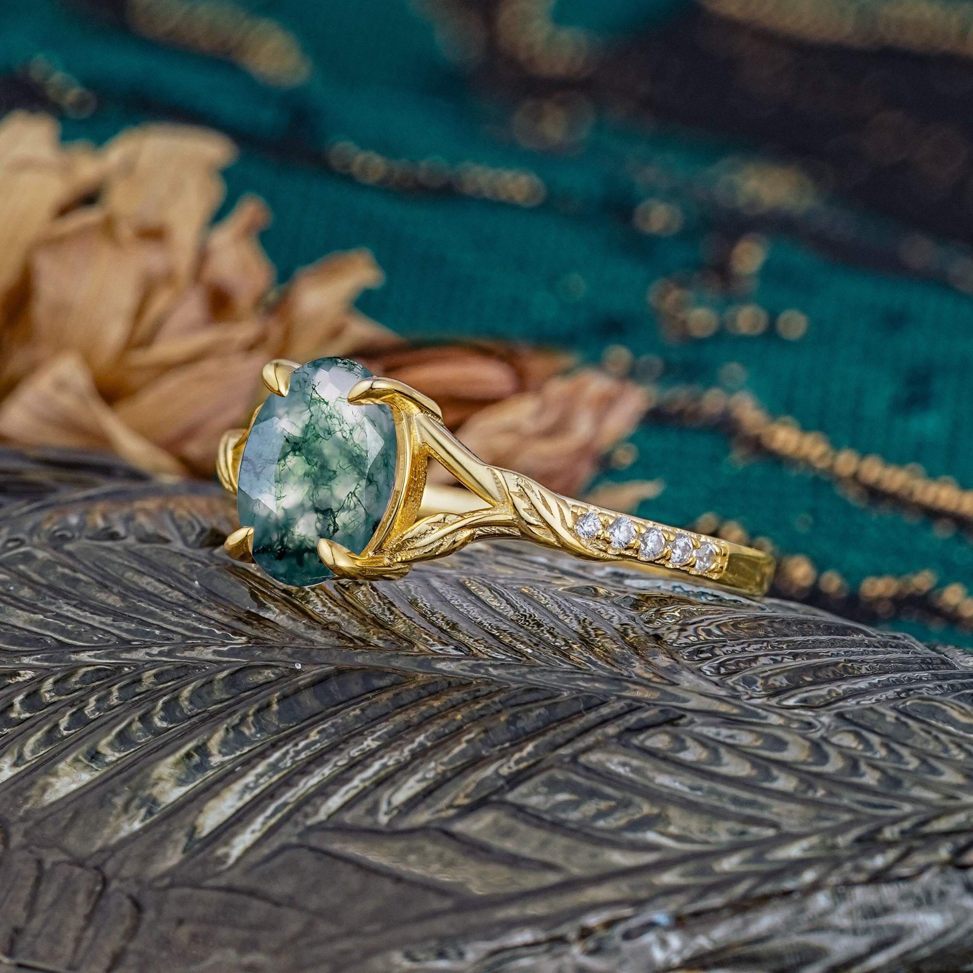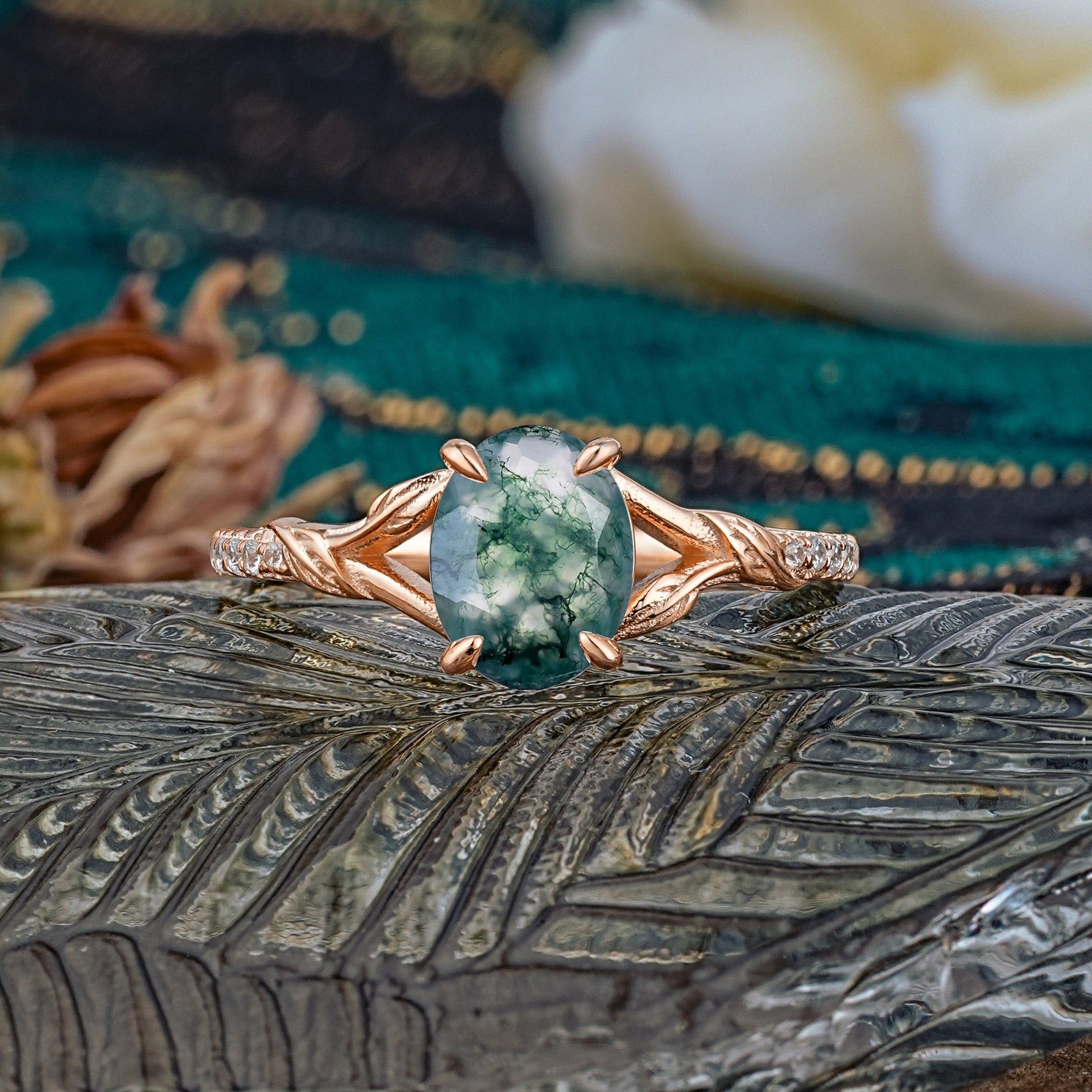 | Stone Material: Moss Agate | Stone Material: Moissanite | |