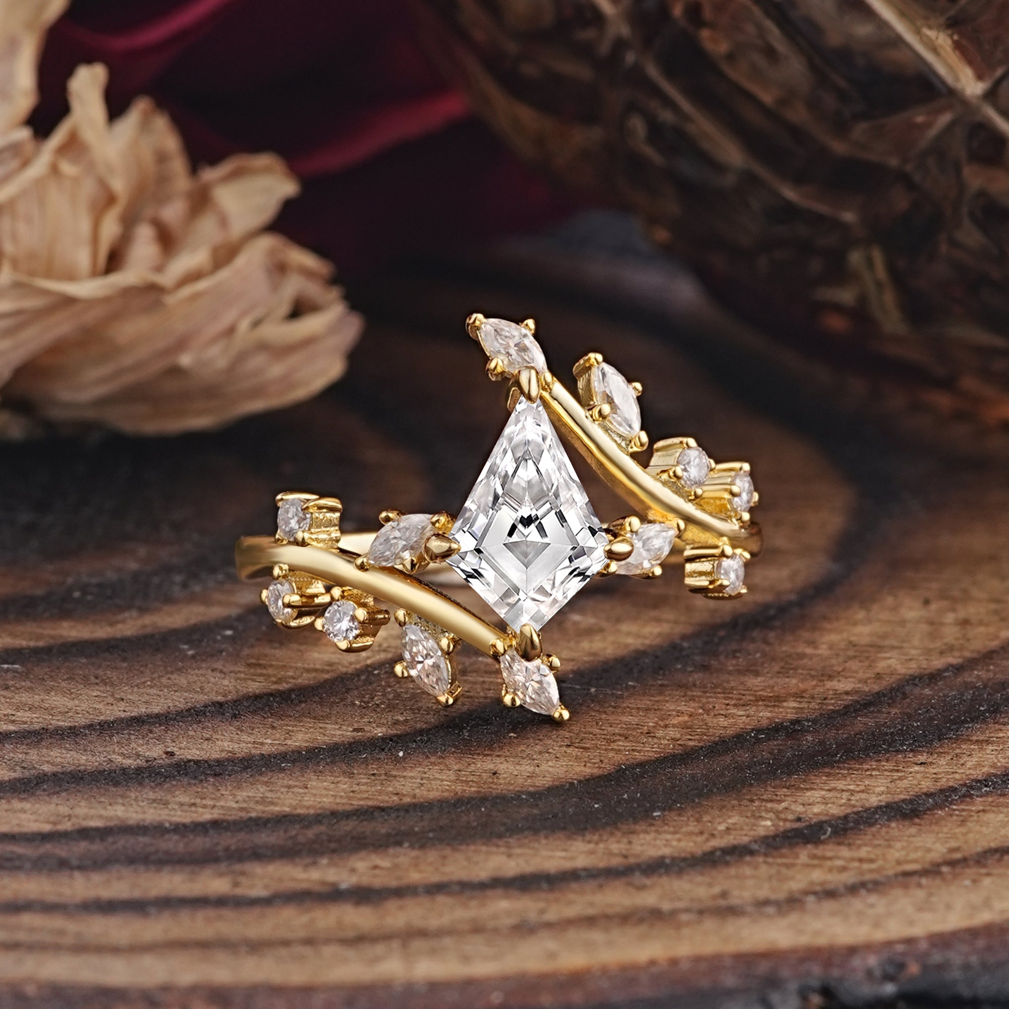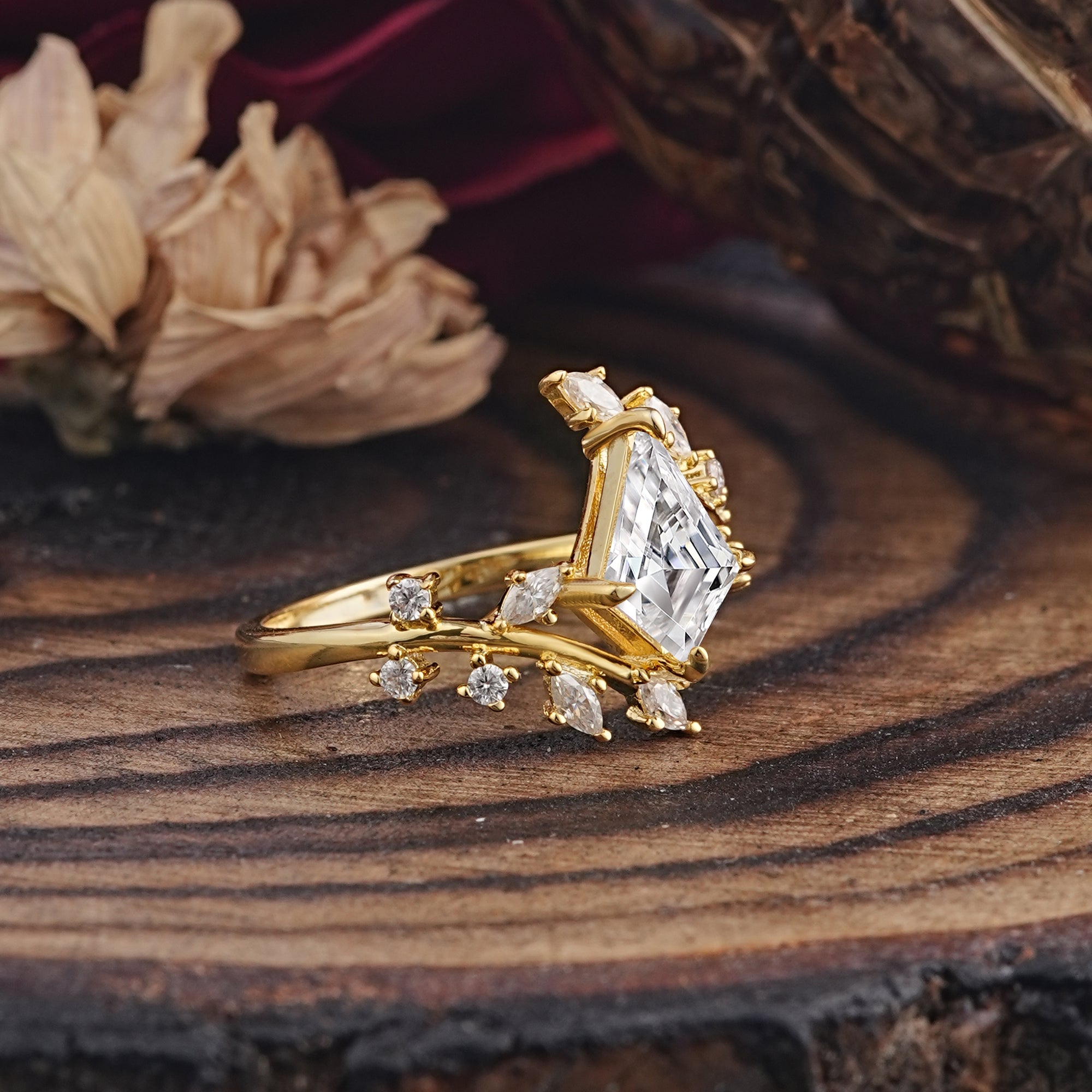 Kite Cut Gold Leaf Lab Diamond Engagement Ring for Women