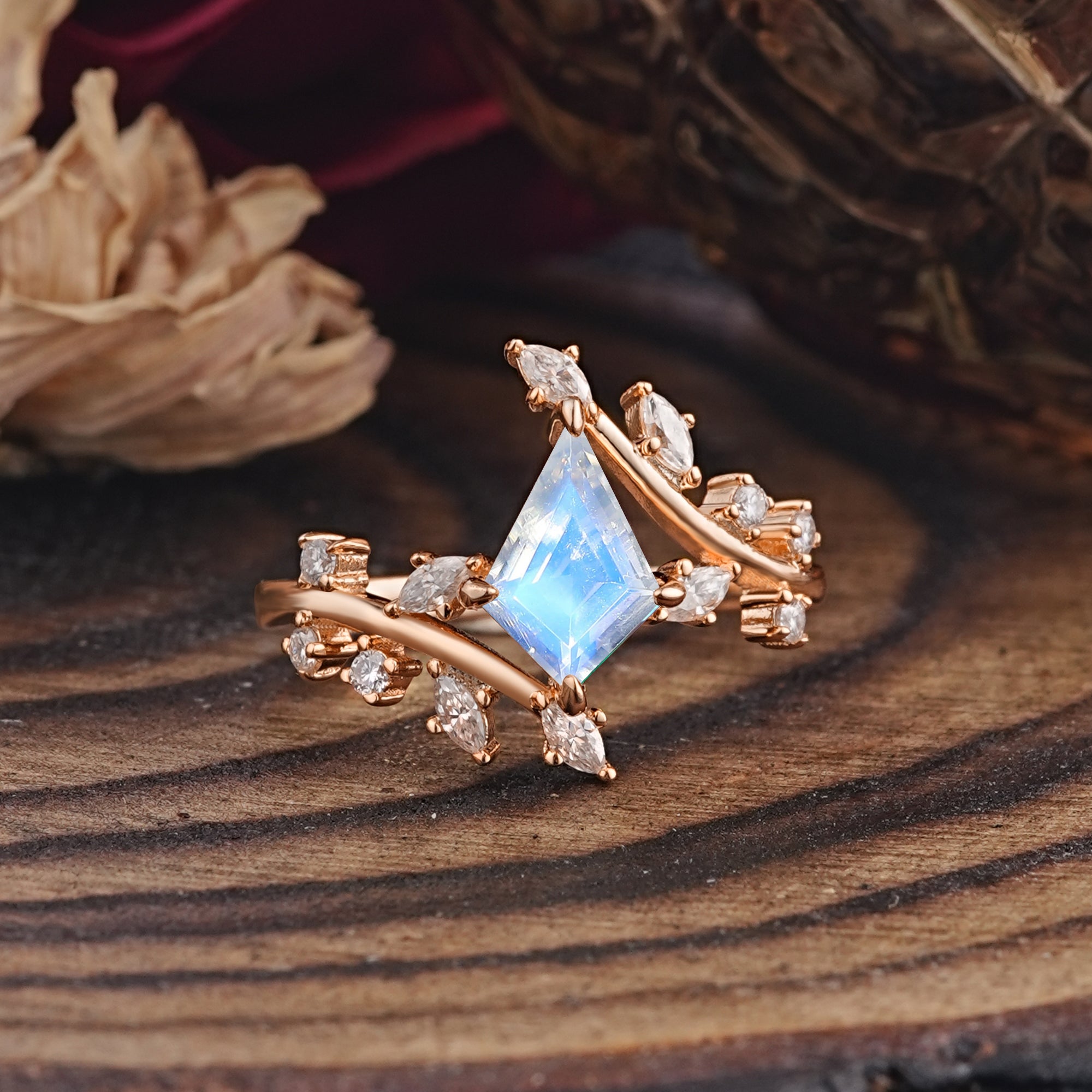 | Stone Material: Moonstone | Stone Material: Moissanite |