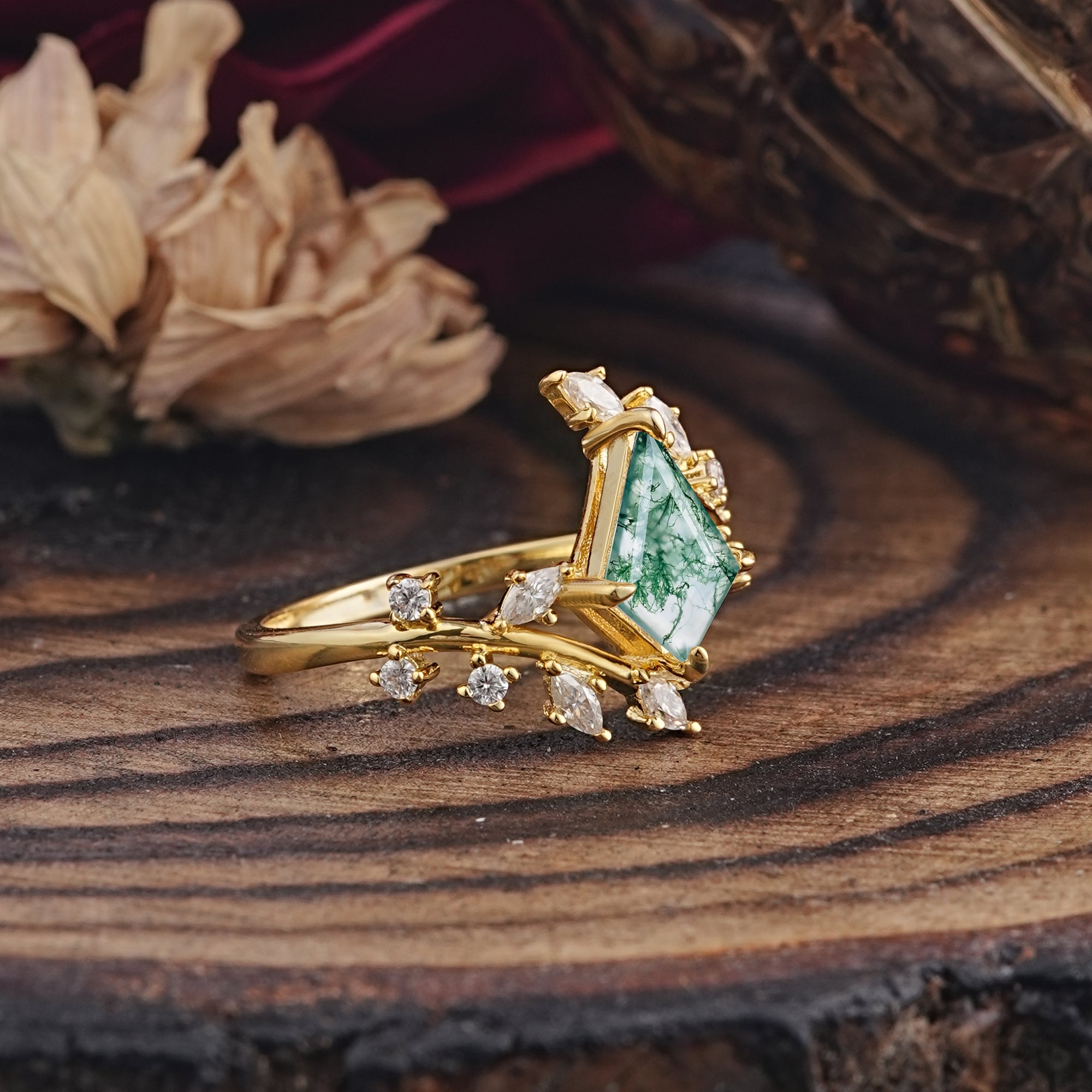 | Stone Material: Moss Agate | Stone Material: Moissanite |