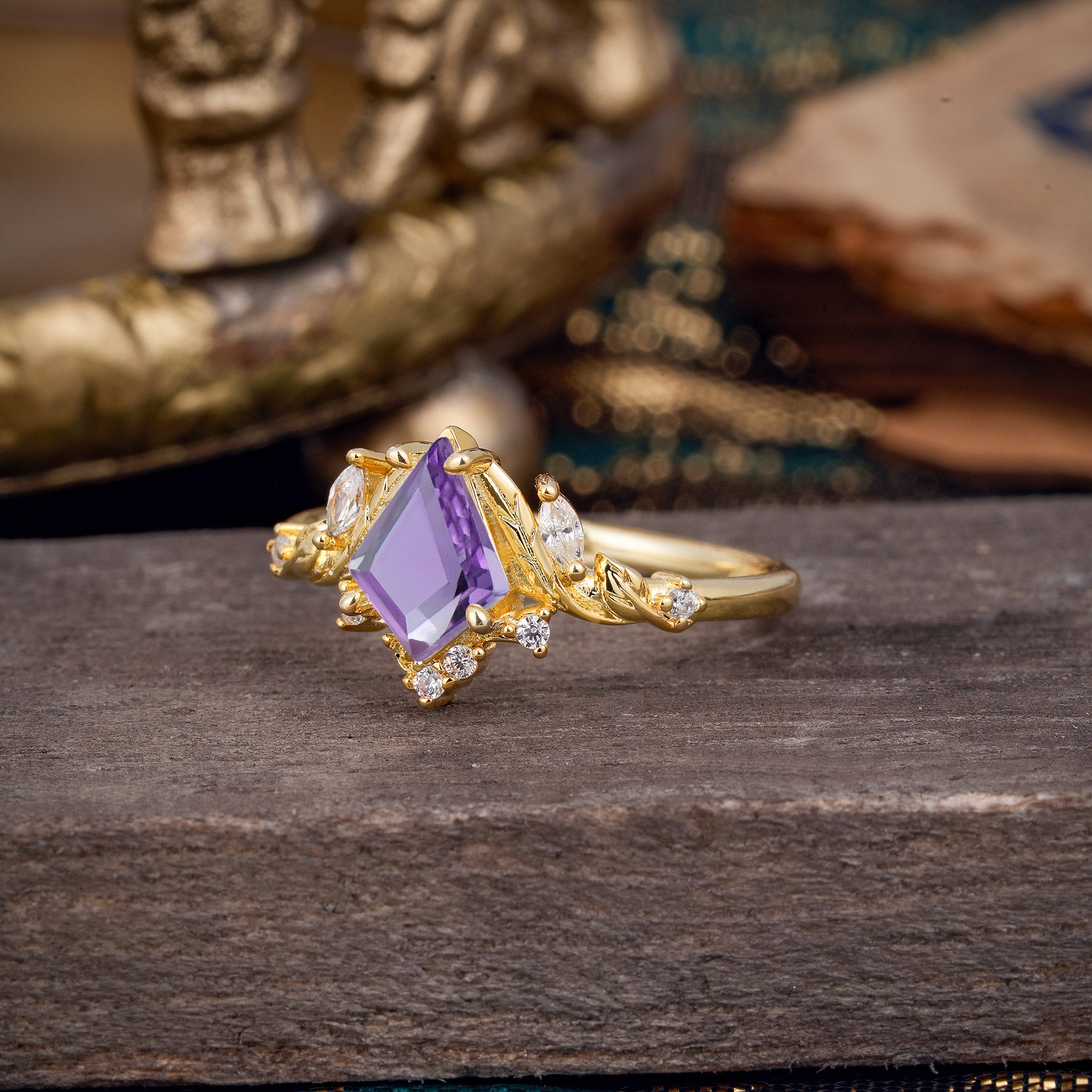 Kite Cut Nature-Inspired Amethyst Engagement Ring