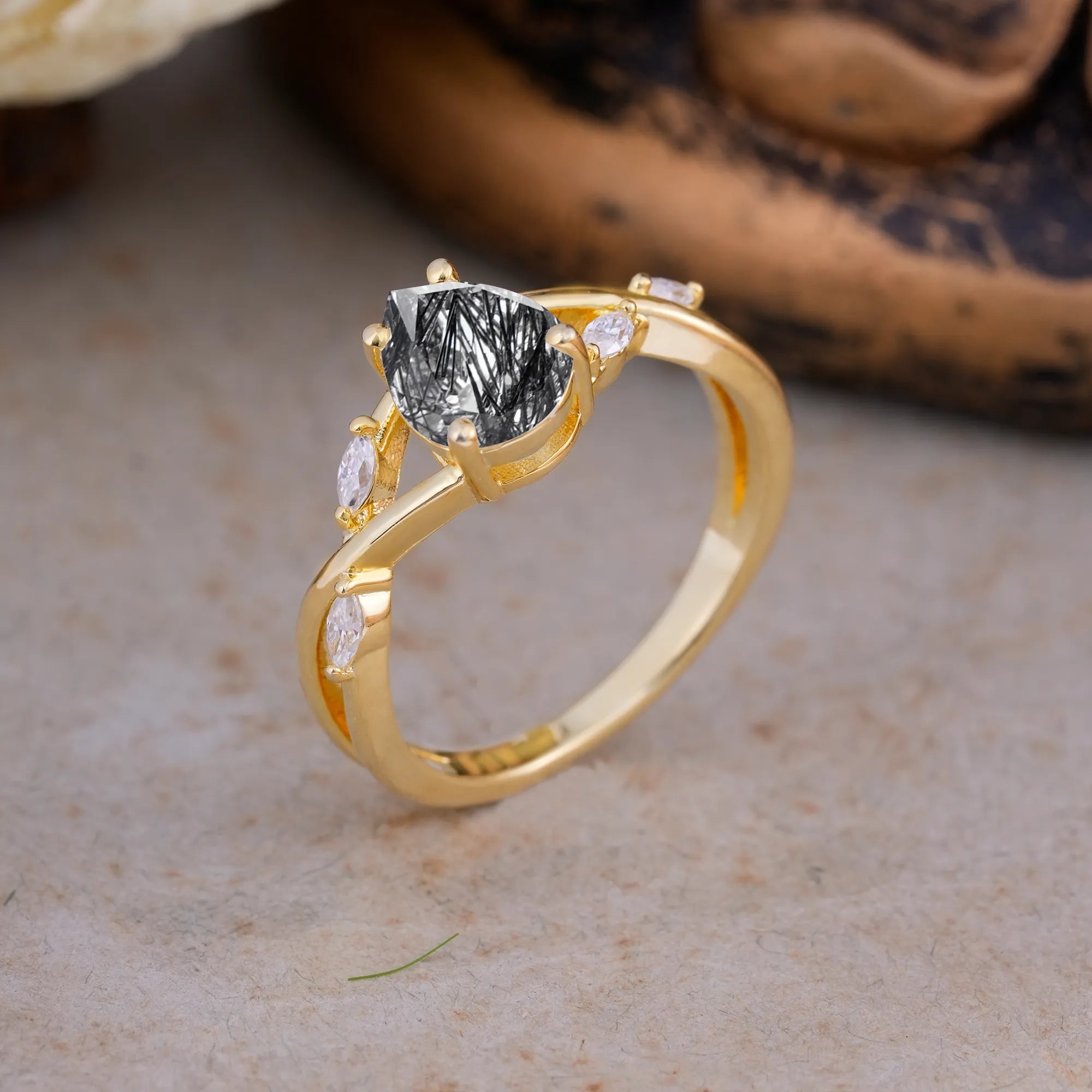 Lux Minimalist 4-Prong Pear-Cut Black Rutilated Quartz Engagement Ring