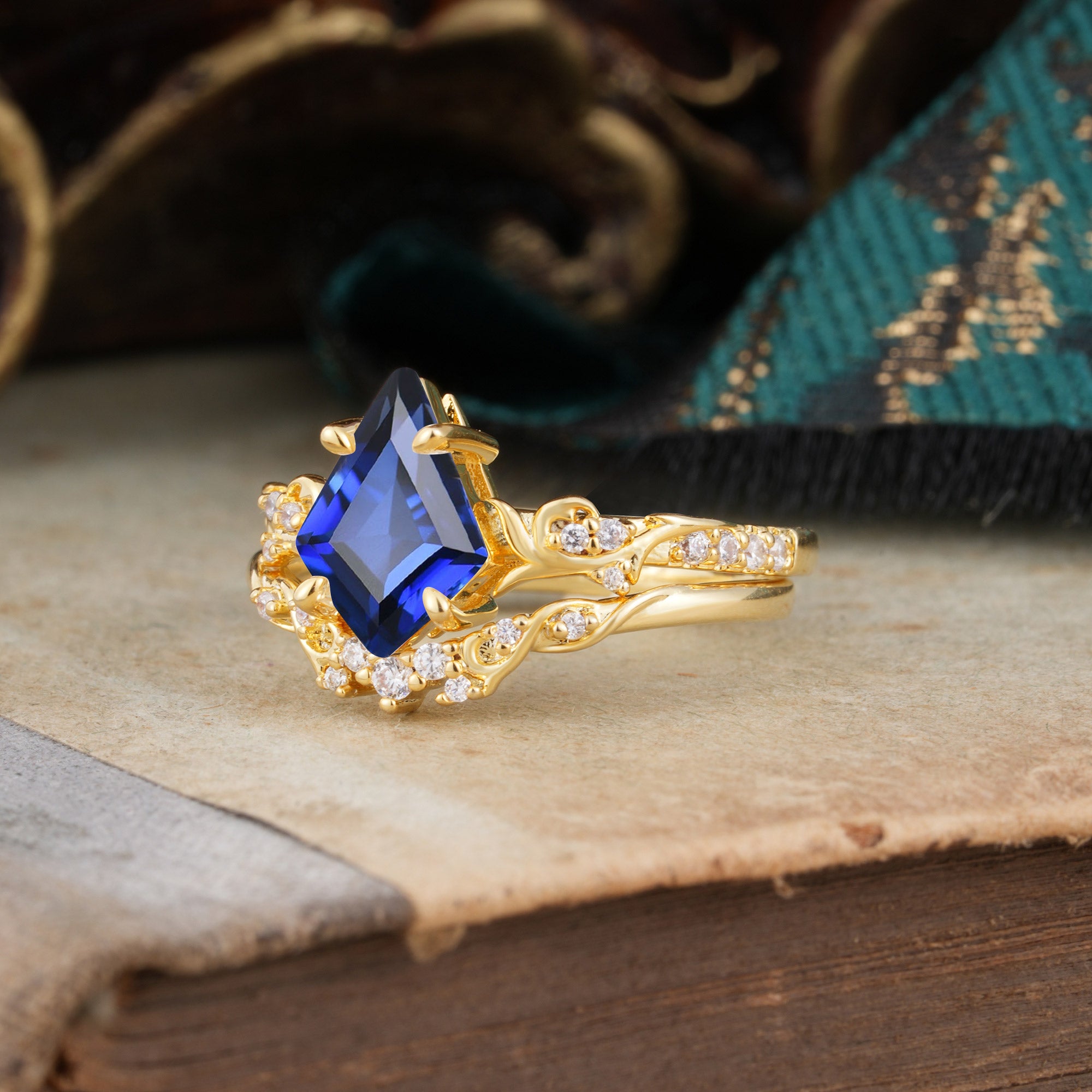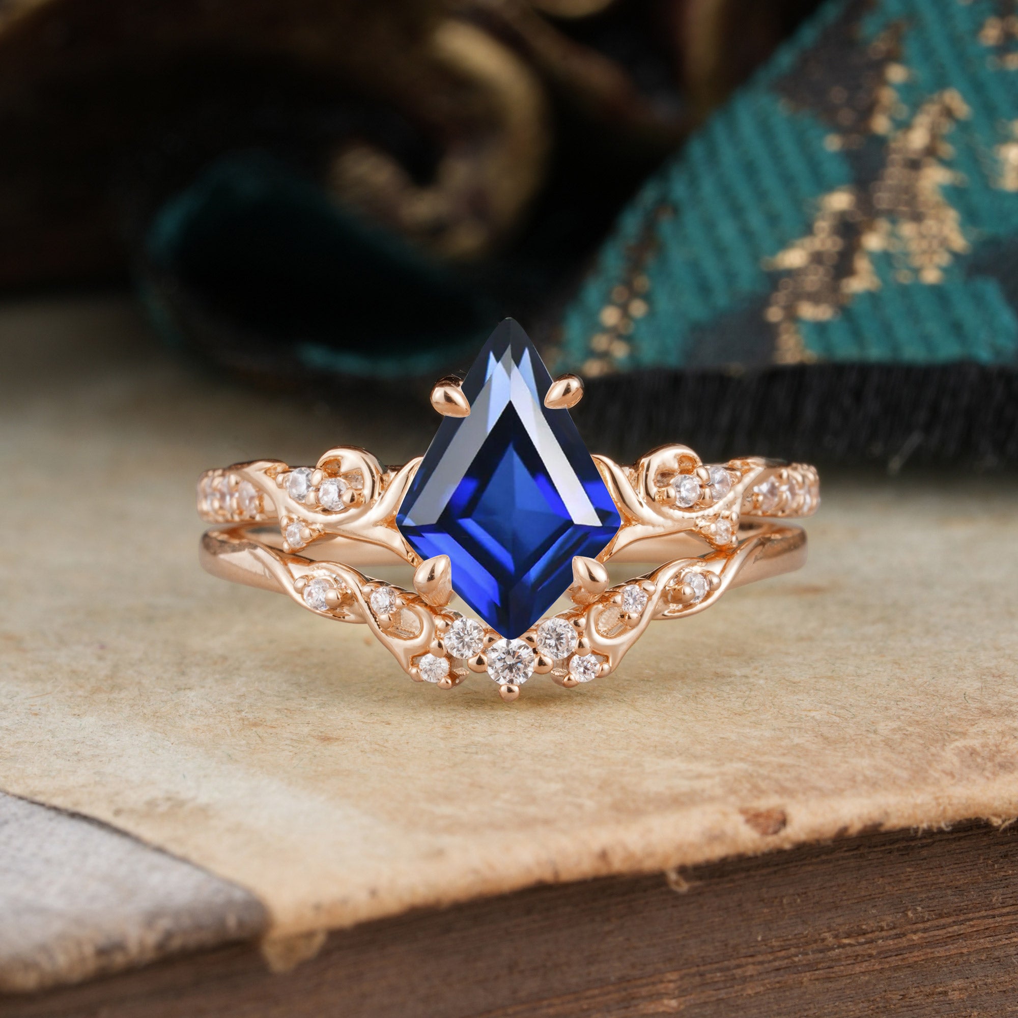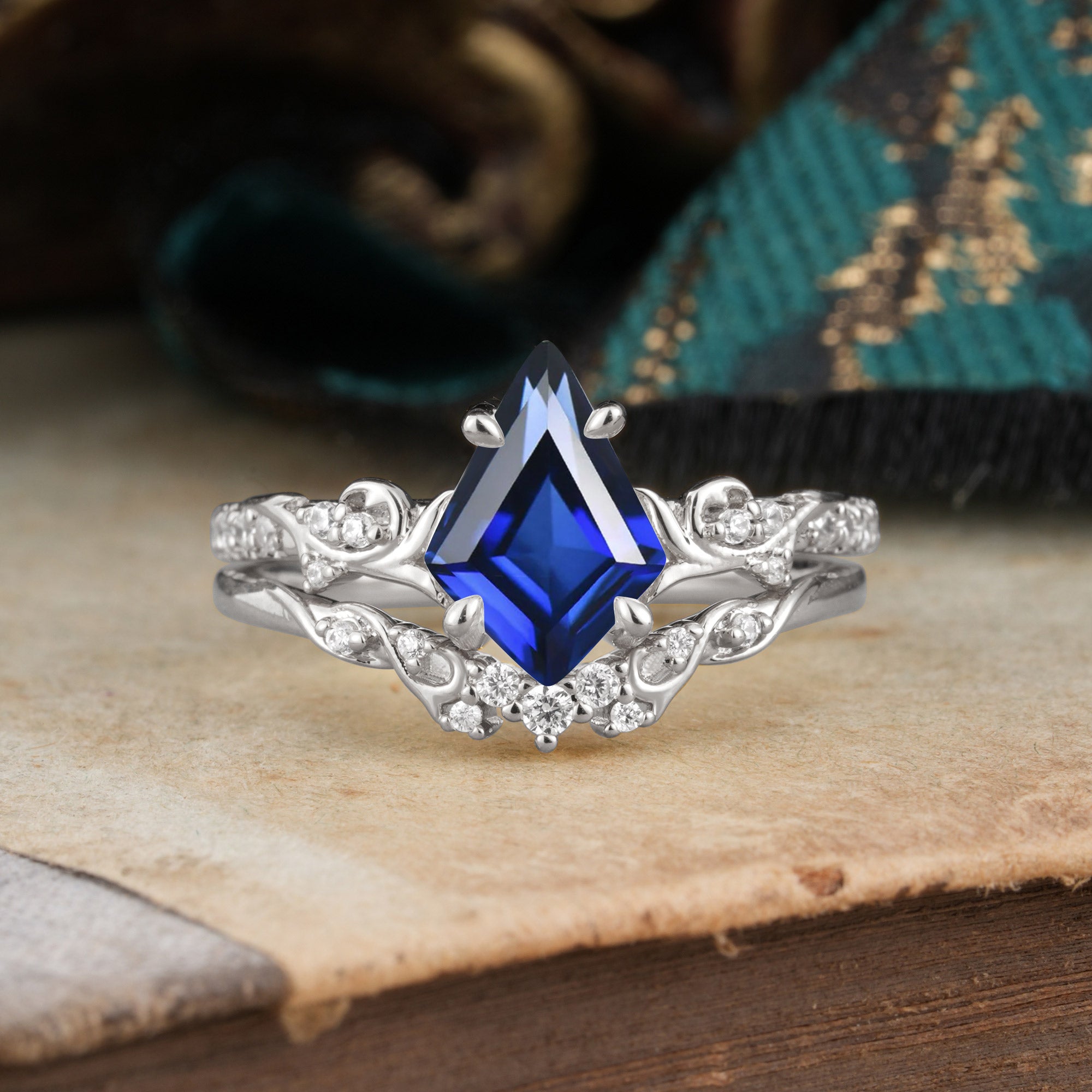 Luxurious Nature-Inspired 4-Prong Kite-Cut Aquamarine Engagement Ring Set