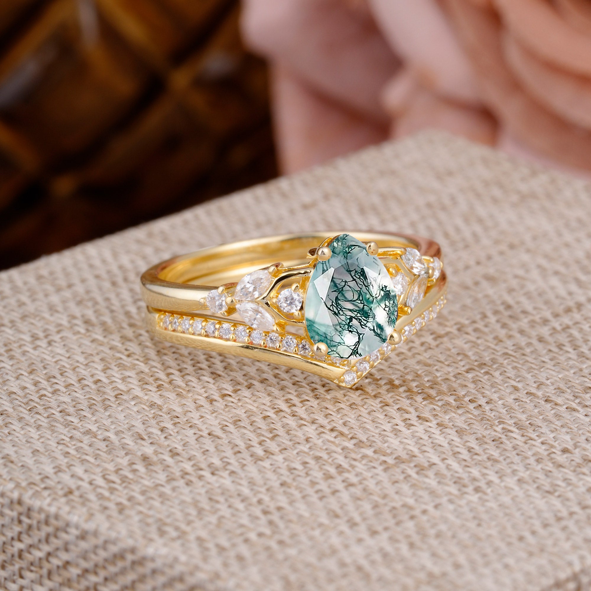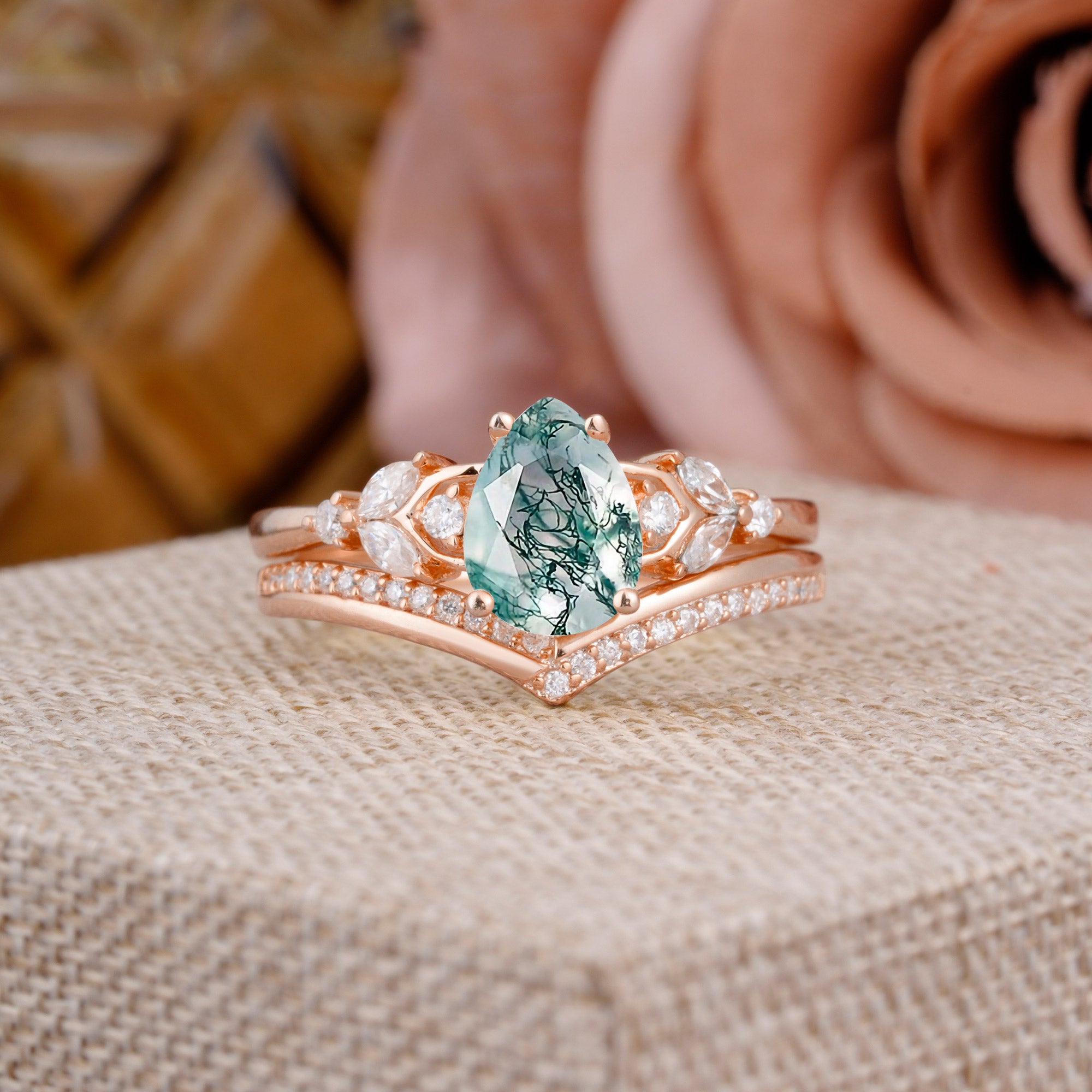 | Stone Material: Moss Agate | Stone Material: Moissanite |