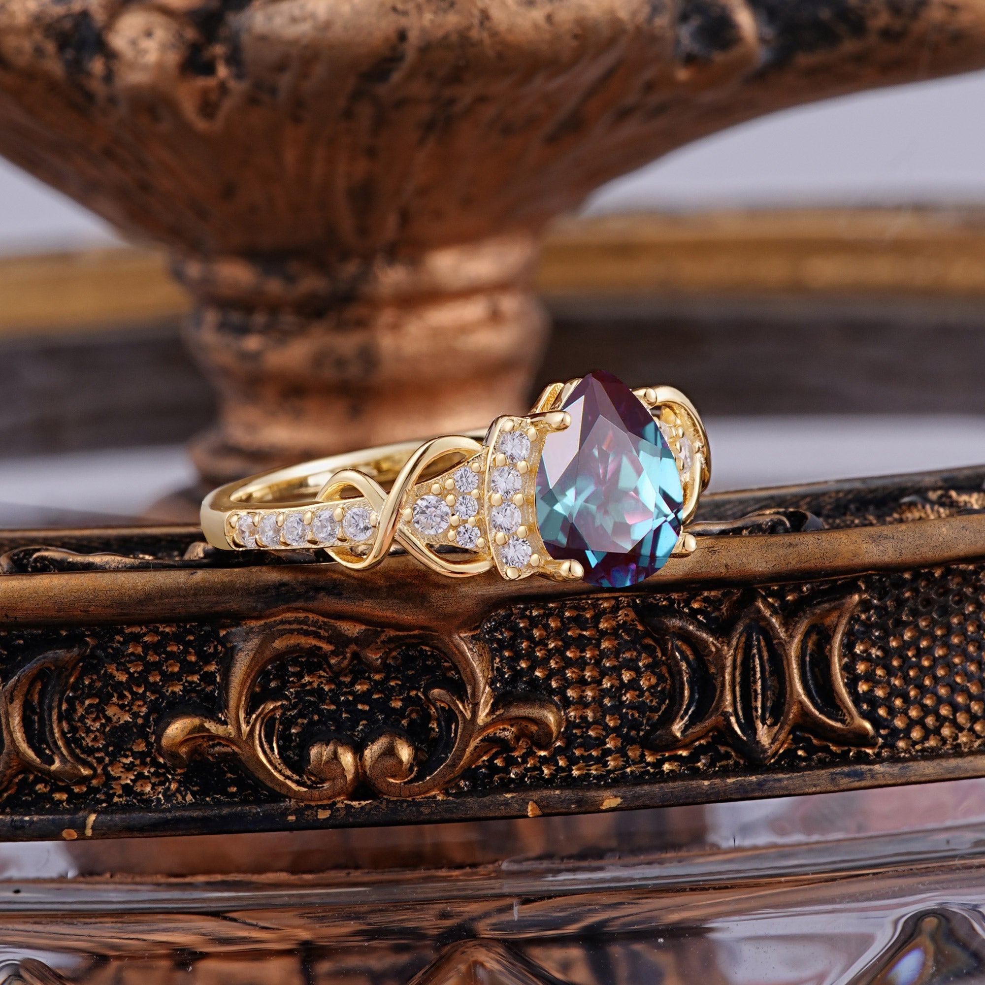 Luxury 4-Prong Pear-Shaped Alexandrite Wedding Ring