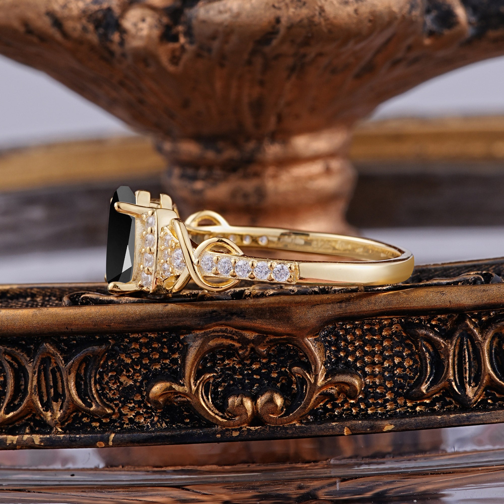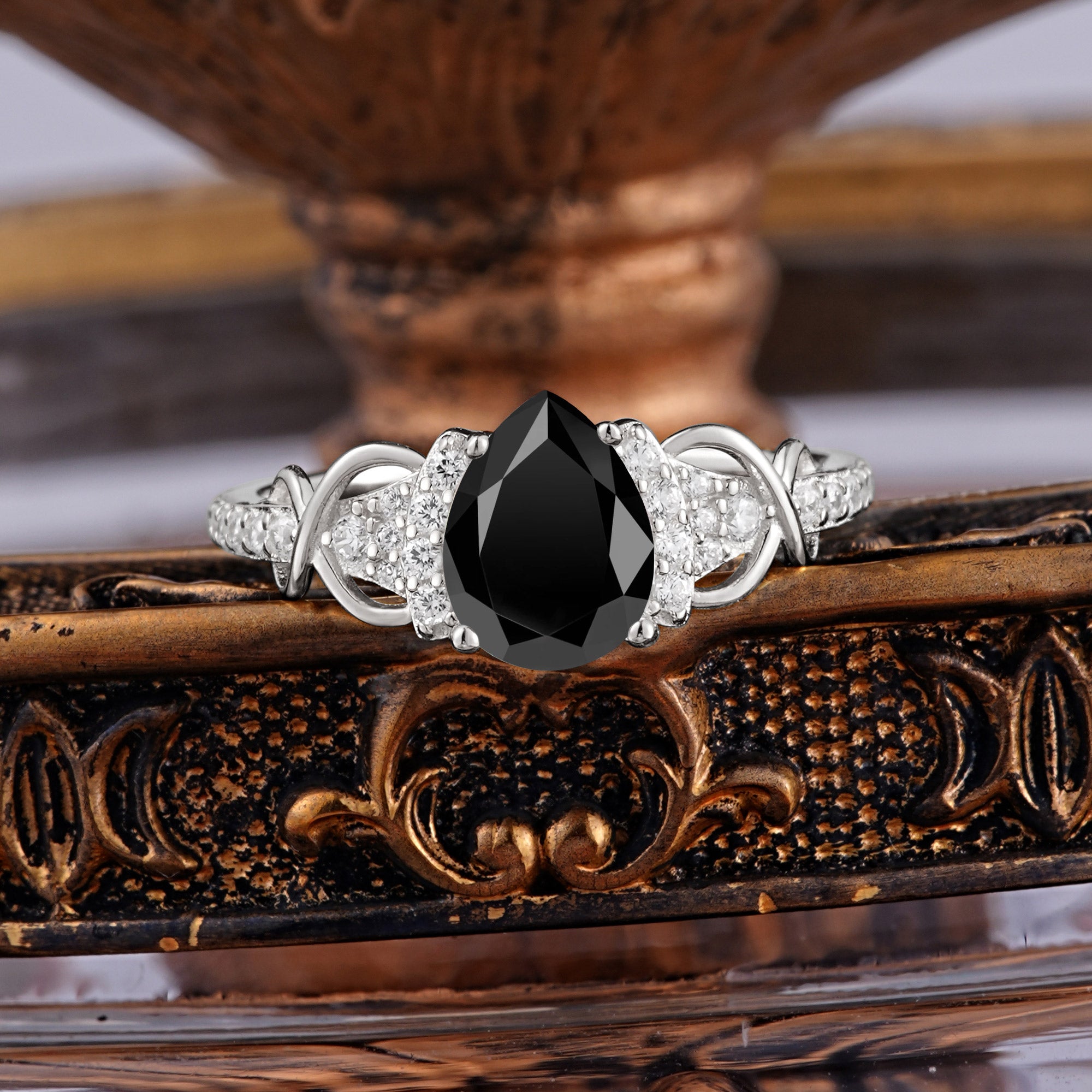 💎Luxury 4-Prong Pear-Shaped Black Onyx Wedding Ring