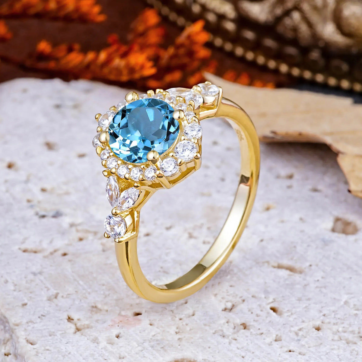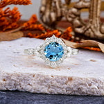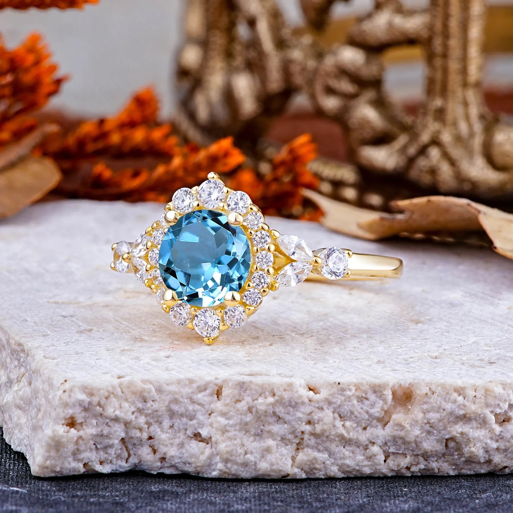Luxury 4-Prong Round Cut Aquamarine Engagement Ring