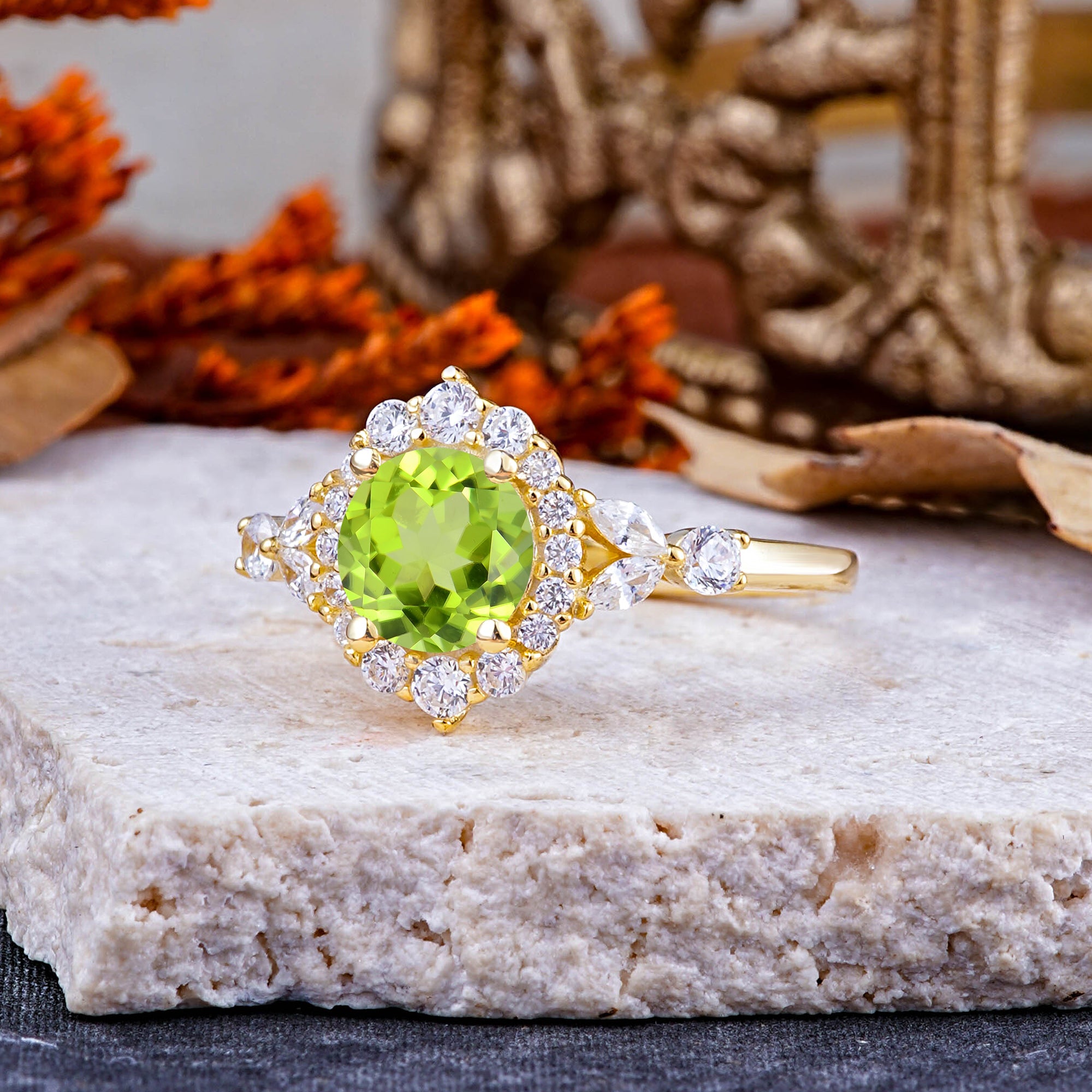 Luxury 4-Prong Round Cut Peridot Engagement Ring