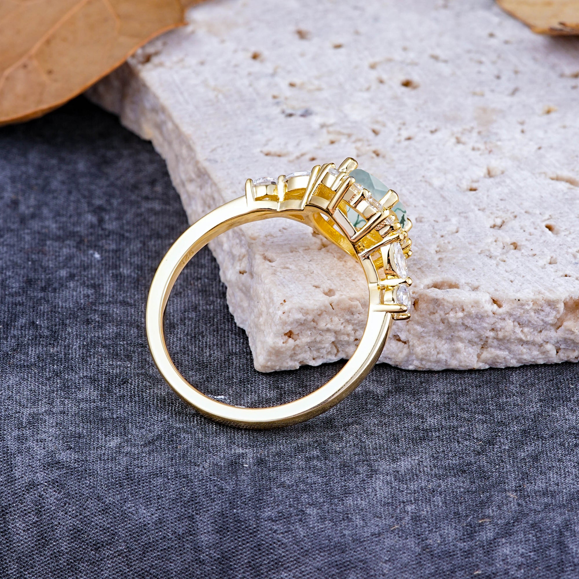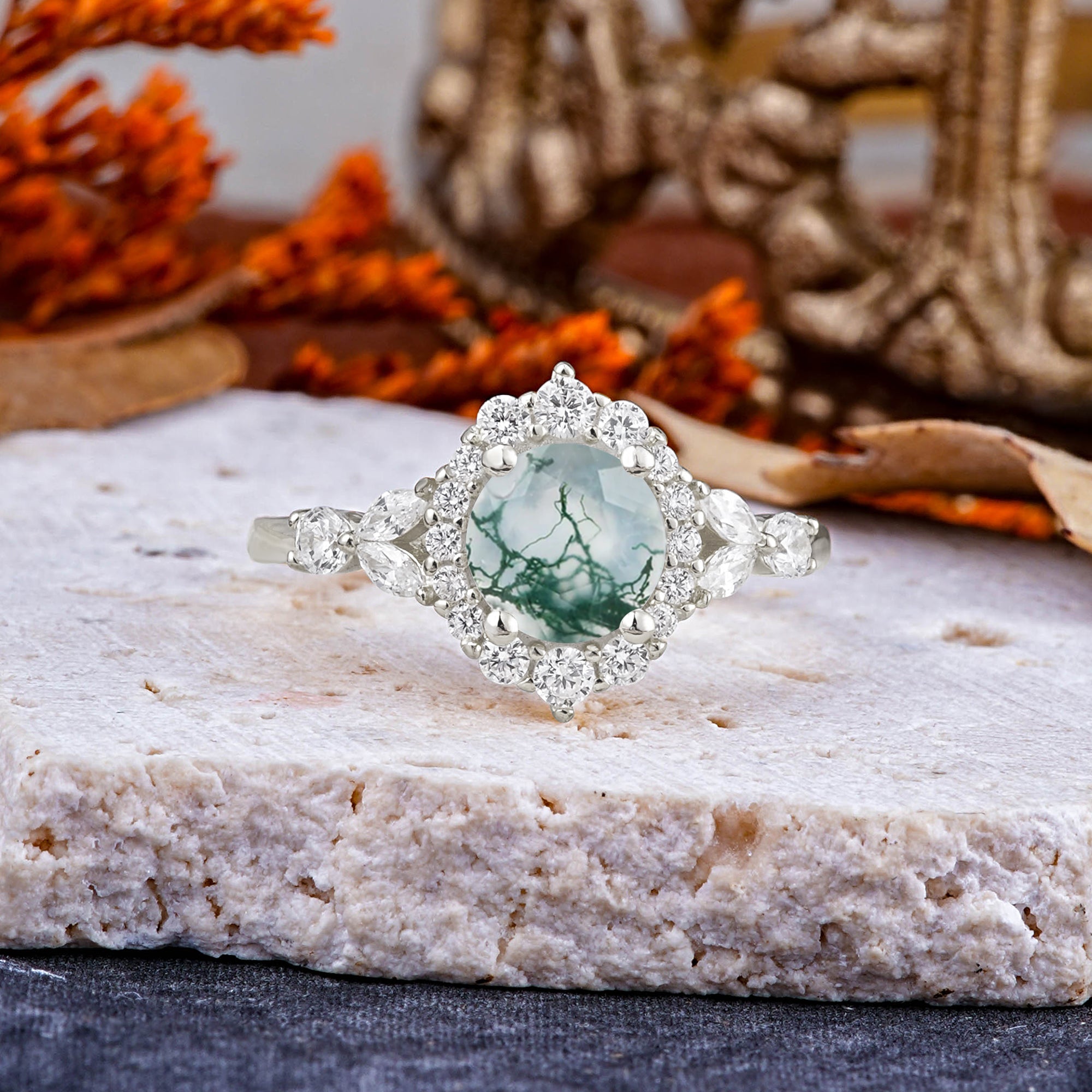 | Stone Material: Moss Agate | Stone Material: Moissanite |