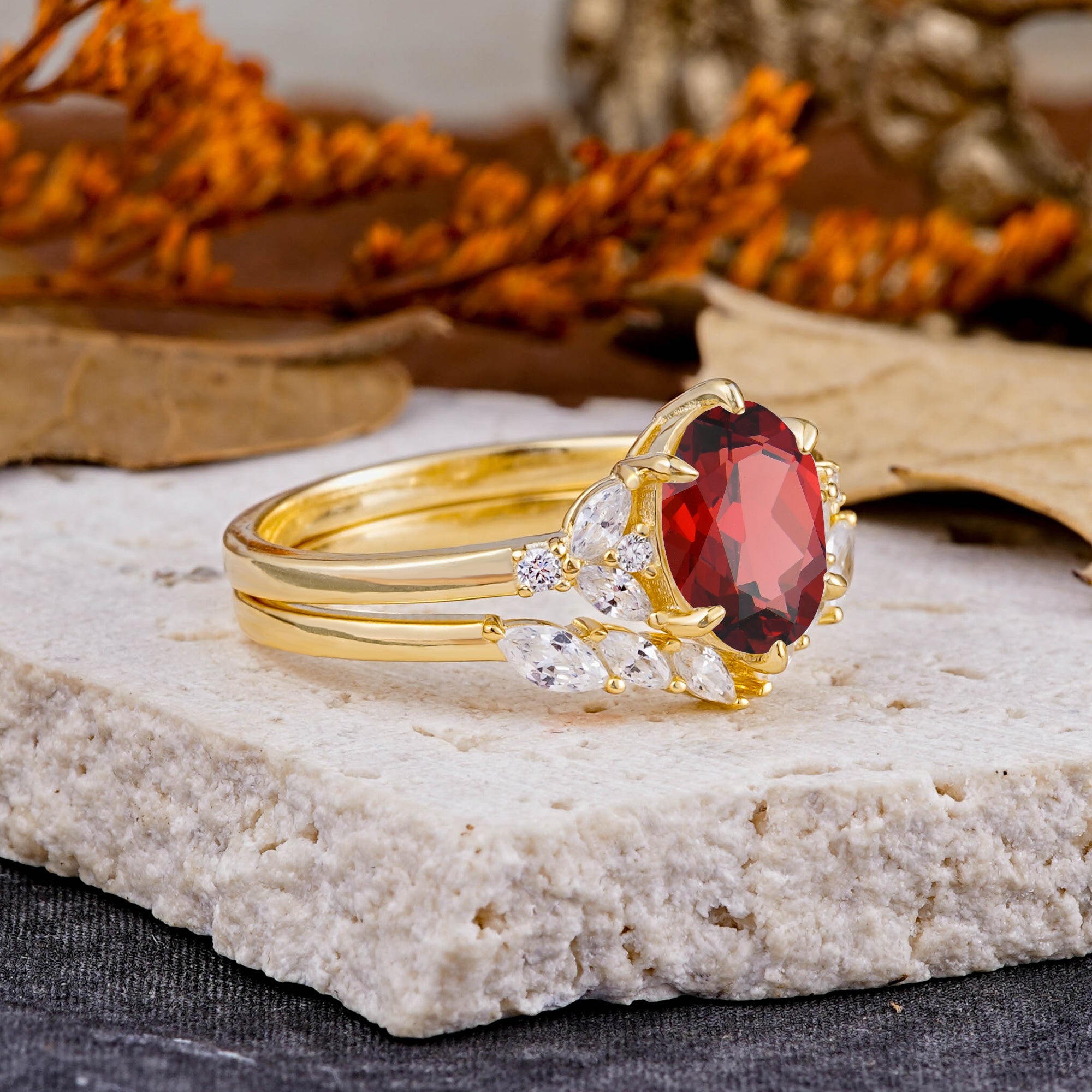 Luxury 6-Prong Oval-Cut Natural Garnet Engagement Ring Set