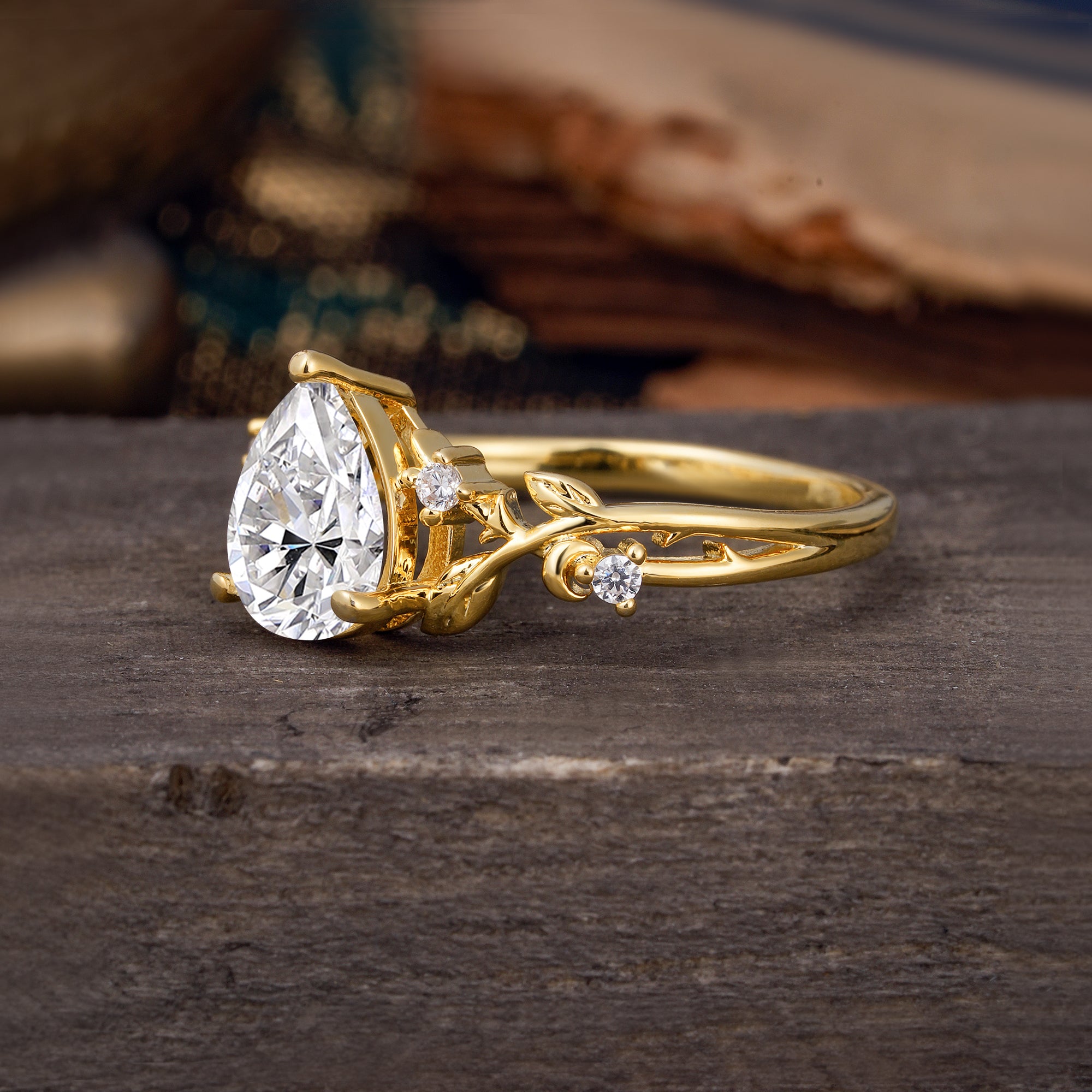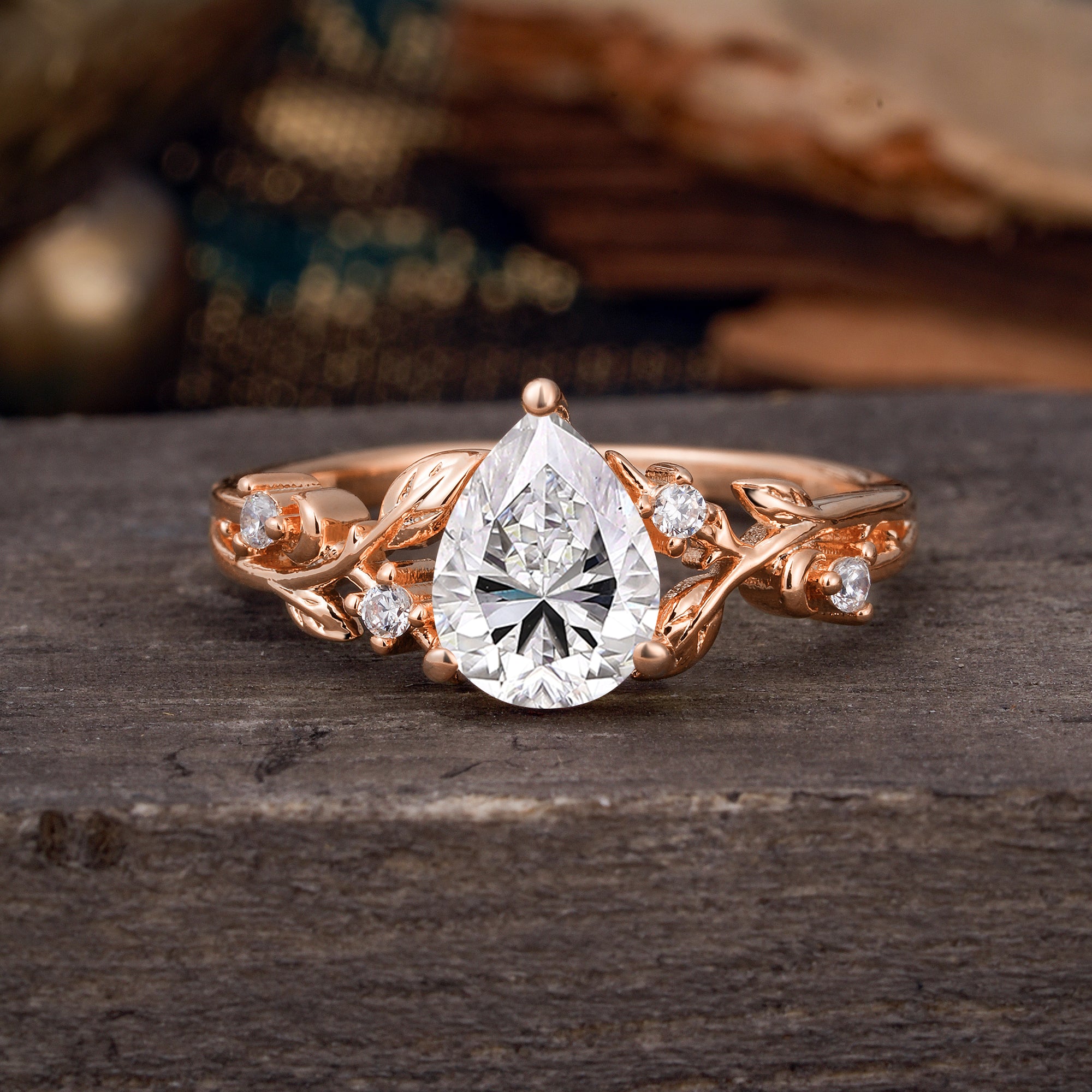 Luxury Nature-Inspired 3-Prong Pear-Cut Lab Diamond Engagement Ring