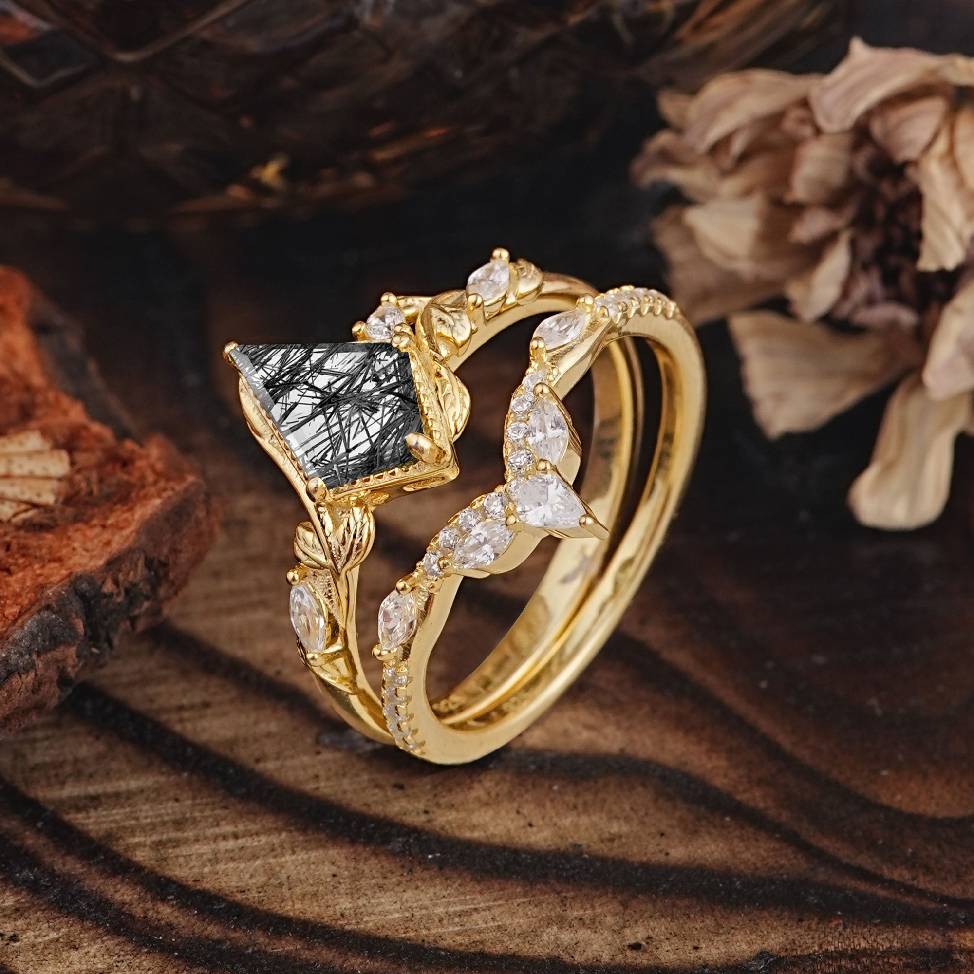 | Stone Material: Black Rutilated Quartz | Stone Material: Moissanite |