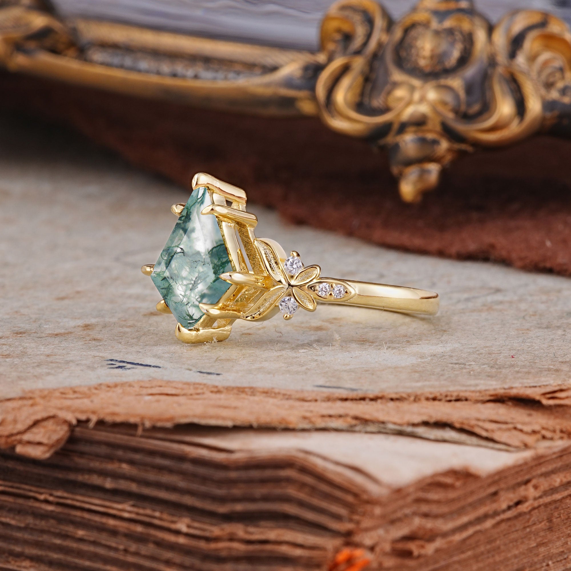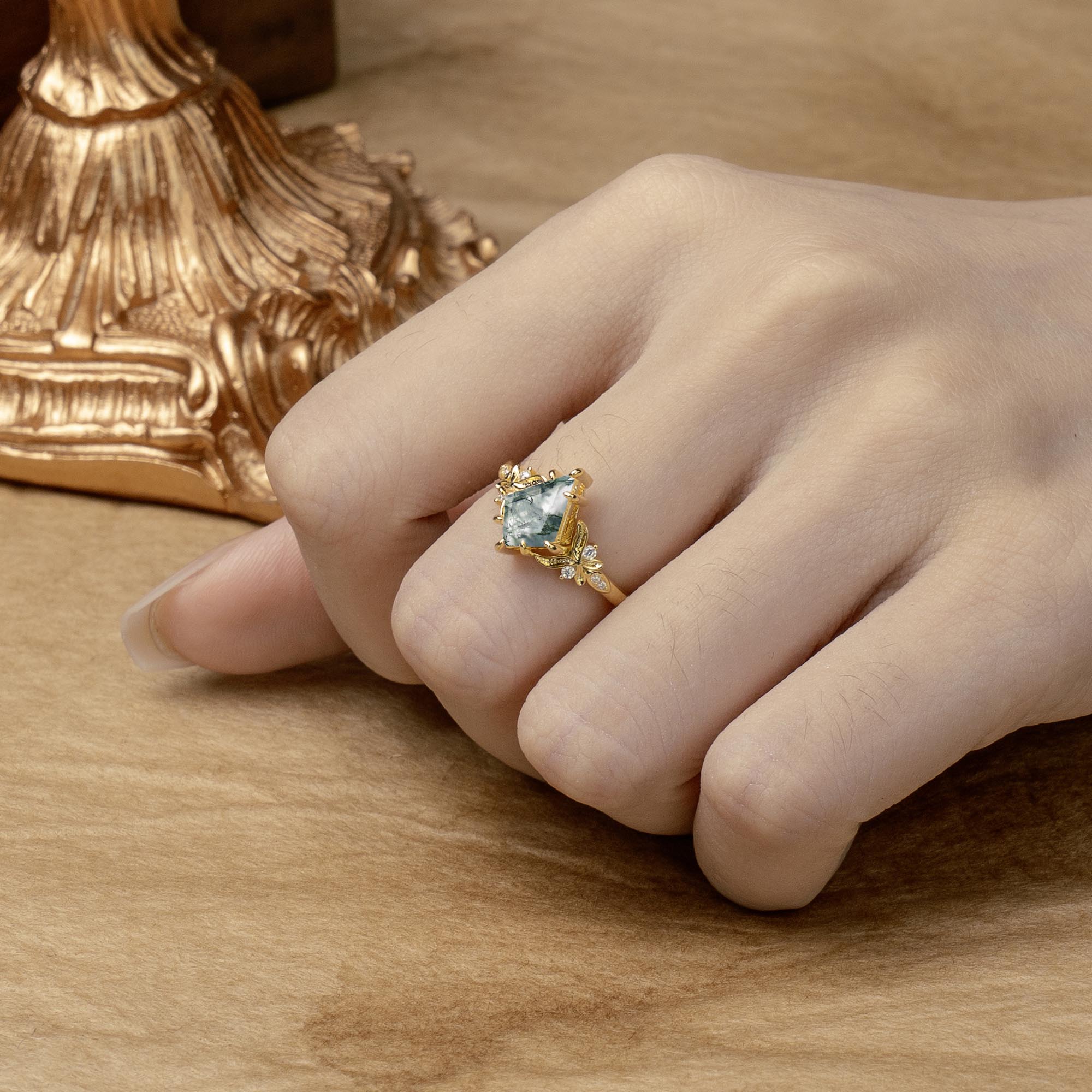 | Stone Material: Moss Agate | Stone Material: Moissanite |