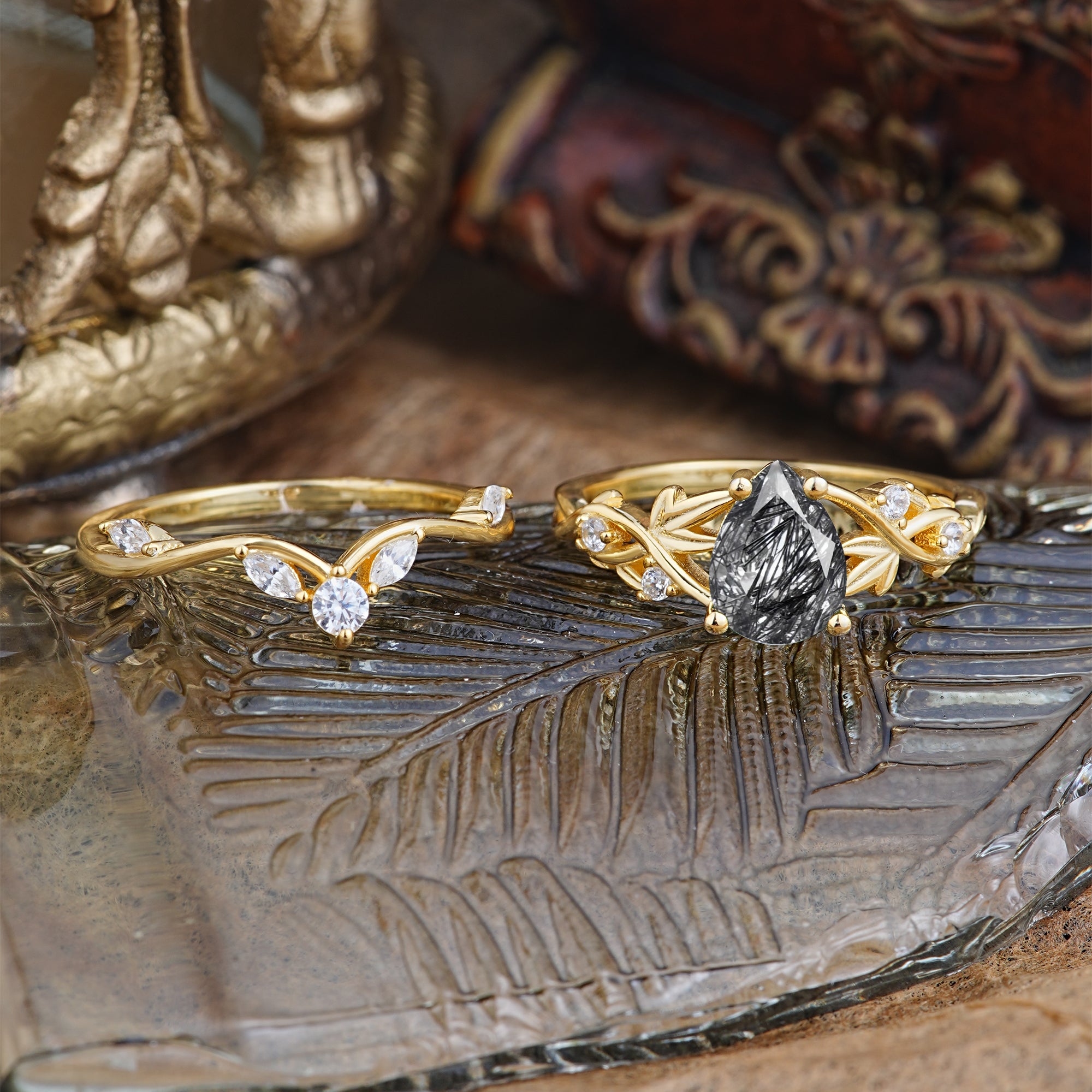 | Stone Material:Black Rutilated Quartz | Stone Material: Moissanite |