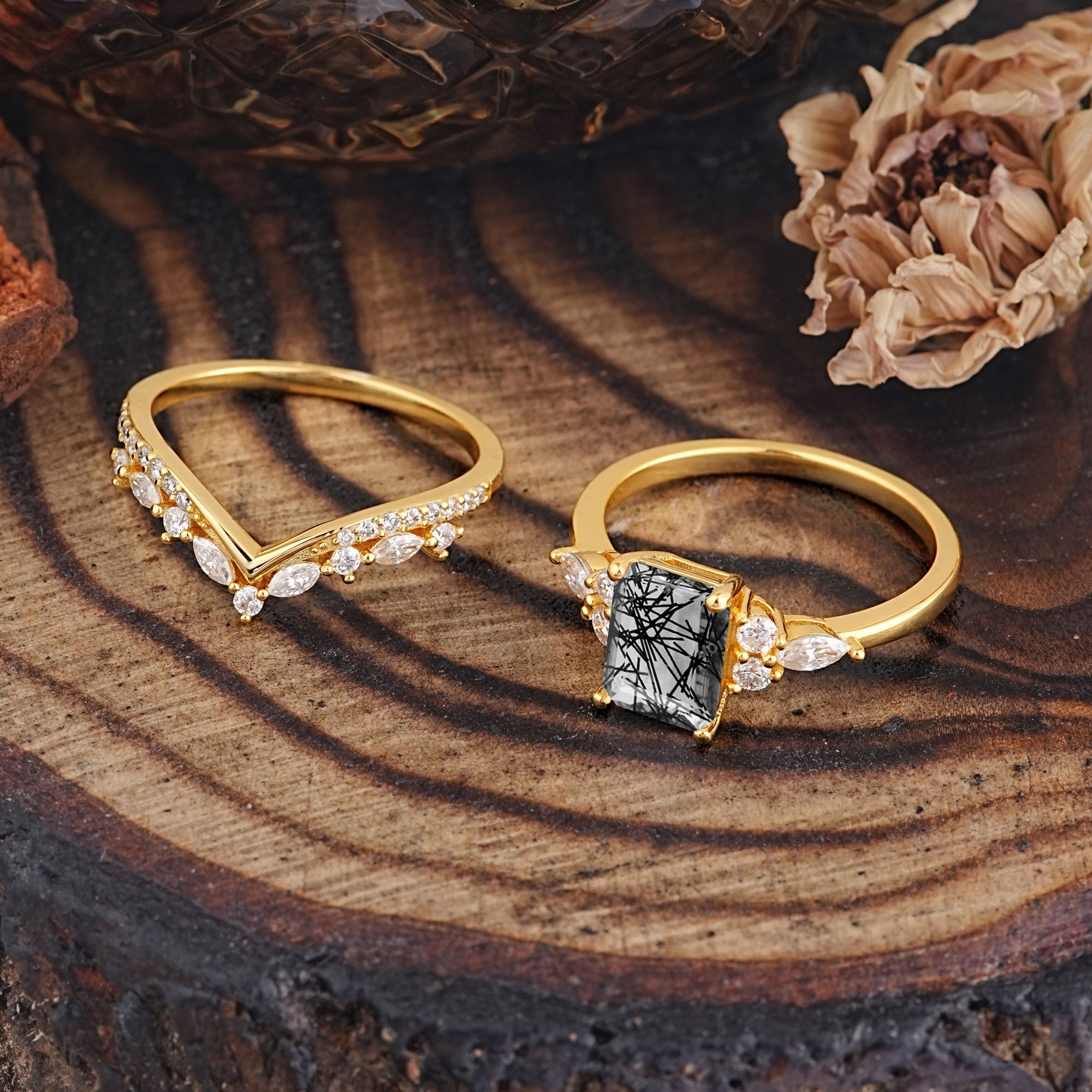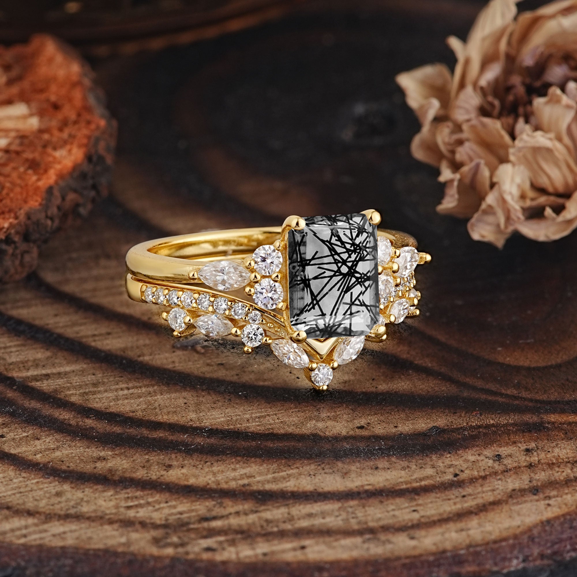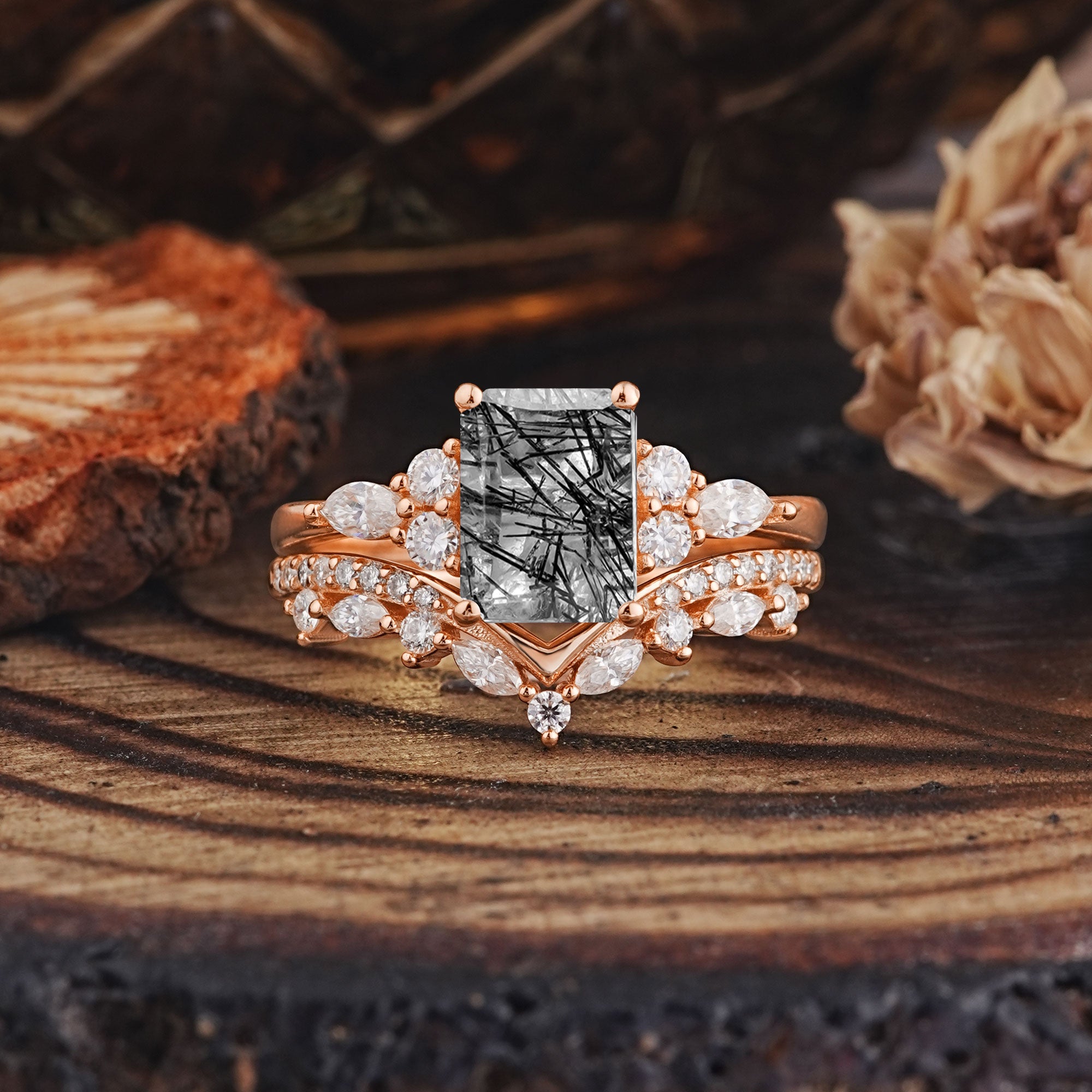 | Stone Material: Black Rutilated Quartz | Stone Material: Moissanite |