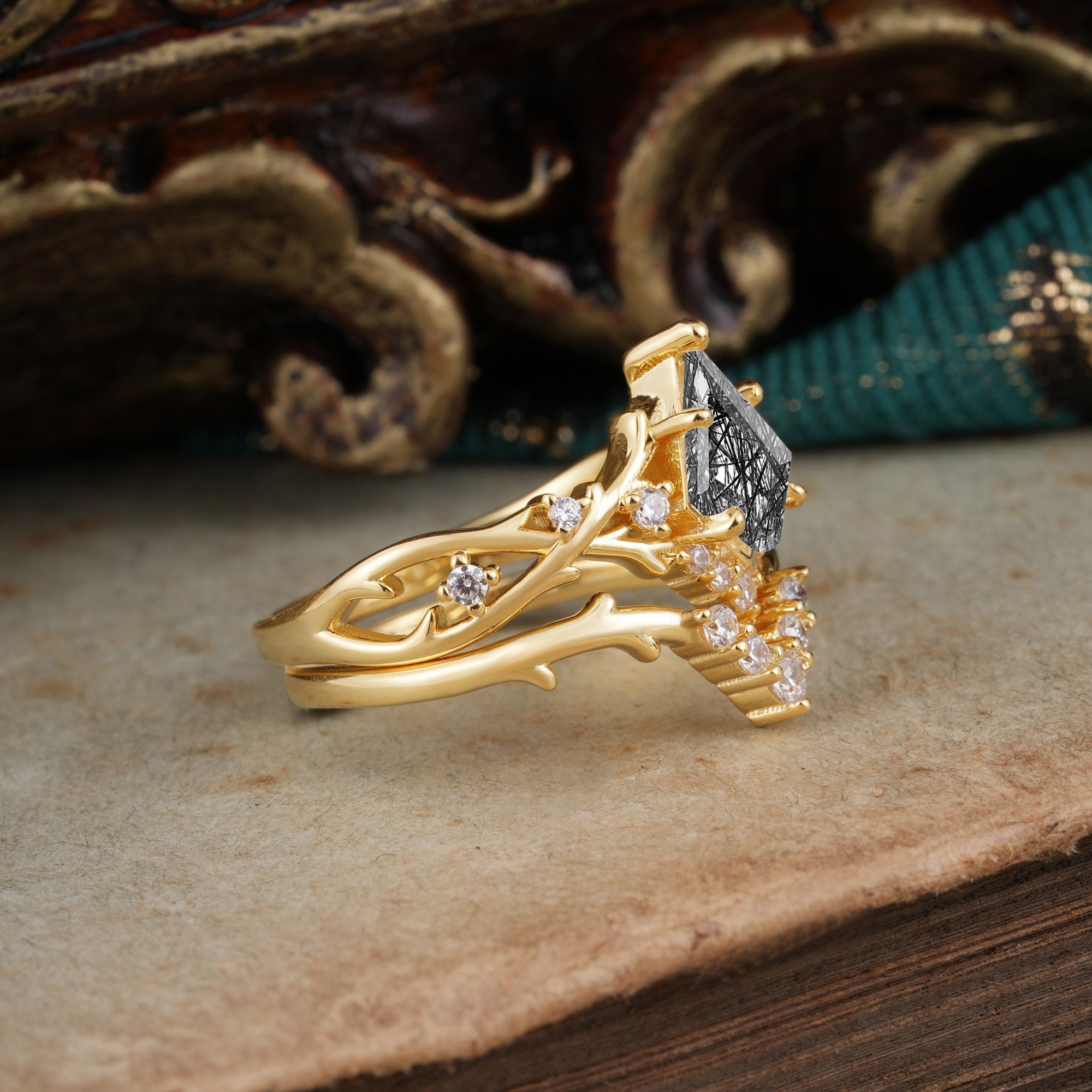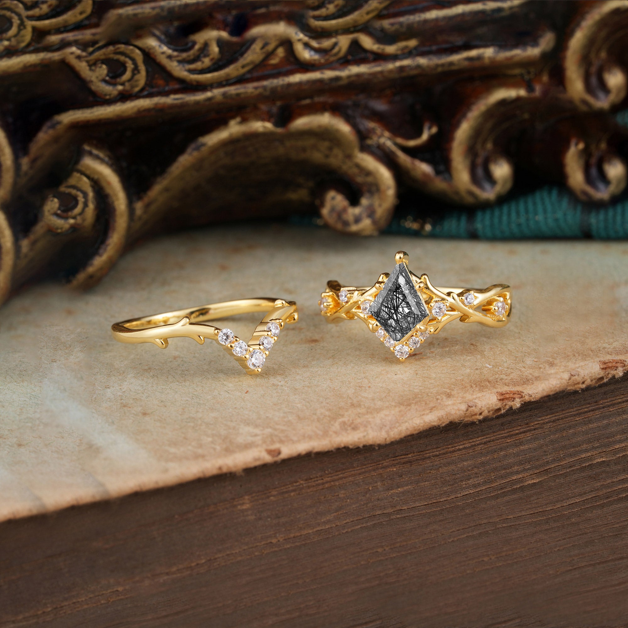 | Stone Material: Black Rutilated Quartz | Stone Material: Moissanite |