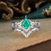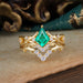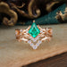 Luxury Vintage 5-Prong Kite-Cut Emerald Engagement Ring Set