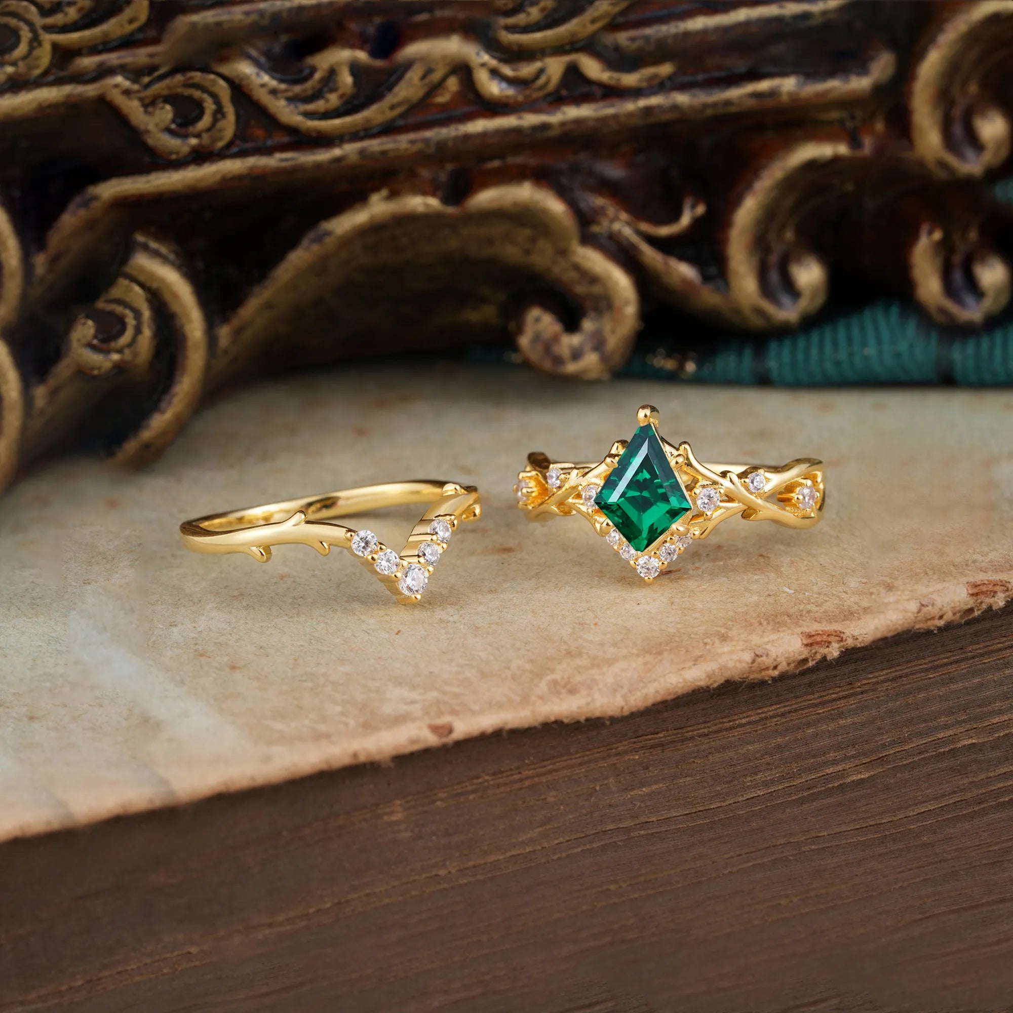 | Stone Material: Emerald | Stone Material: Moissanite |