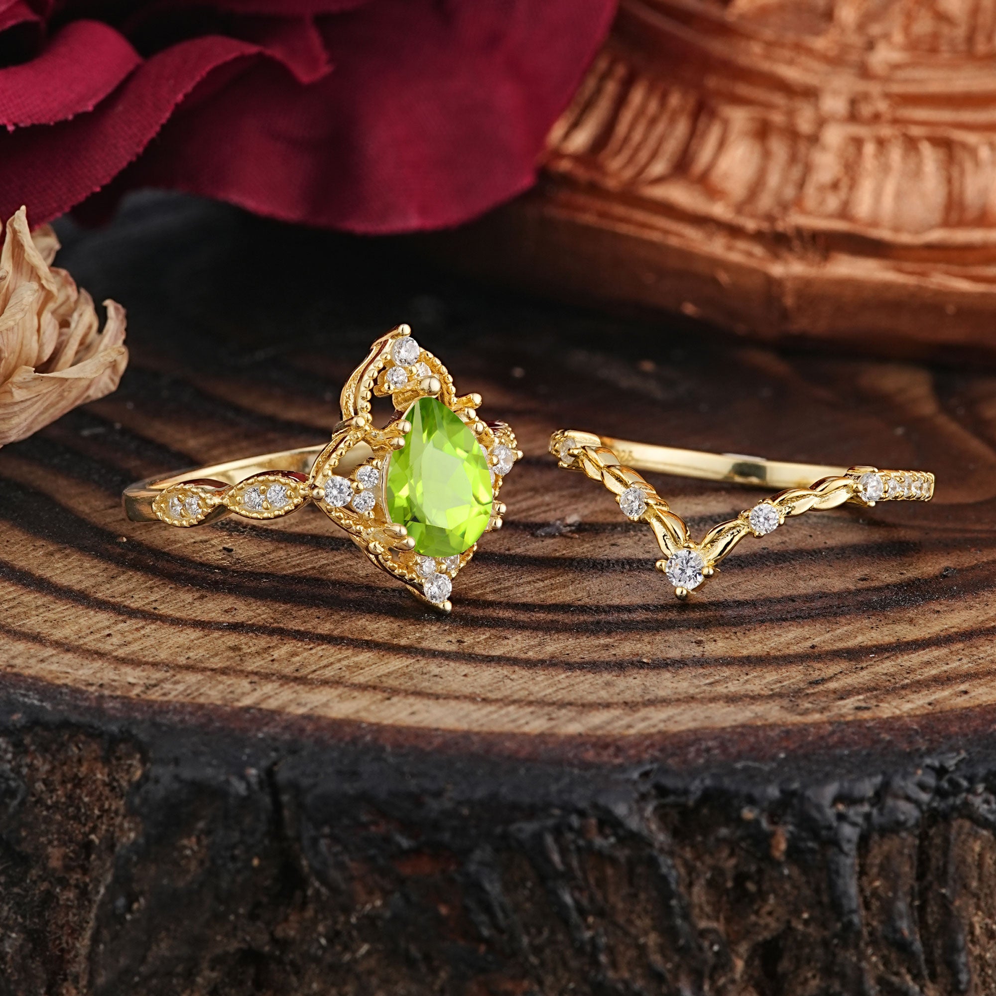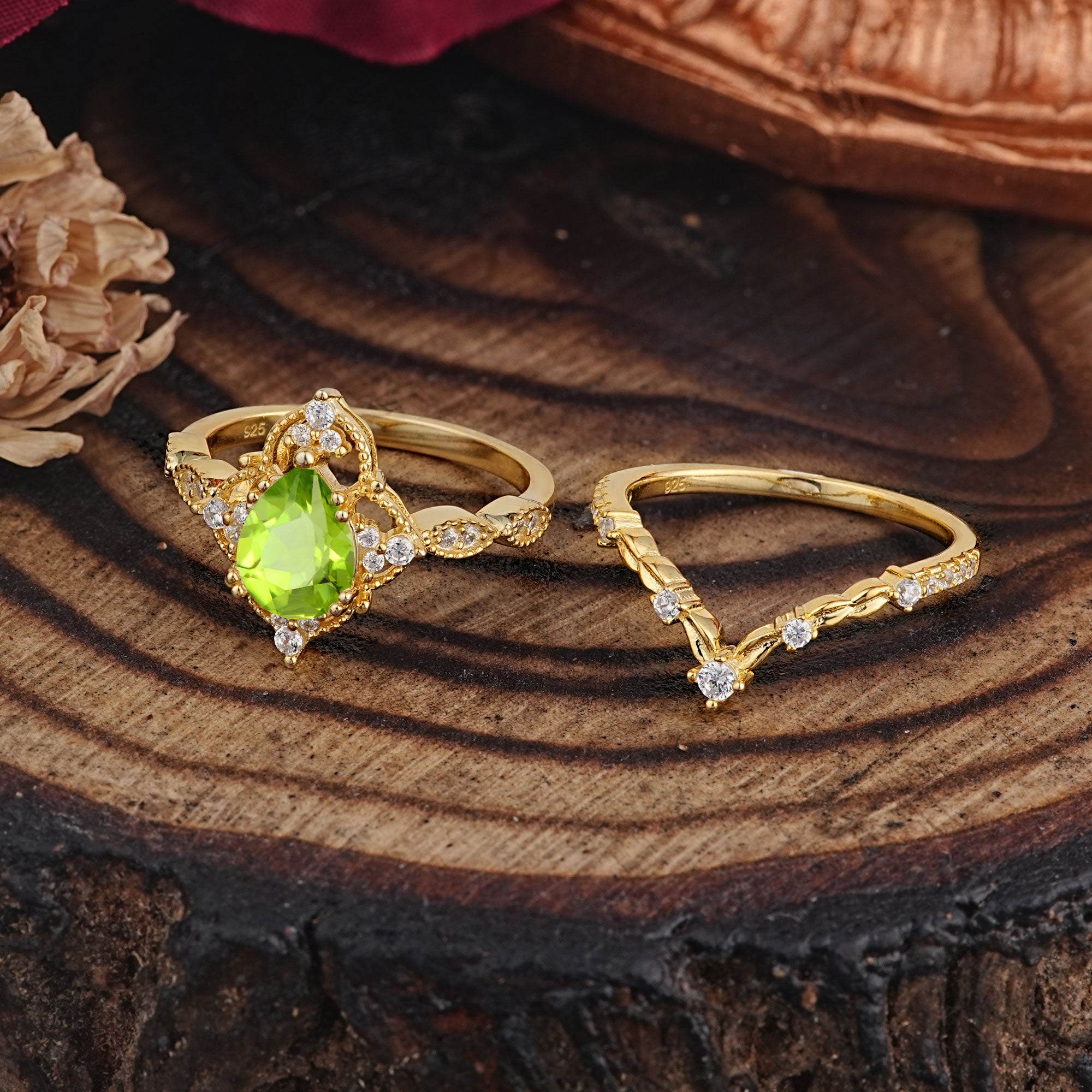 | Stone Material: Peridot | Stone Material: Moissanite |