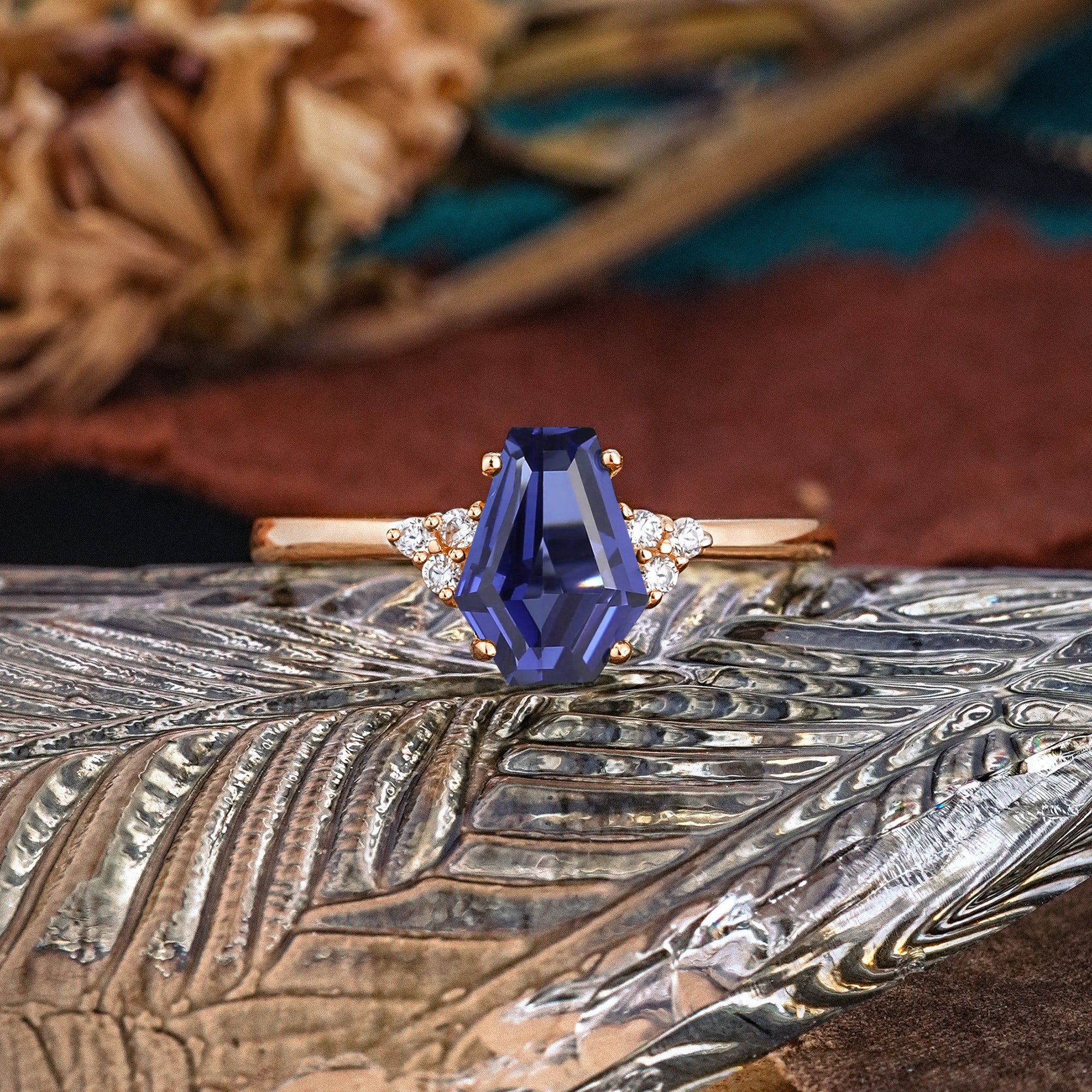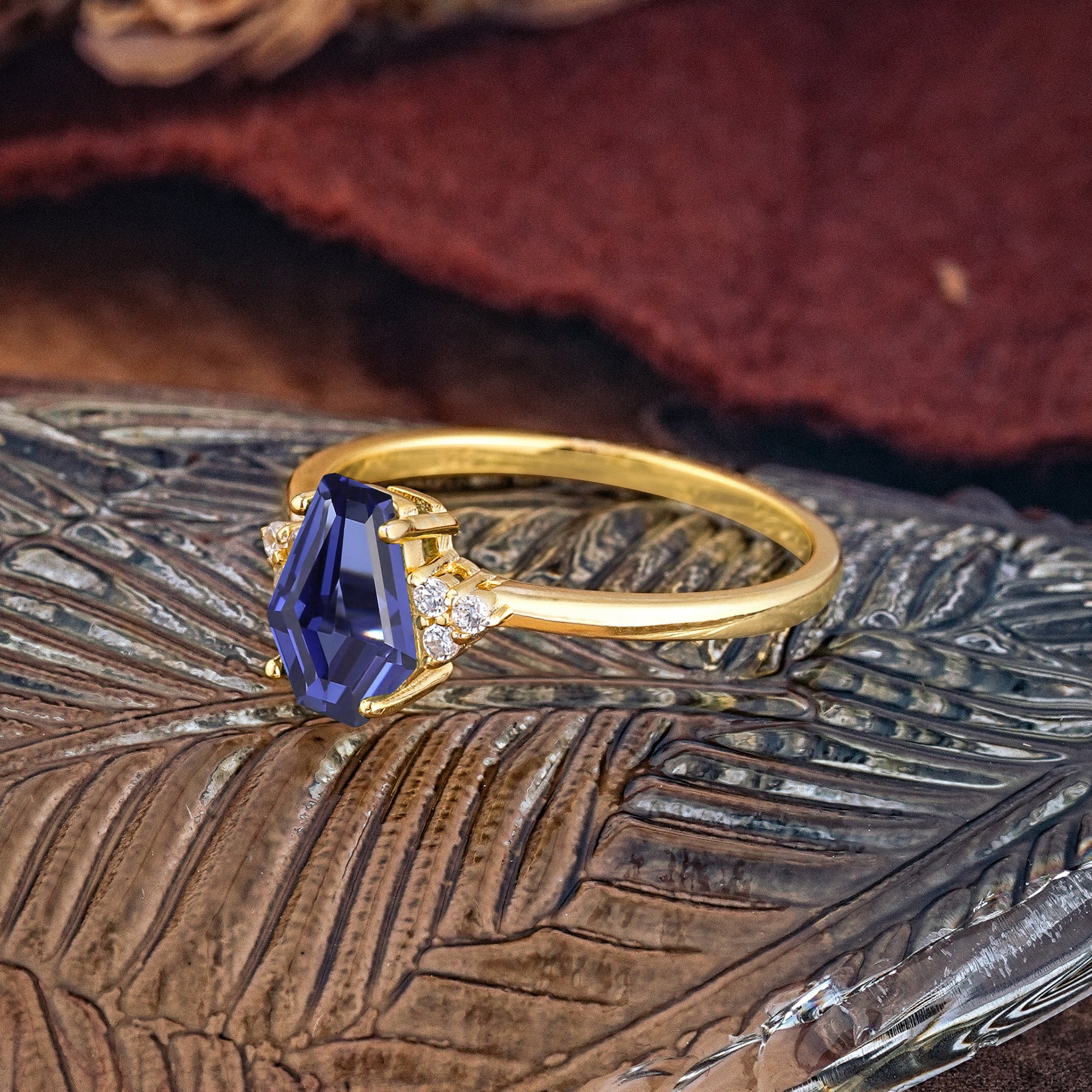 Minimalist 4-Prong Coffin-Cut Tanzanite Engagement Ring