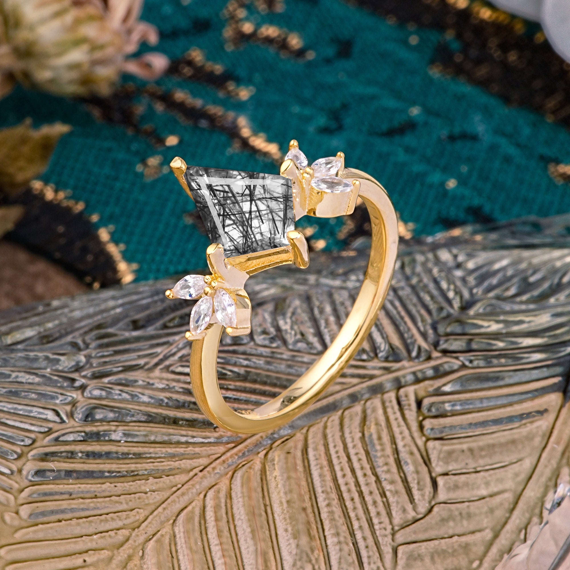 | Stone Material: Black Rutilated Quartz | Stone Material: Moissanite |