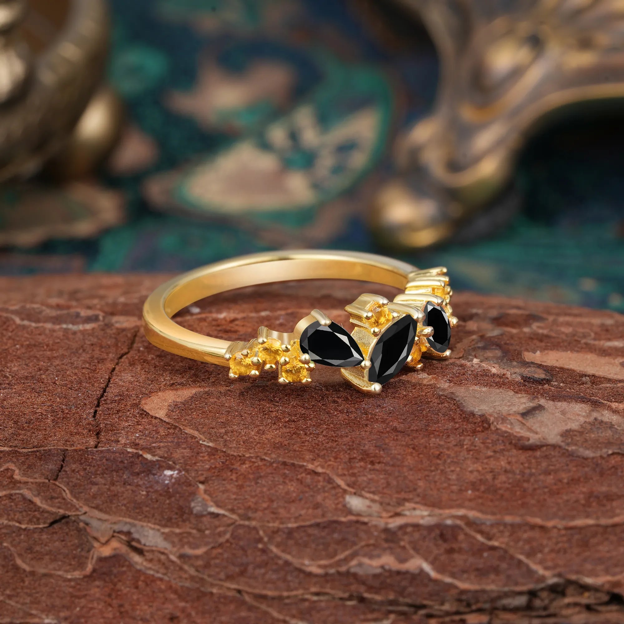 Multi Shaped Black Onyx Wedding Band Half Eternity Stackable Ring
