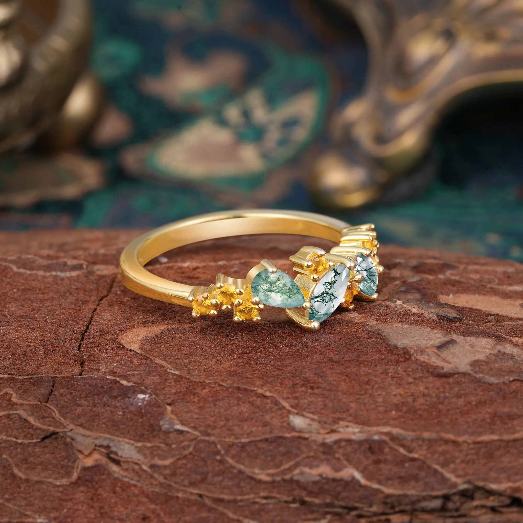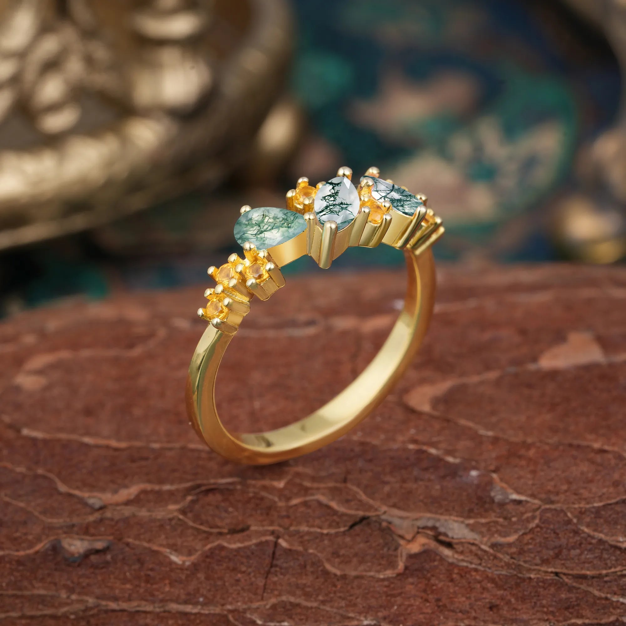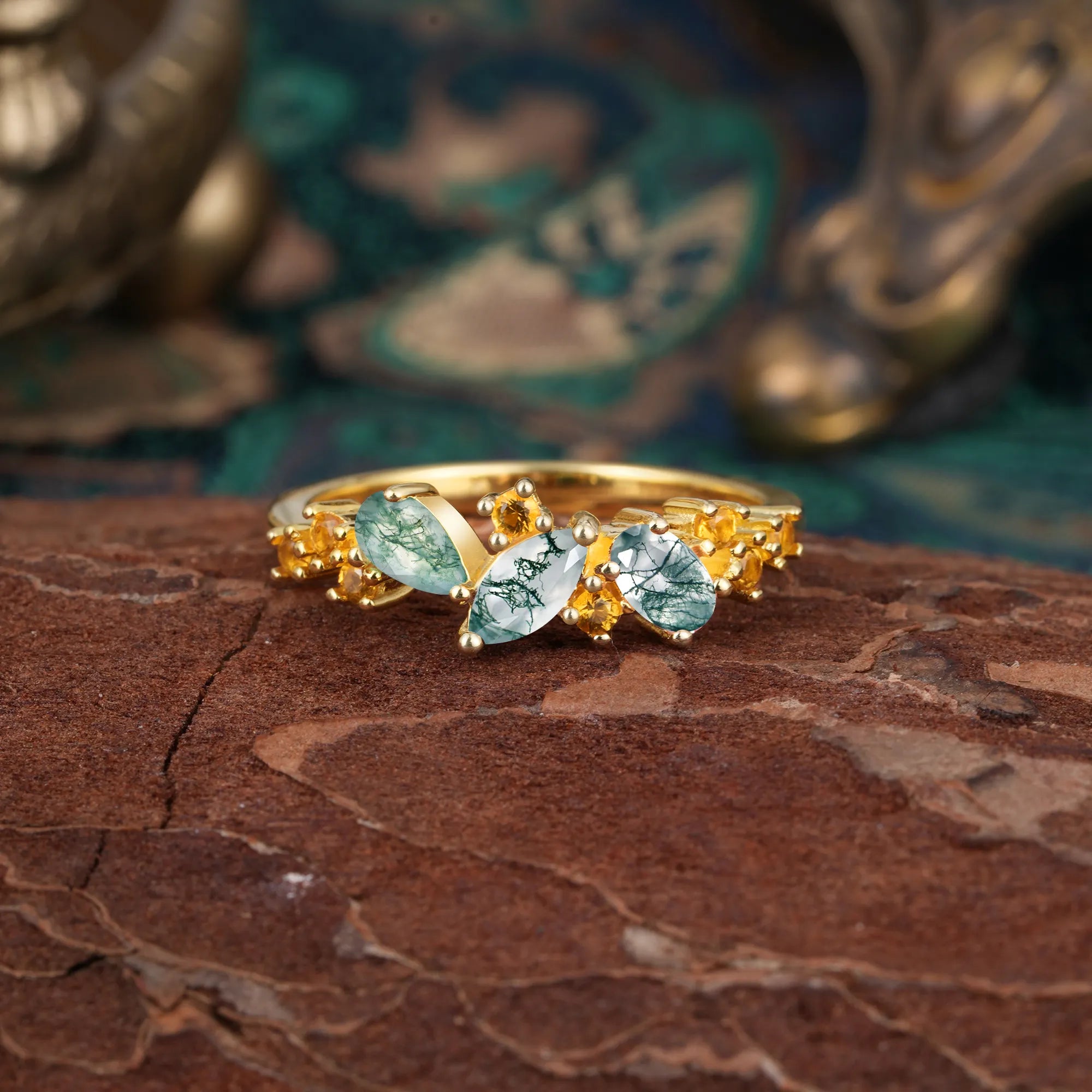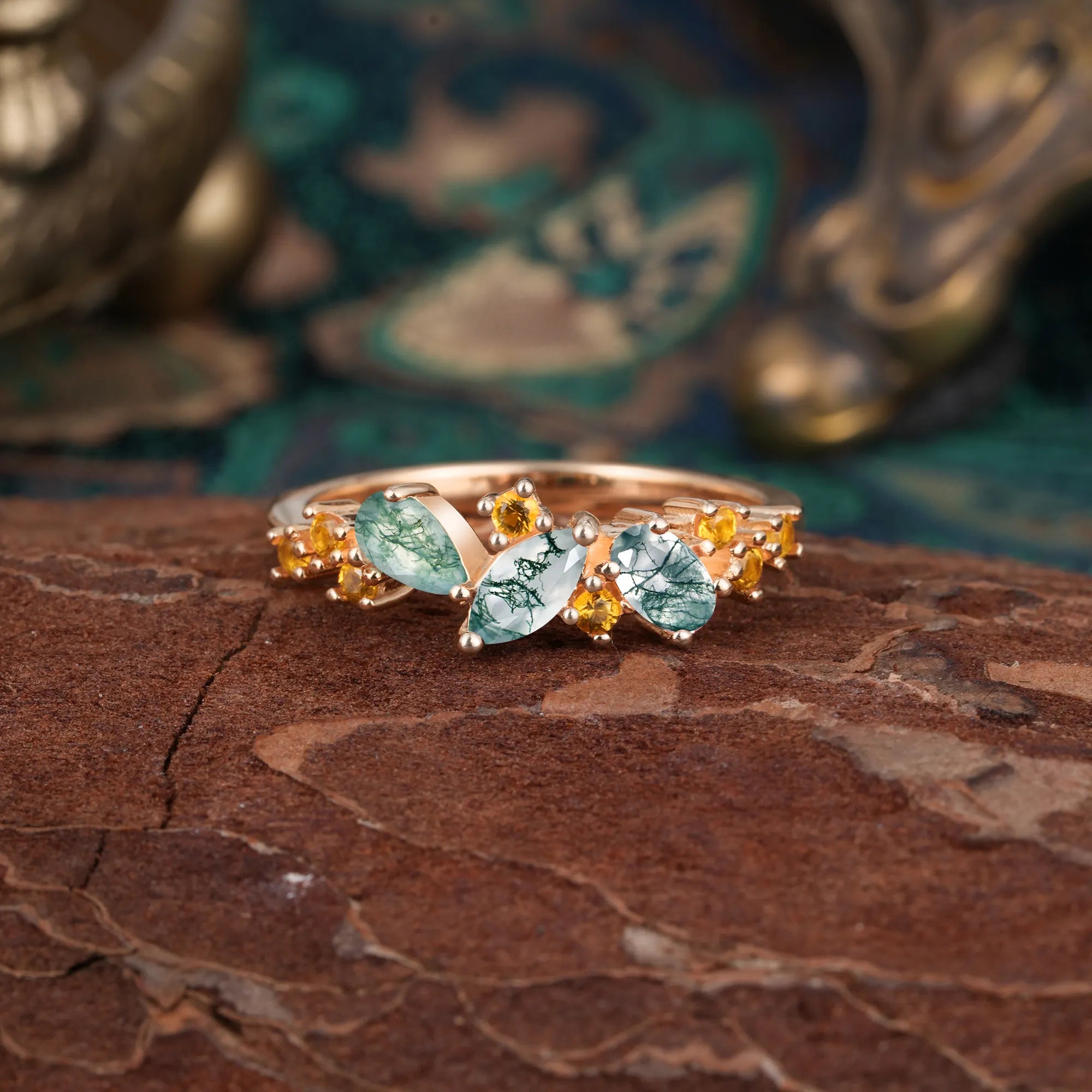 | Stone Material: Moss Agate | Stone Material: Moissanite |