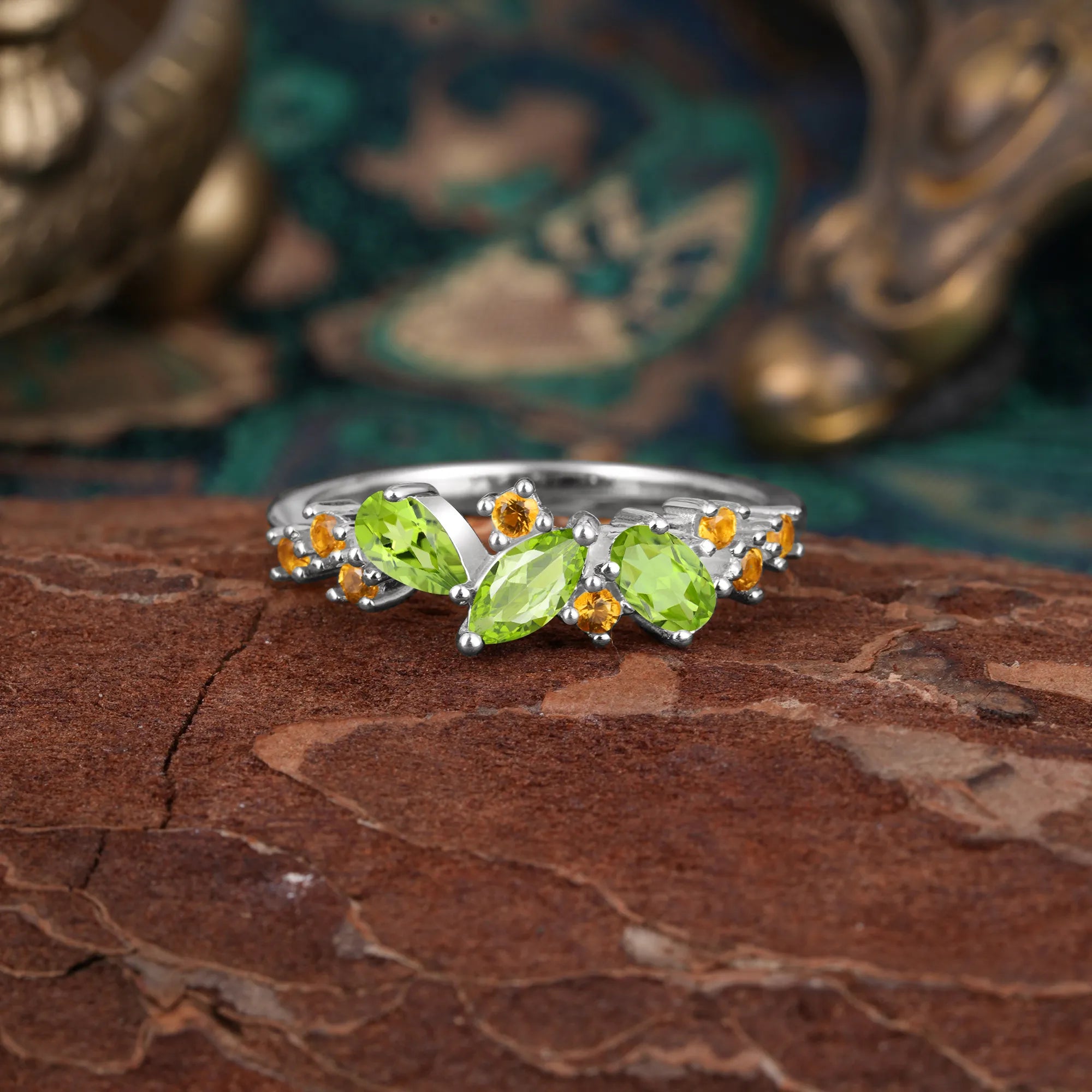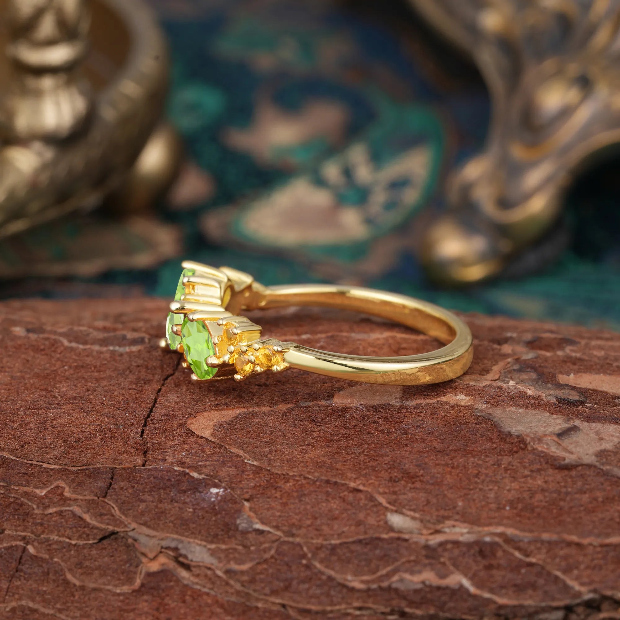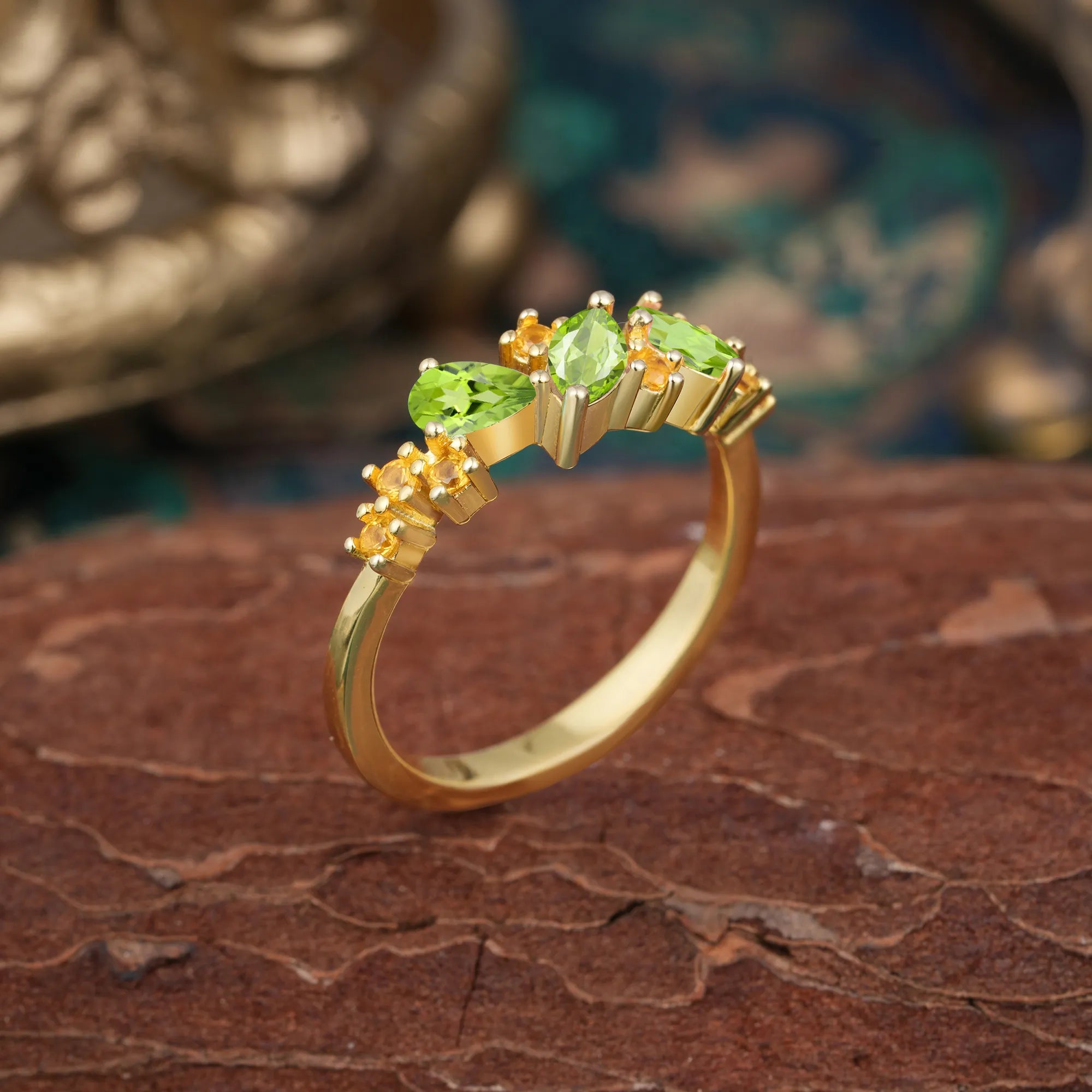 Multi Shaped Peridot Wedding Band Half Eternity Stackable Ring