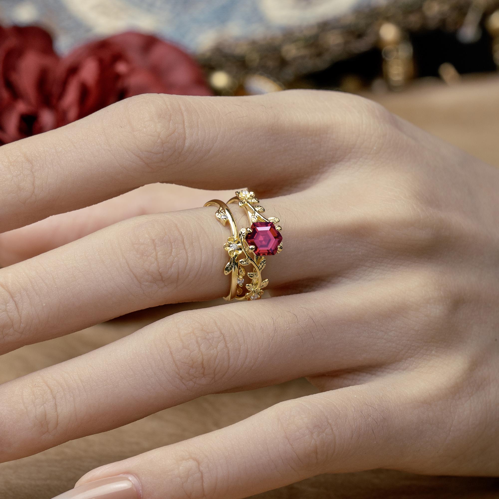 Naturalistic 4 - Prong Hexagon - Cut Ruby Ring Sets
