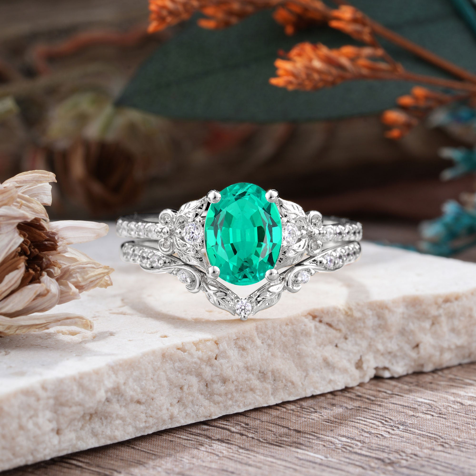 Naturally Inspired Luxury 4-Prong Oval Cut Emerald Stacking Ring Set