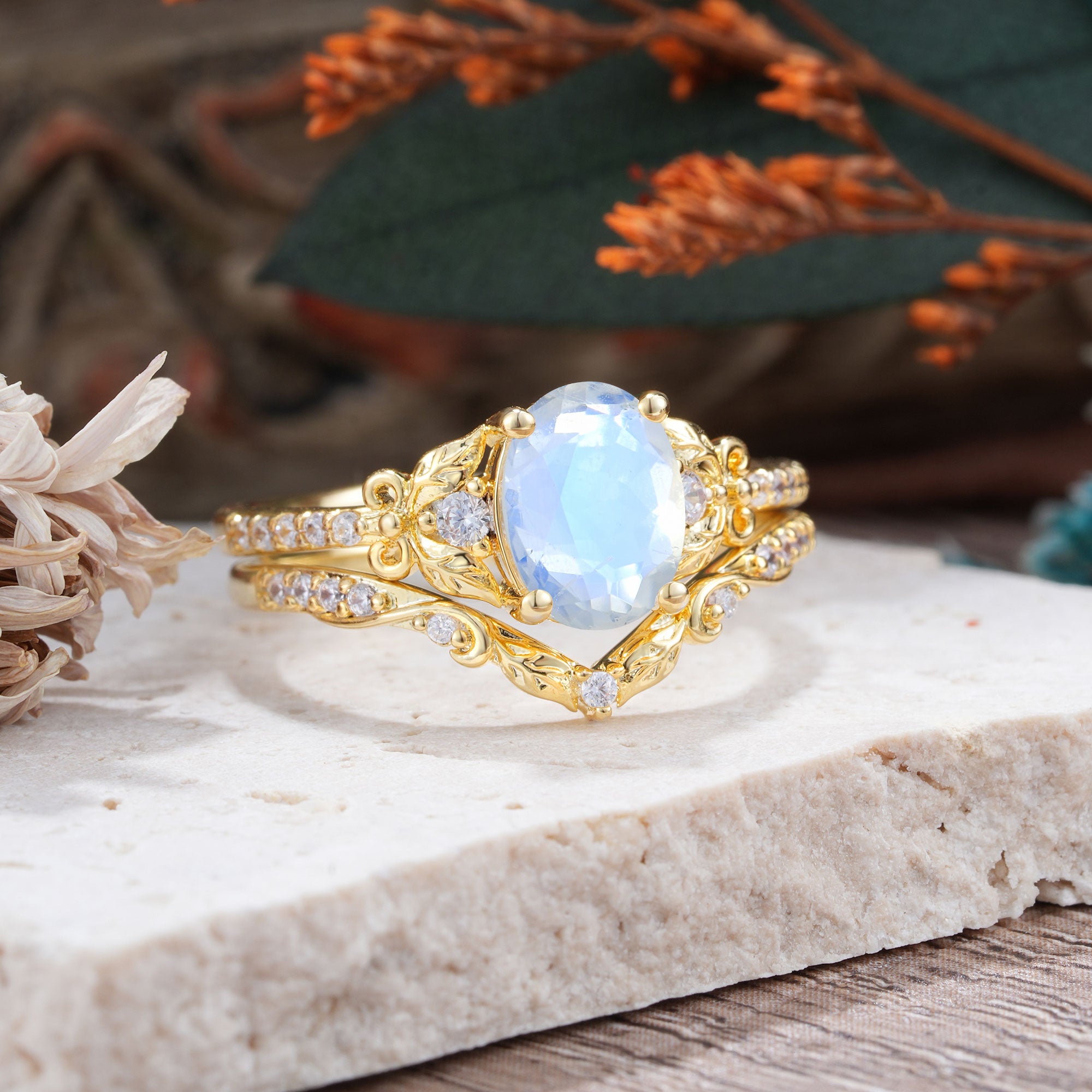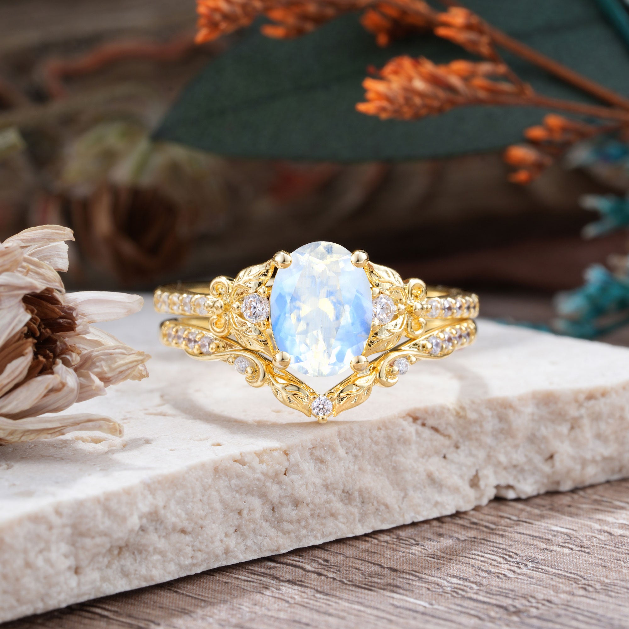 Naturally Inspired Luxury 4-Prong Oval Cut Moonstone Stacking Ring Set