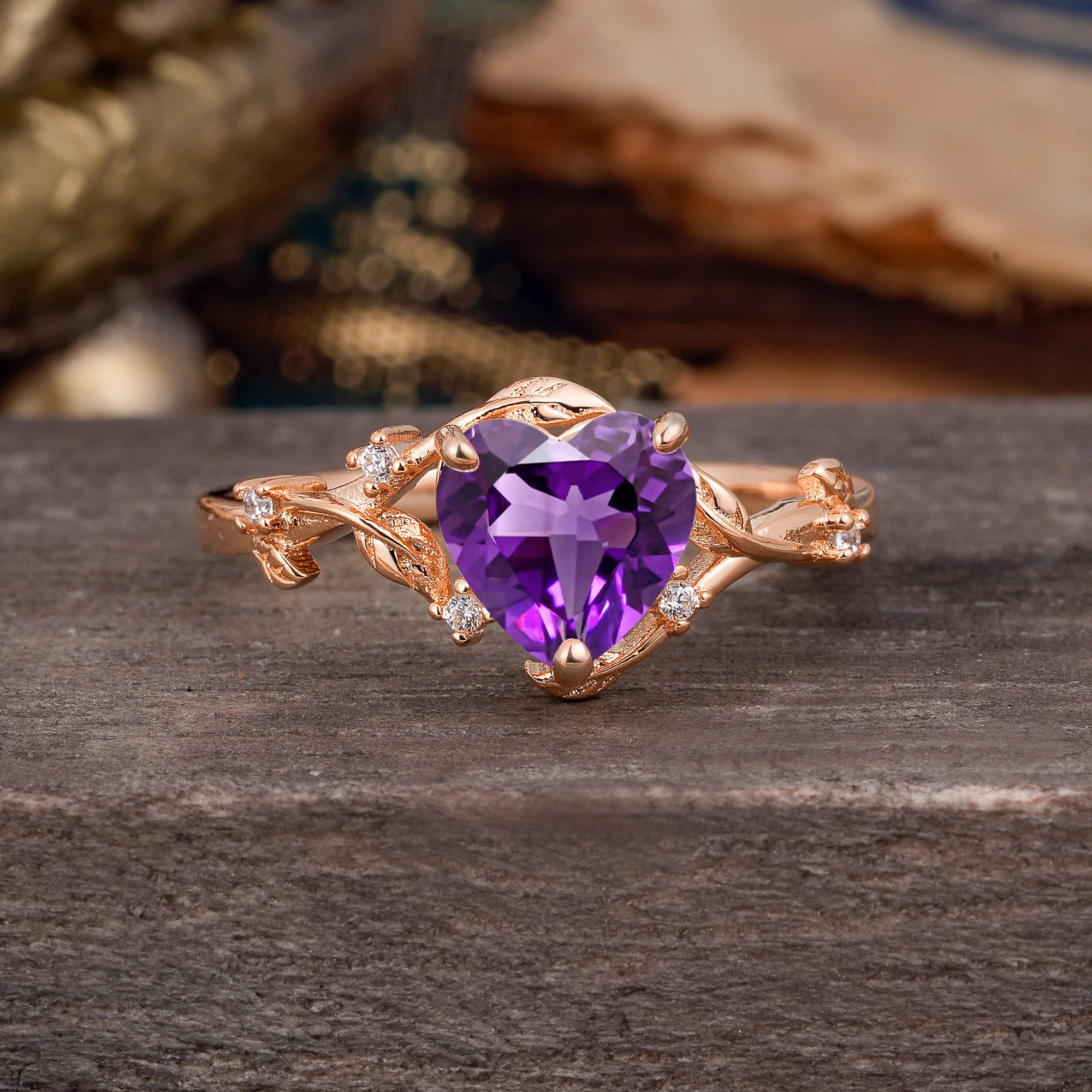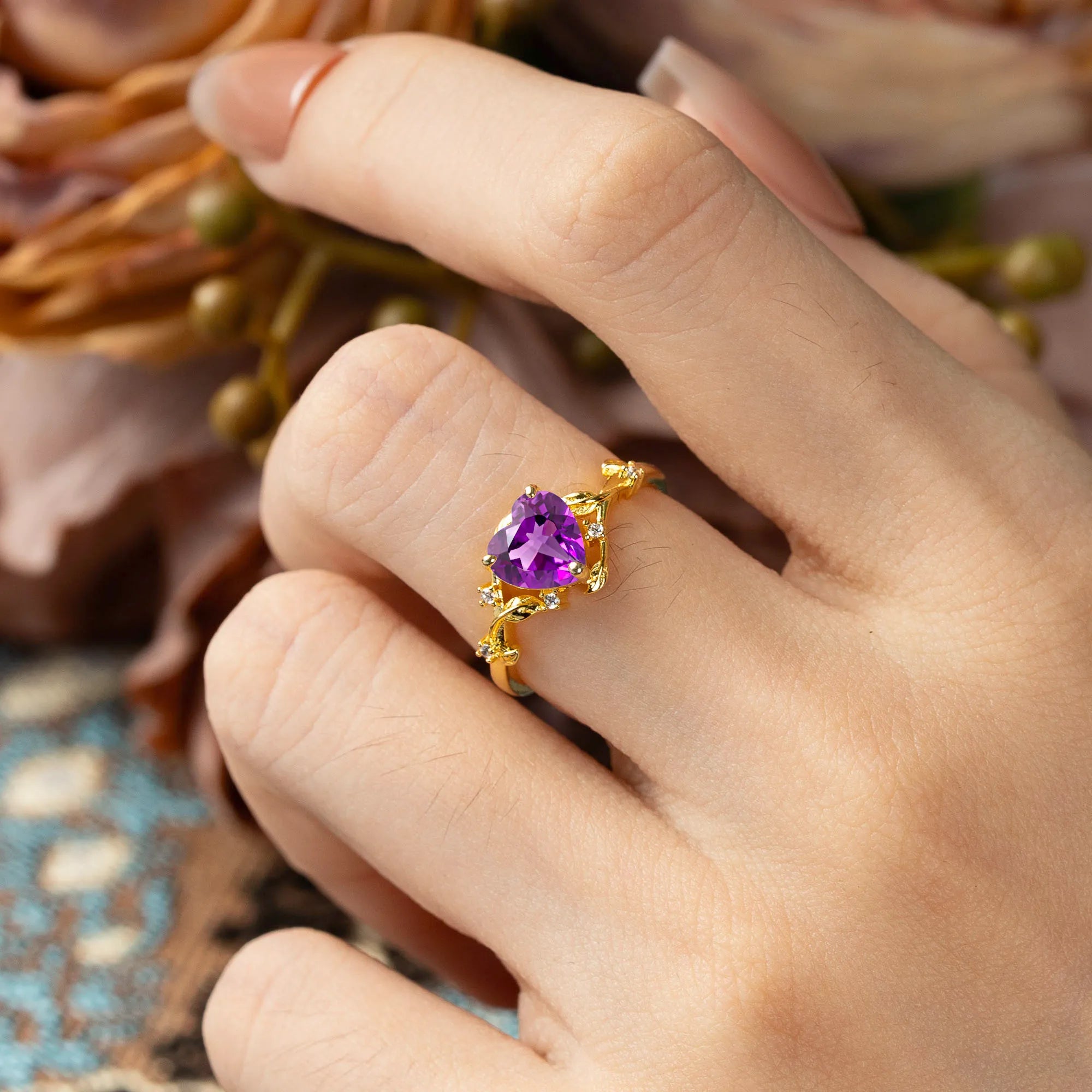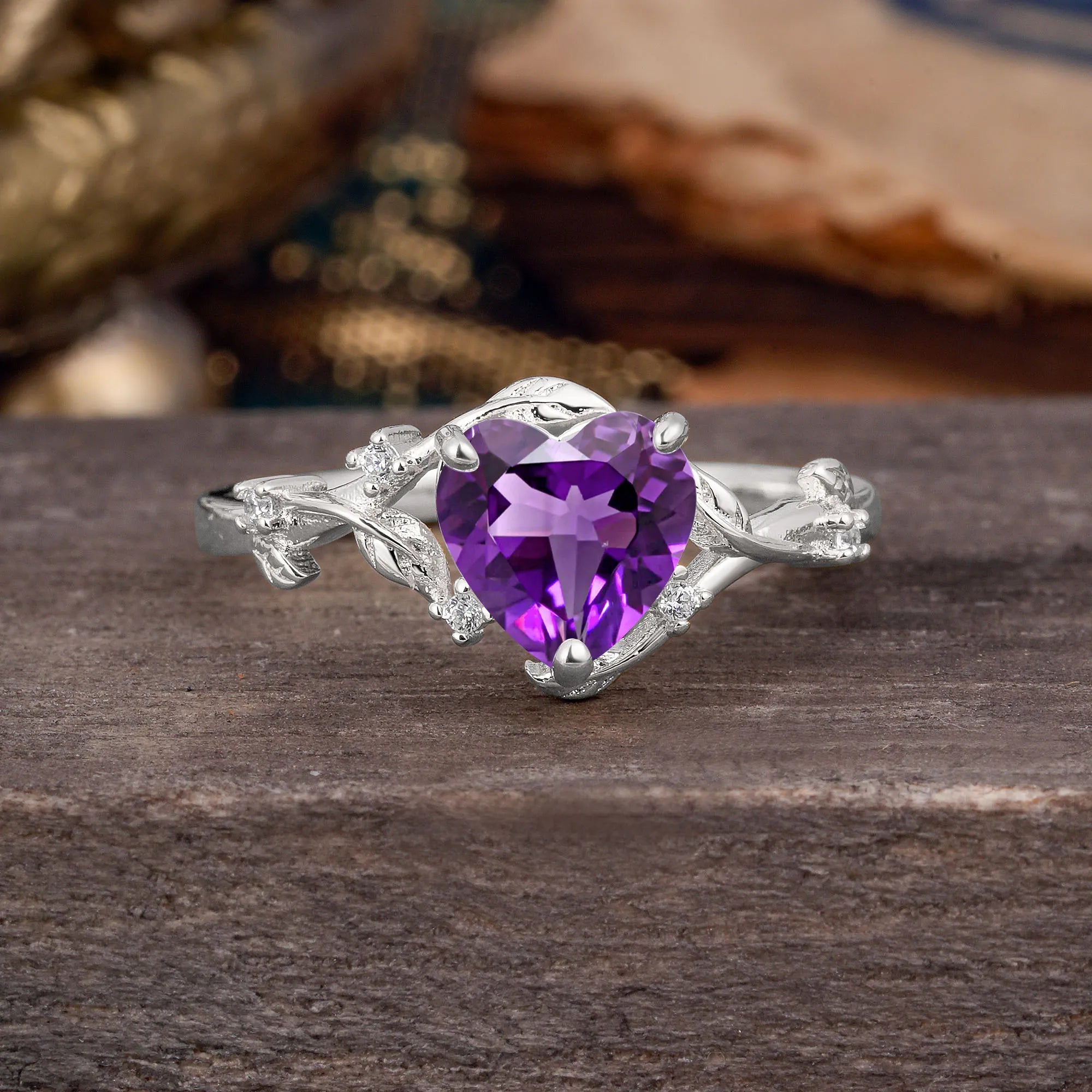Nature-Inspired 3-Prong Heart-Shaped Amethyst Engagement Ring