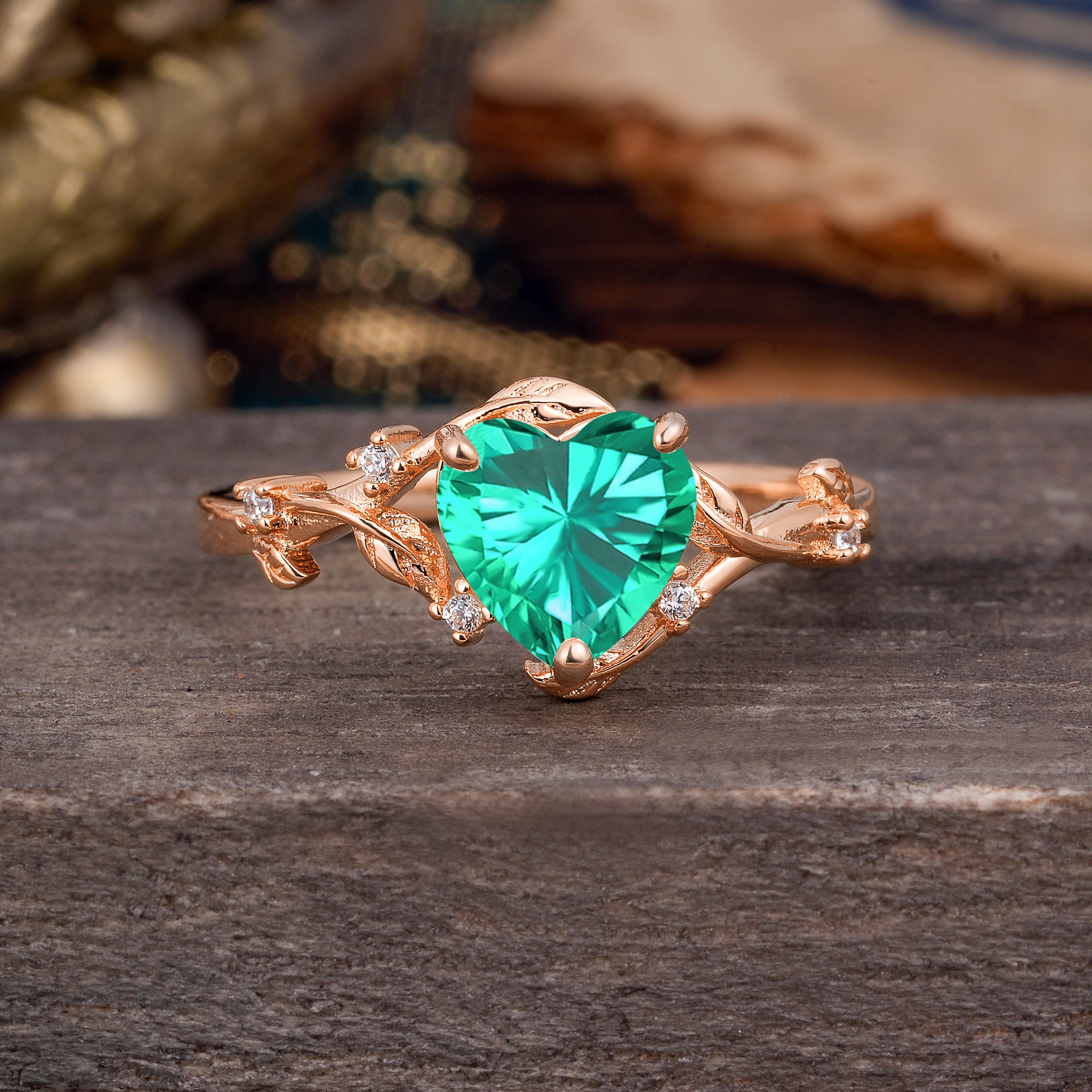 Nature-Inspired 3-Prong Heart-Shaped Emerald Engagement Ring