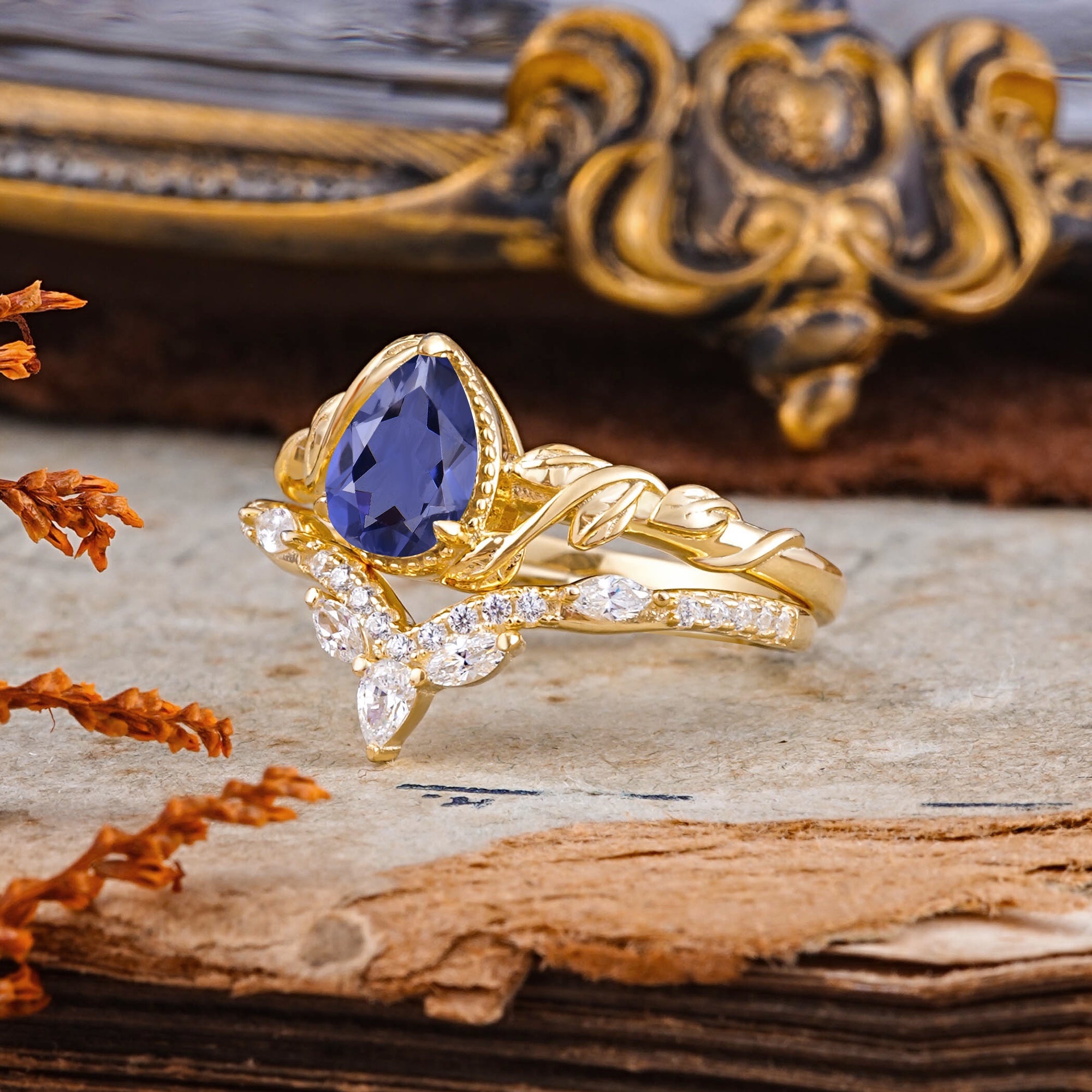 Nature-Inspired 3-Prong Oval-Cut Natural Tanzanite Engagement Ring Set With Vine Accents