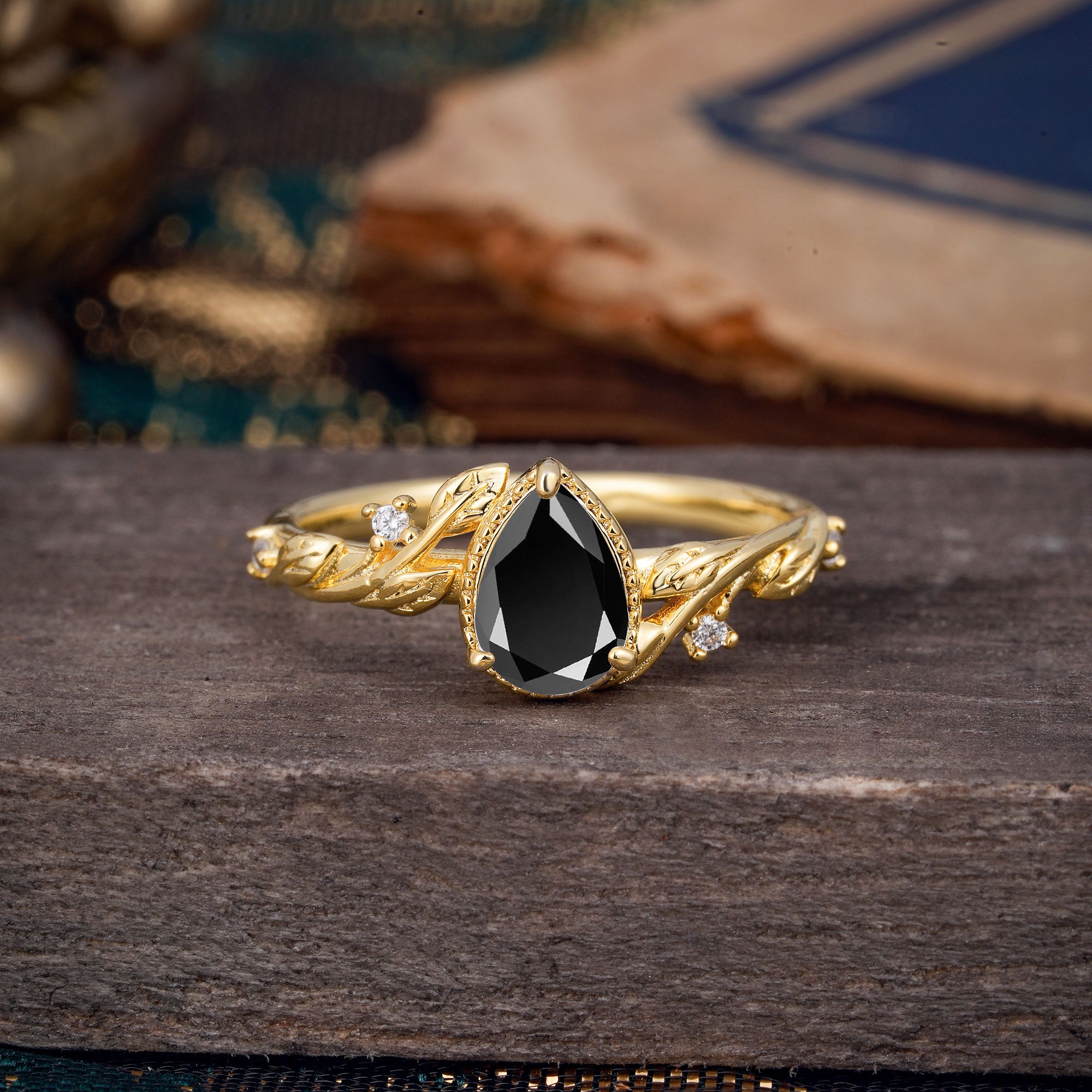 Nature-Inspired 3-Prong Pear-Cut Natural Black Onyx Engagement Ring