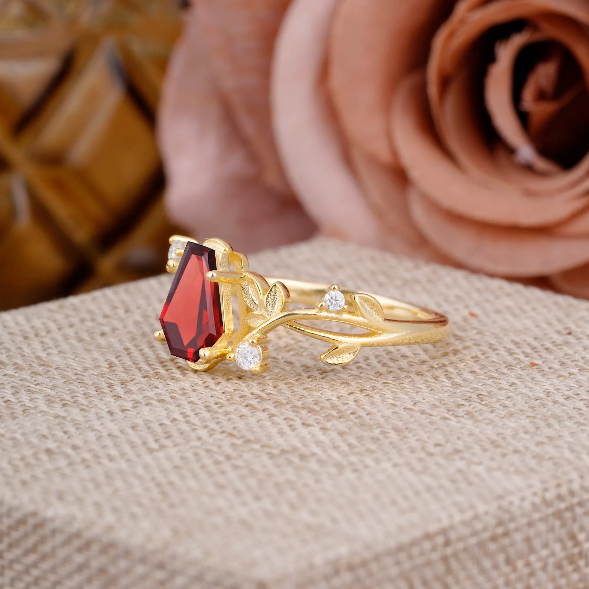 Nature Inspired 4 Prong Coffin-Cut Natural Garnet Engagement Ring