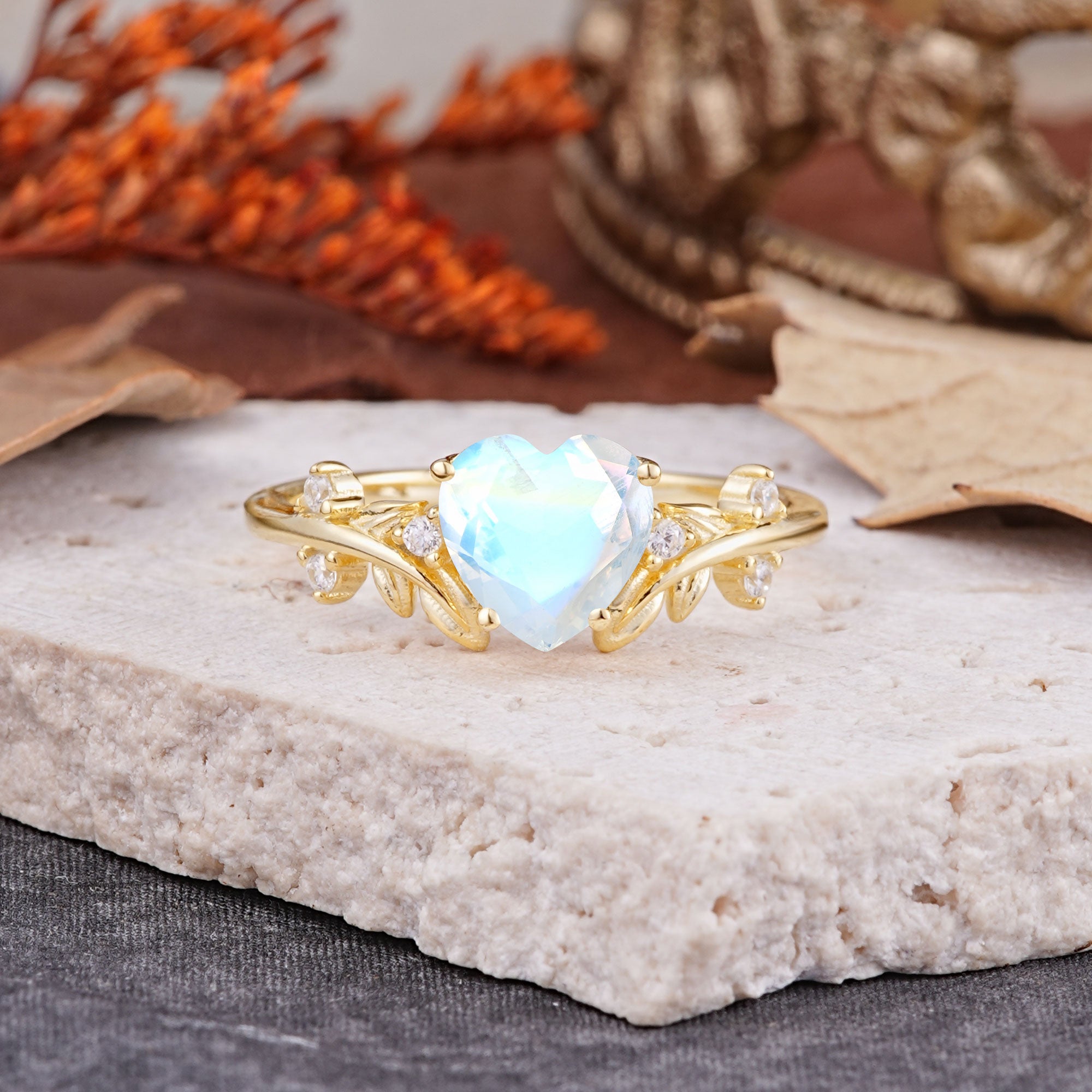 Nature Inspired 4 Prong Heart Shaped Moonstone Wedding Ring